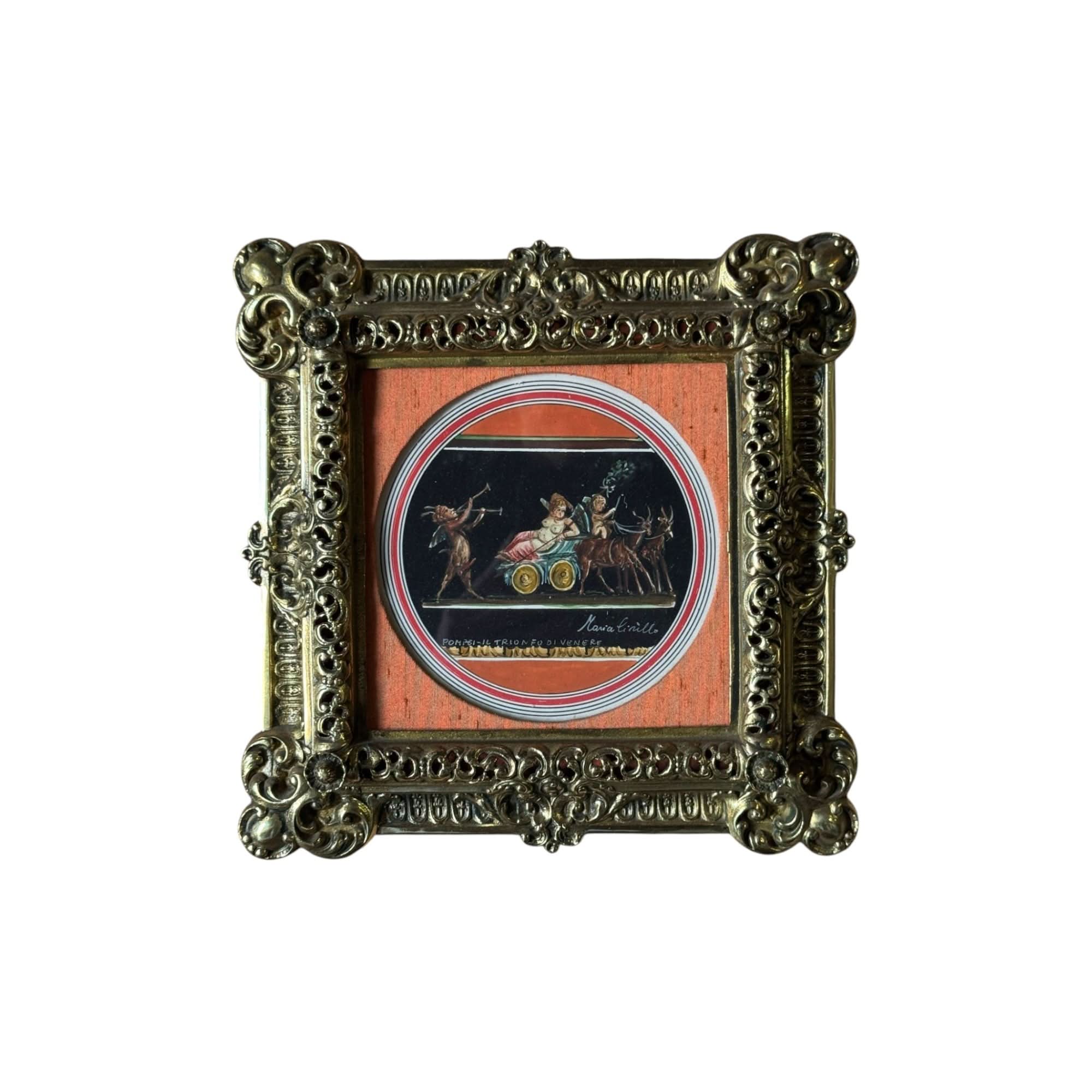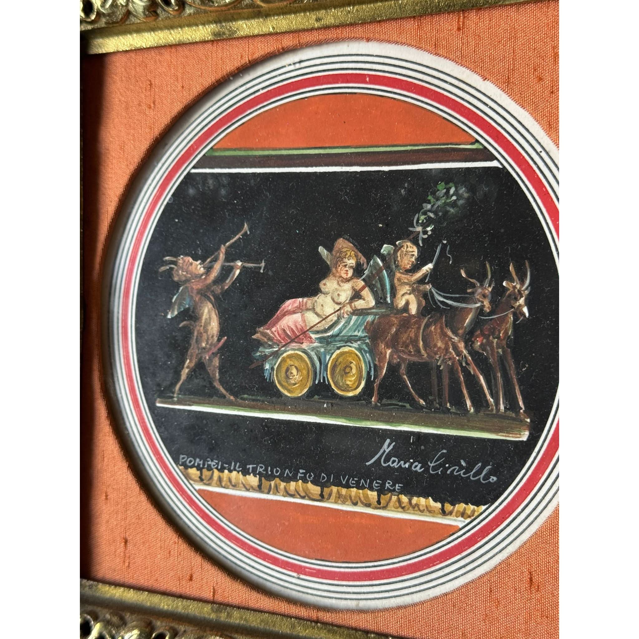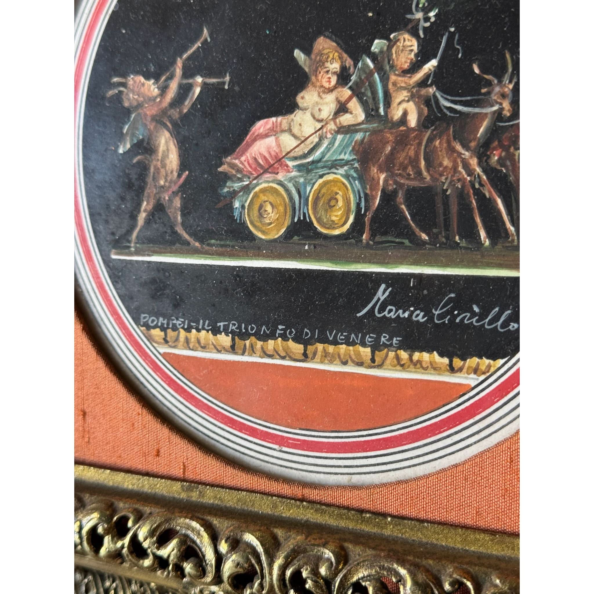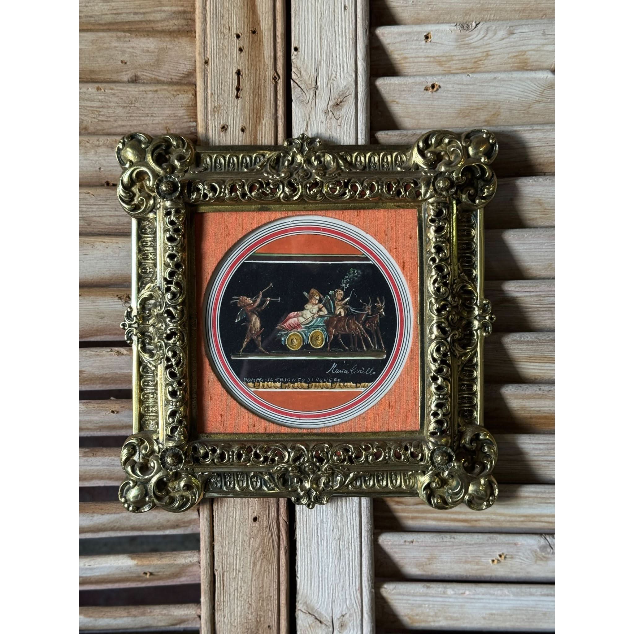 Beautiful antique gouache painting by Maria Cirillo with ornate brass frame. Some patina to frame as expected with age. Ready to hang.