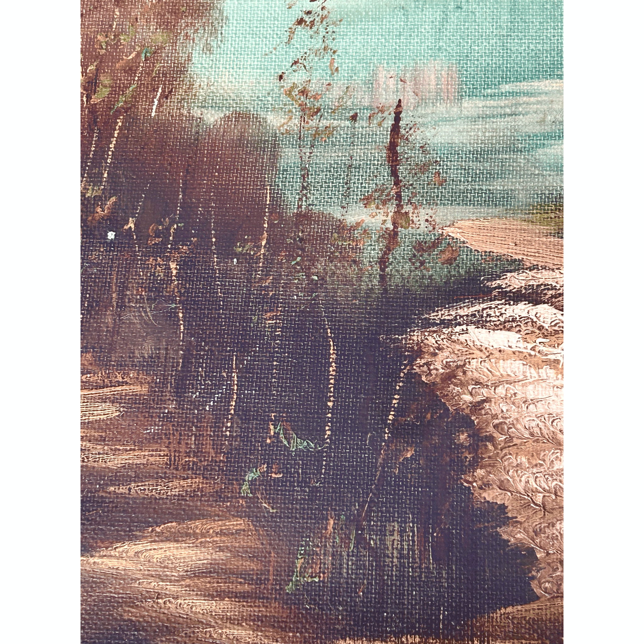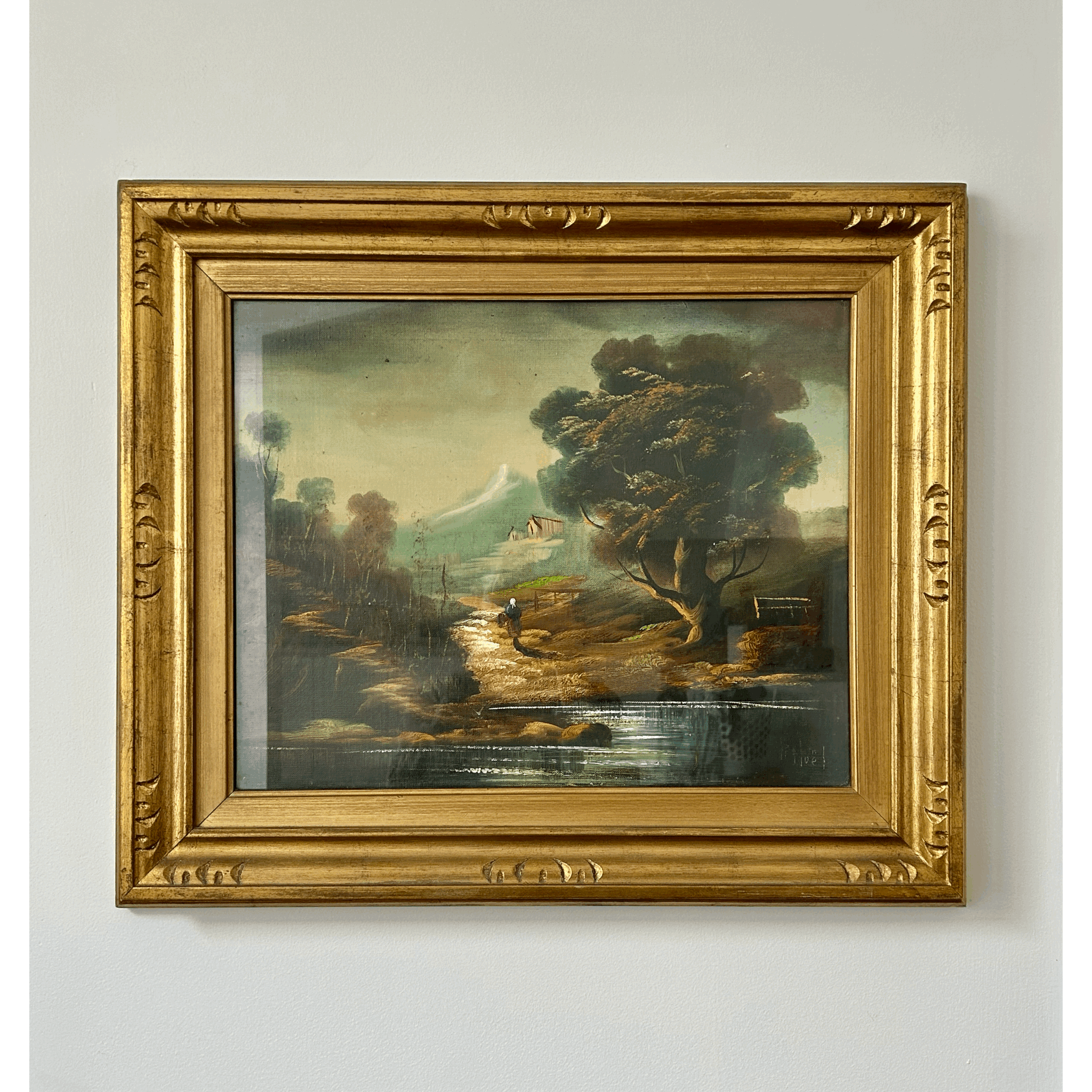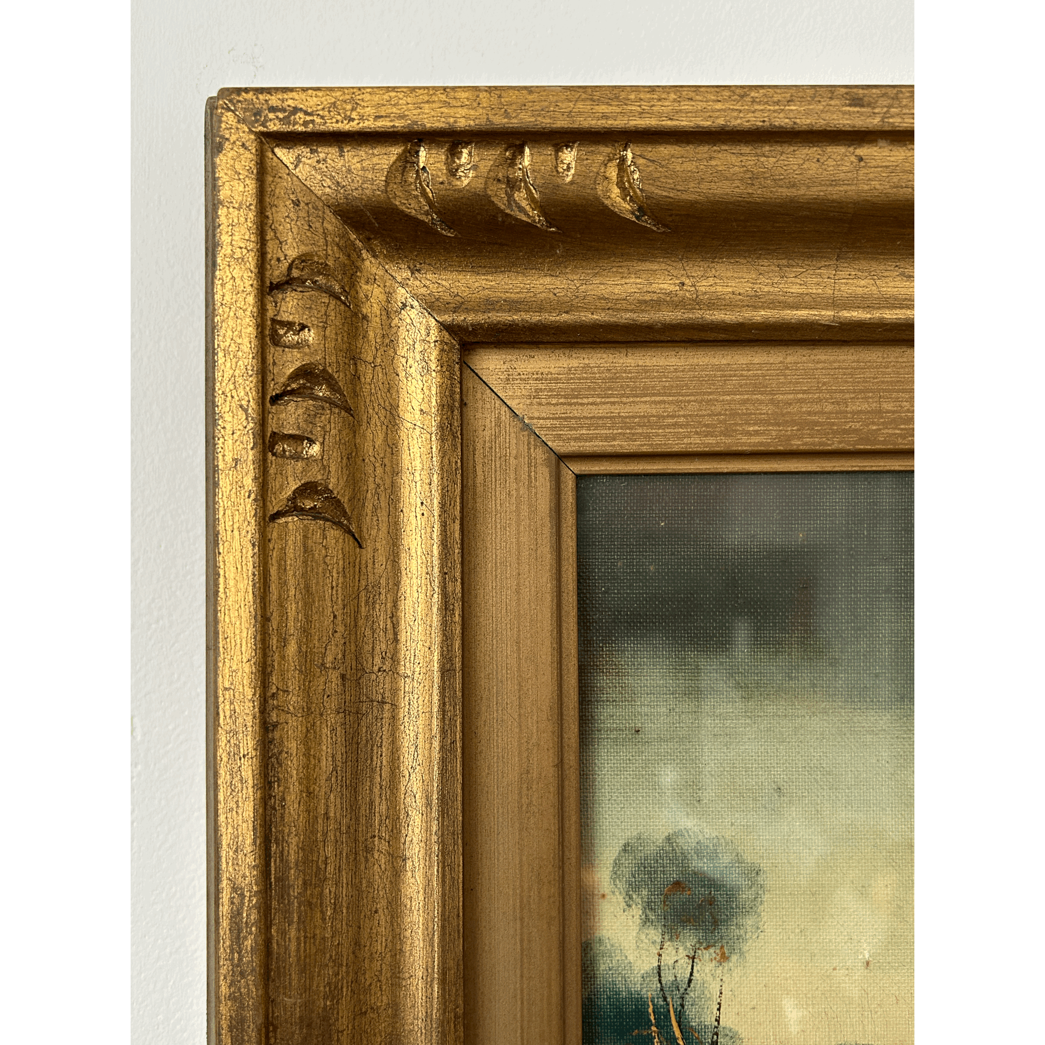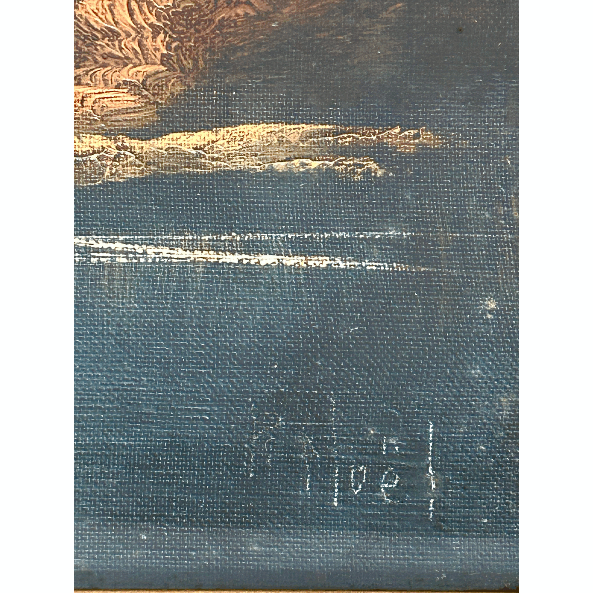 Executed in oil on canvas and house is an ornate gold frame with reflective glass, the piece is signed in the lower right-hand corner, though the signature is hard to make out (P. Noël??). The painting remains in very good vintage condition with only minor marks to the frame (due to its age) and presents wonderfully as a statement piece in both classic and eclectic interiors.