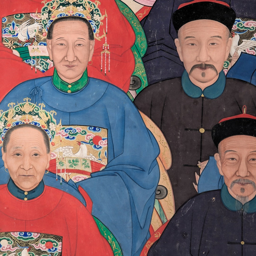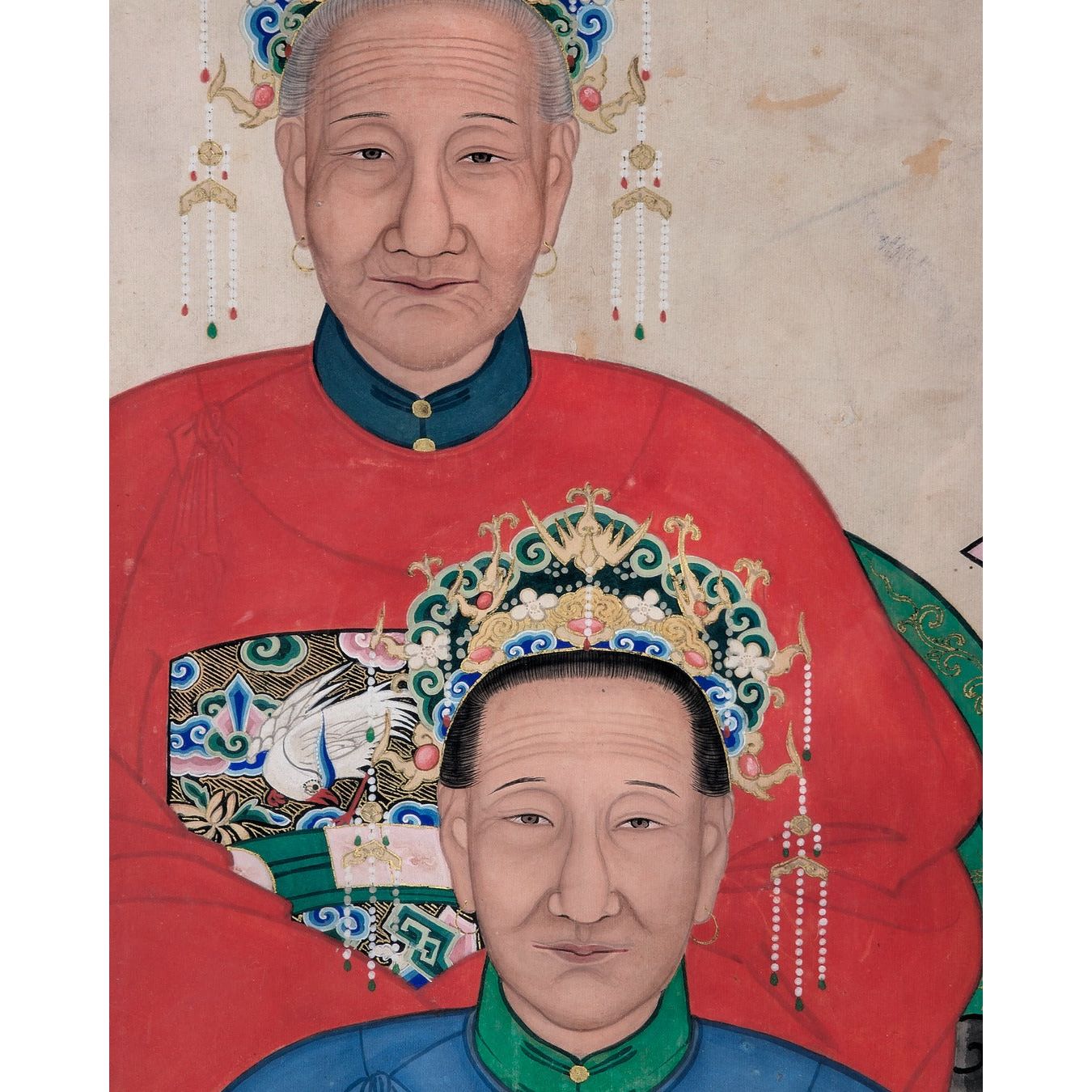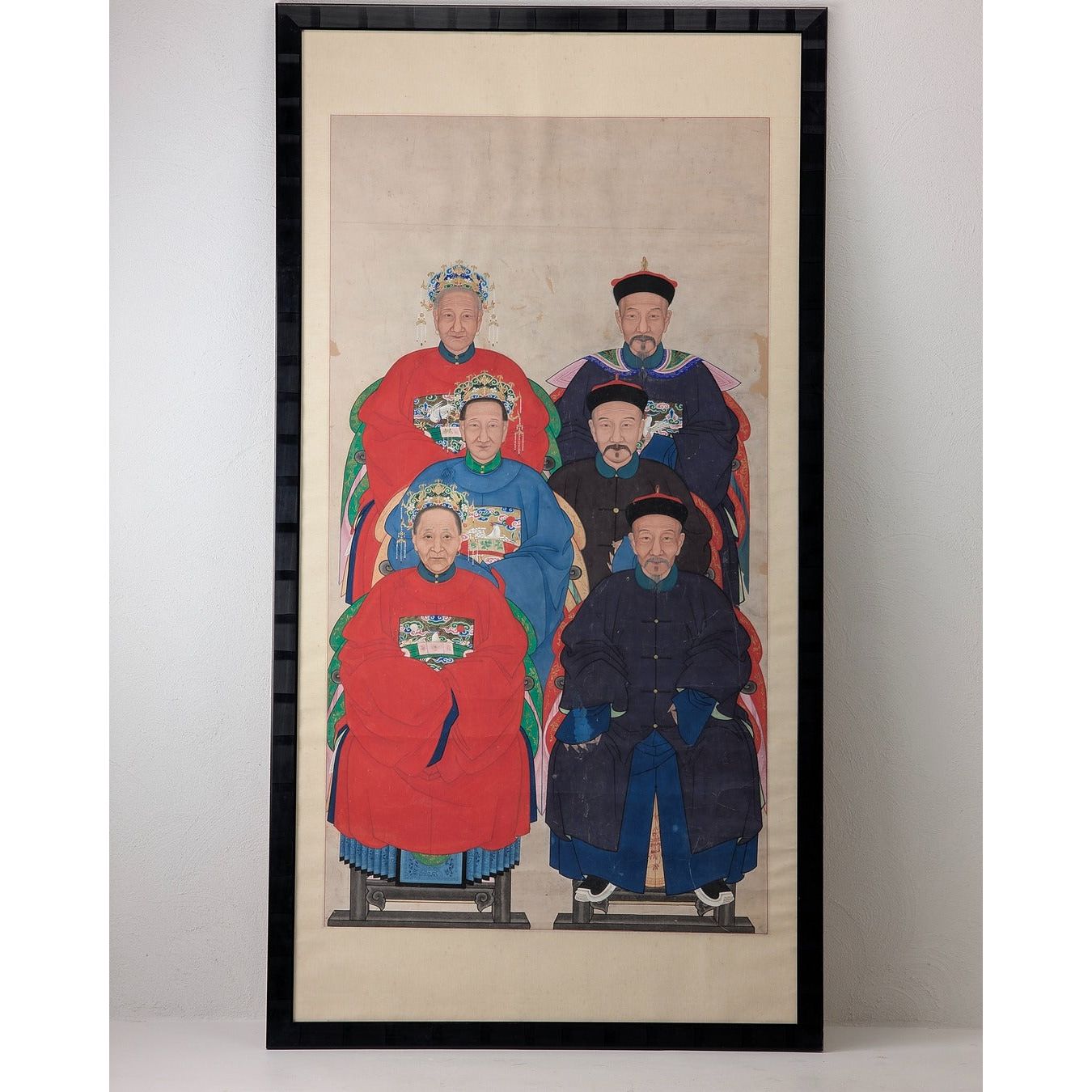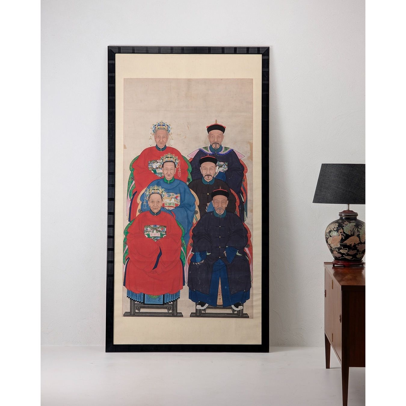 Ancestral portraits like this were commissioned to honour family members and were central to cultural traditions of veneration. The impressive scale and fine detail make this a commanding and historically significant piece.