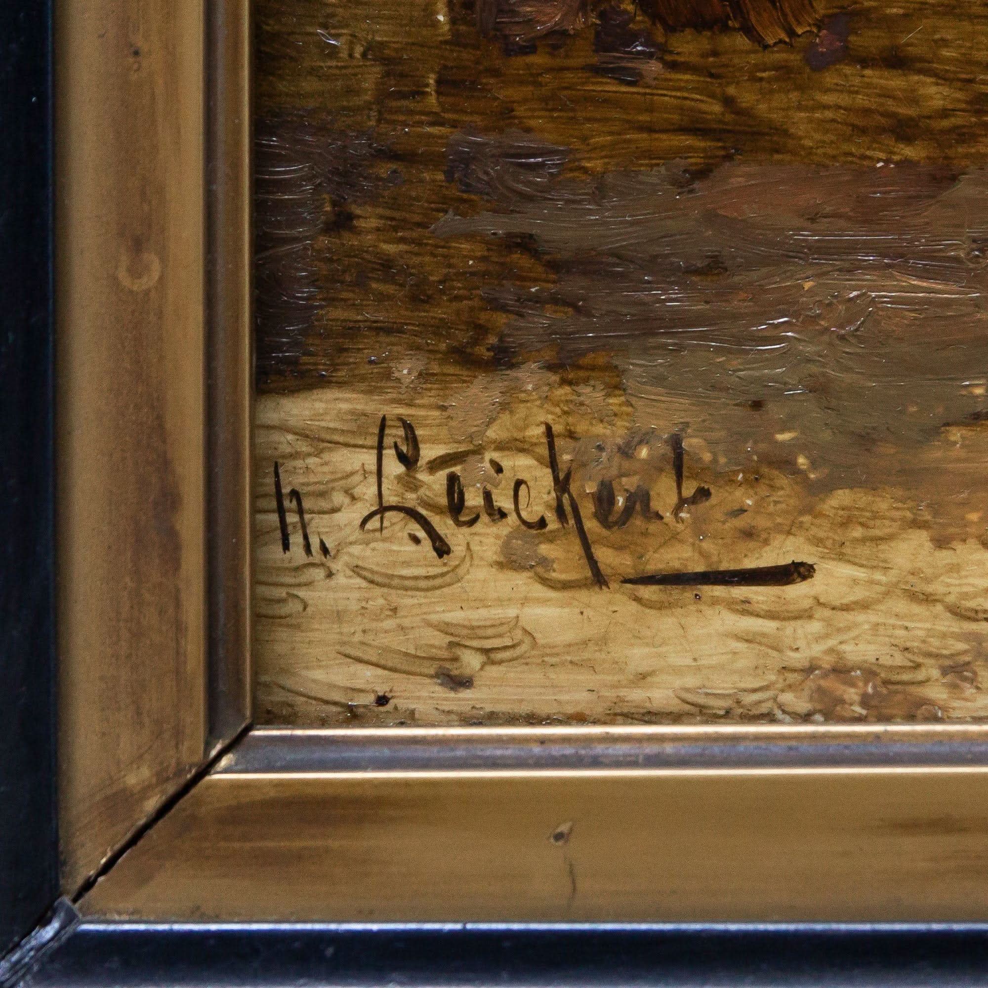 Charles Leickert first learned painting in The Hague under the supervision of landscape painters Bartholomeus van Hove, Wijnand Nuijen, and Andreas Schelfhout, among many others. Leickert specialized in winter scenes, sometimes romanticizing the sky in pale blues and bright pinks, but he is equally well known for numerous cityscapes. He painted almost all of his works in the Netherlands, in The Hague from 1841 to 1846, and in Amsterdam from 1849 to 1883. In 1856, he became a member of the Royal Academy of Amsterdam. At the age of 71, he moved to Mainz, Germany, where he died in 1907.