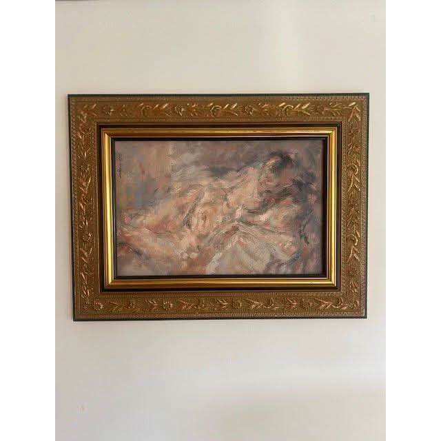Original oil painting reclining lady.  Gorgeous vintage frame. Signed.