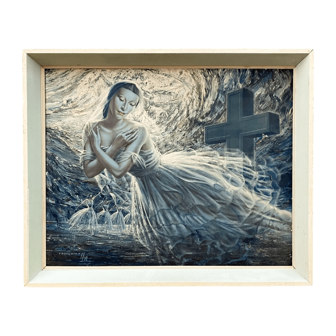 Vladimir Tretchikoff's mid century 'Ballerina' art print. In its original wooden frame - without glass. In good vintage condition, with some signs of use commensurate with age.