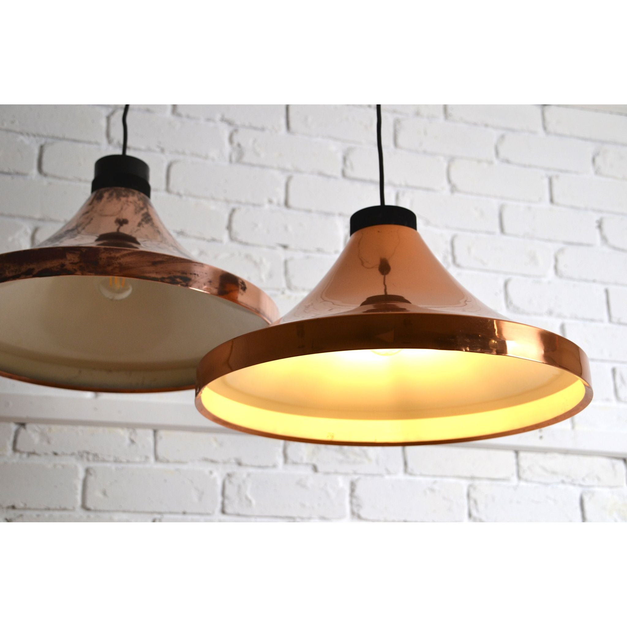 Vintage large sized copper pendant light. Likely Danish in origin. c,1960s/70s.