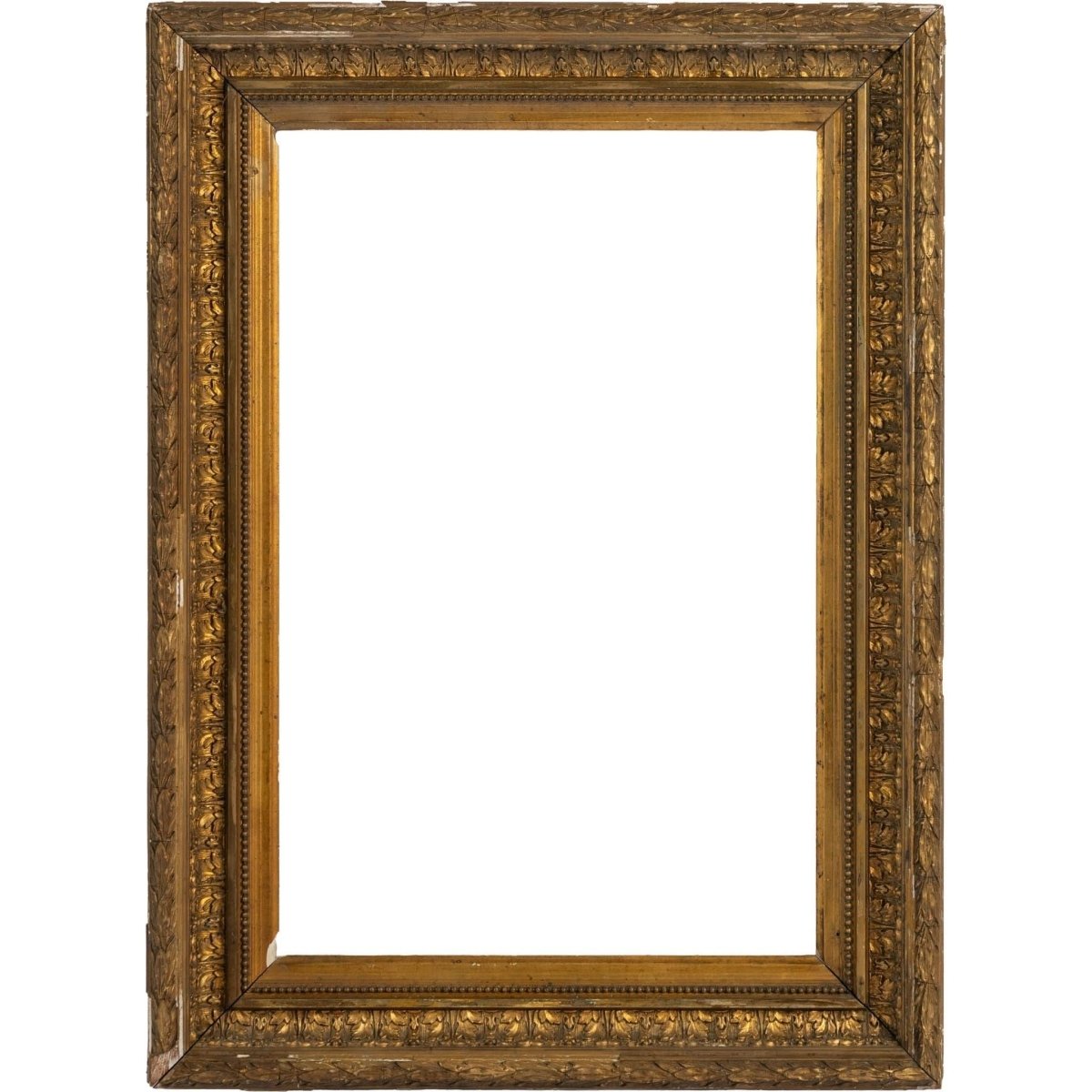 Beautiful Antique French 19th Century giltwood frame, richly carved featuring intricate floral motifs and beaded detail in a beautifully distressed and aged frame addicting to its ornate character.