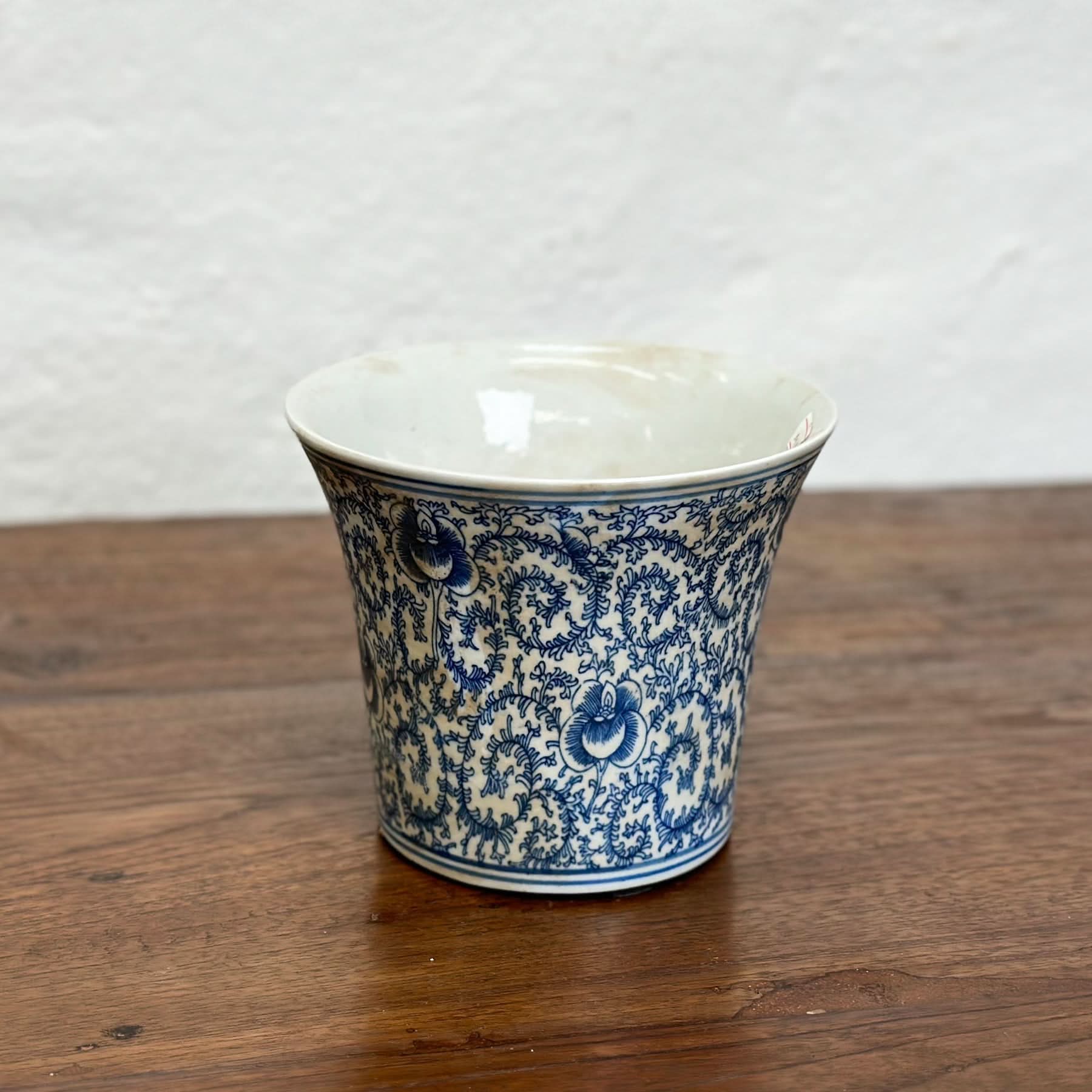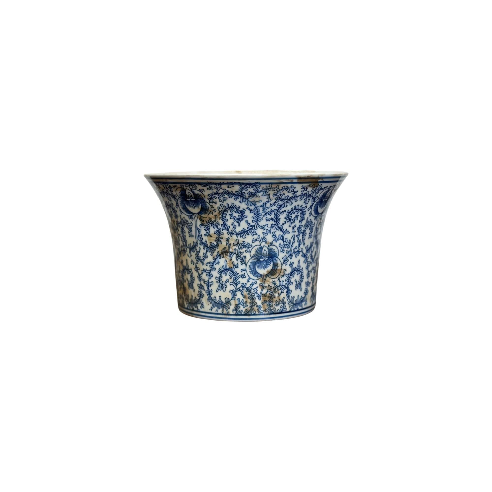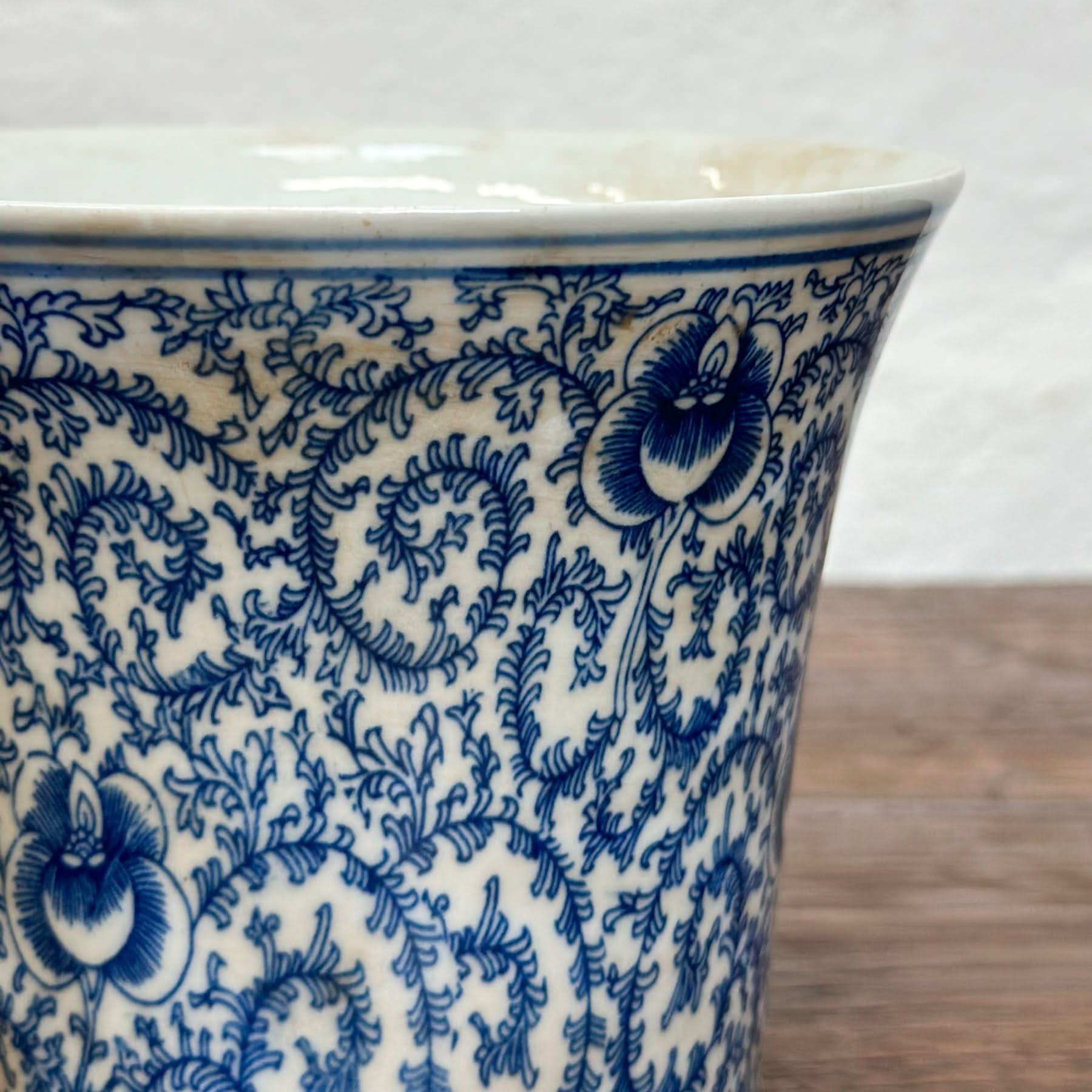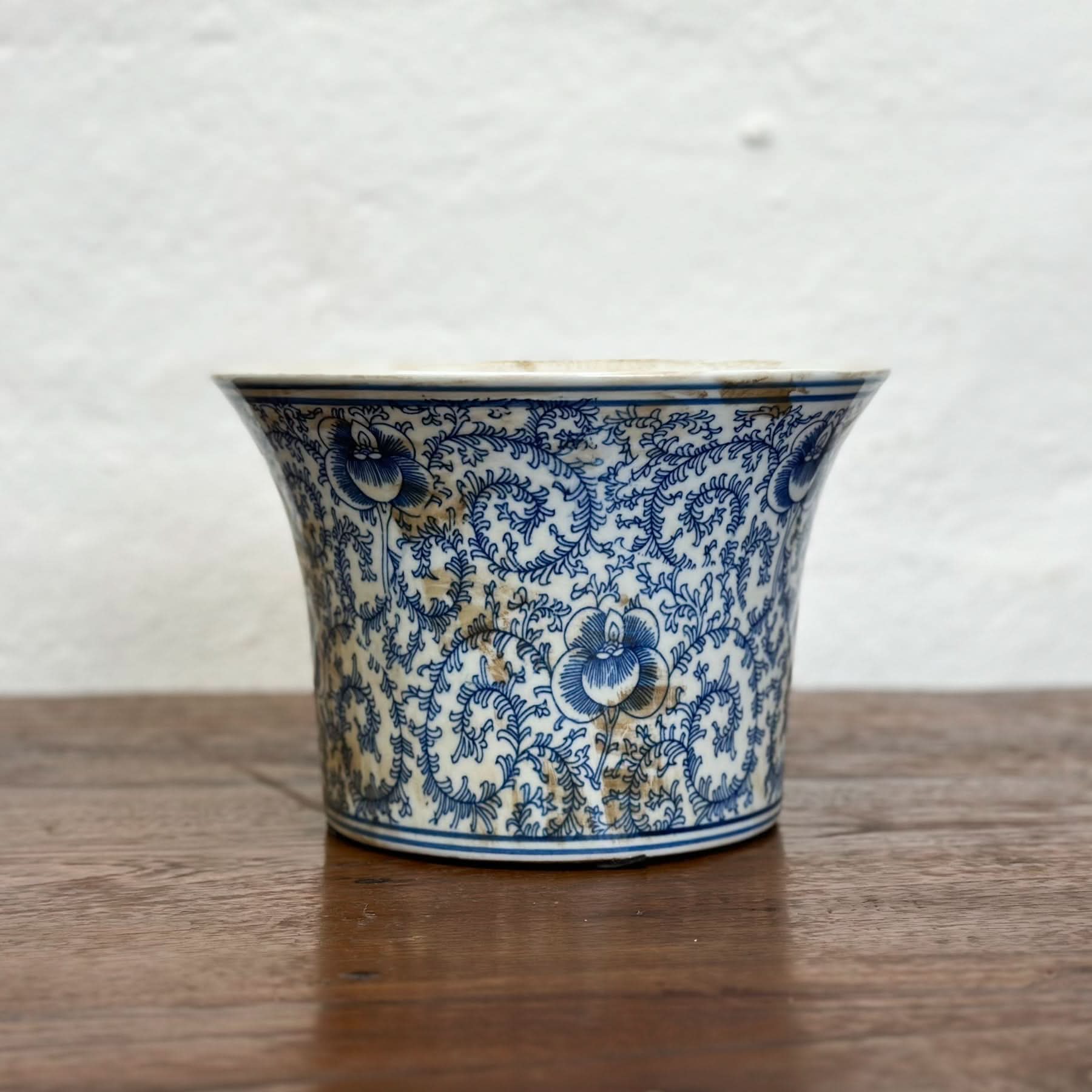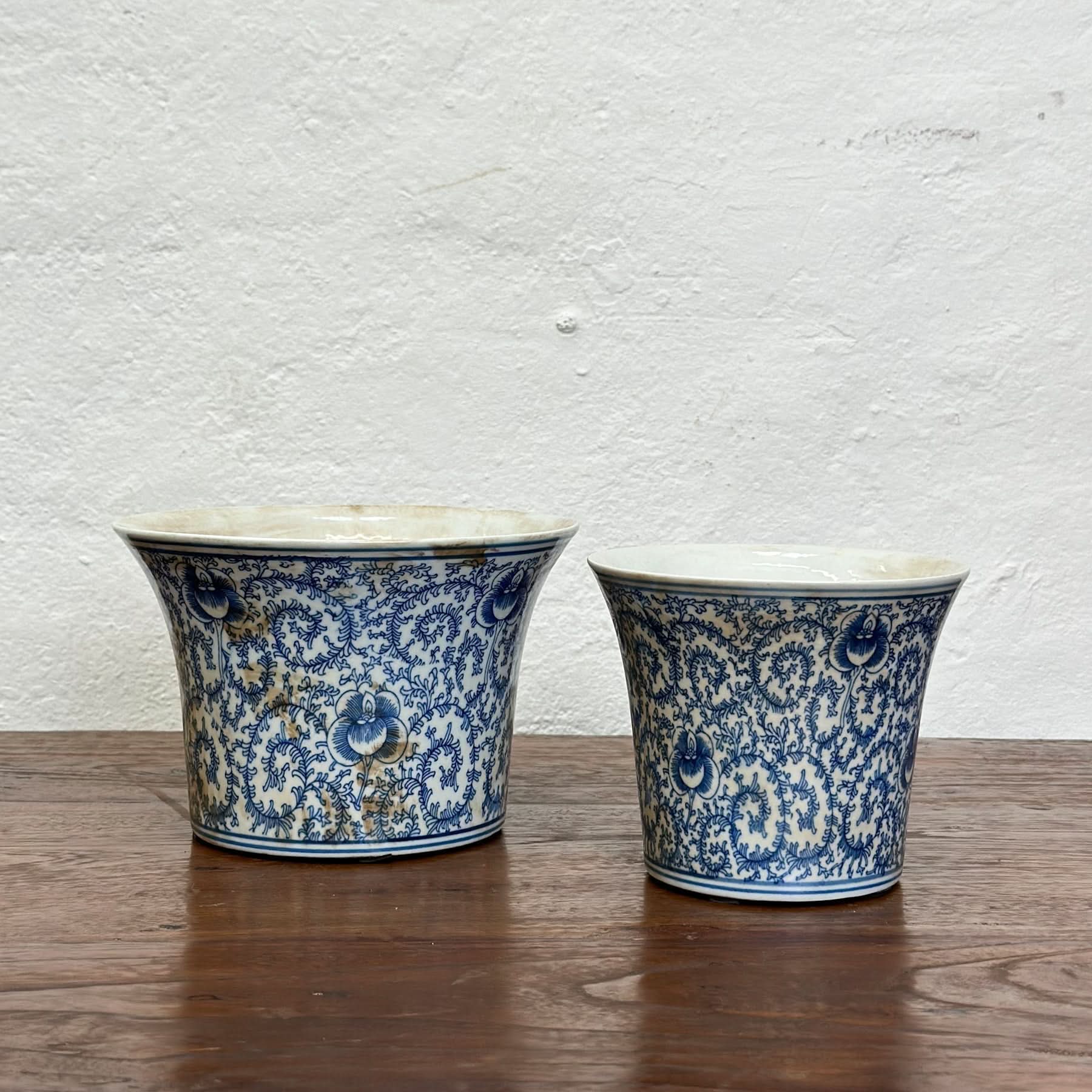 The potter and the vase painter are in perfect harmony on these beautiful flared pots. A simple foliage plant in these pots will add to their impact although they are standalone artworks In themselves.