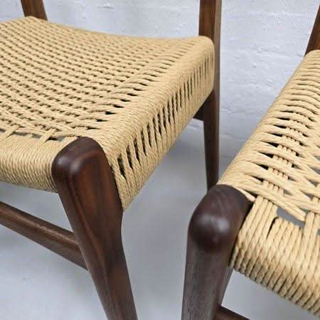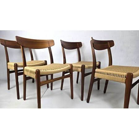 Hans J Wegner chairs (set of 4) with frame of oiled walnut and natural paper cord. These chairs have been used for display only and are practically new. Come with serial number and original packaging. Save about $1,000 per chair and have them delivered in a few days!
