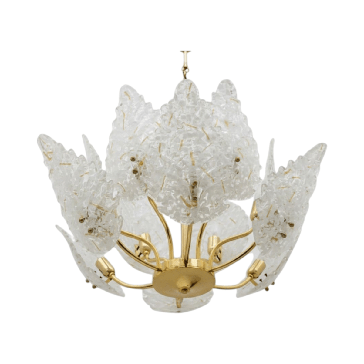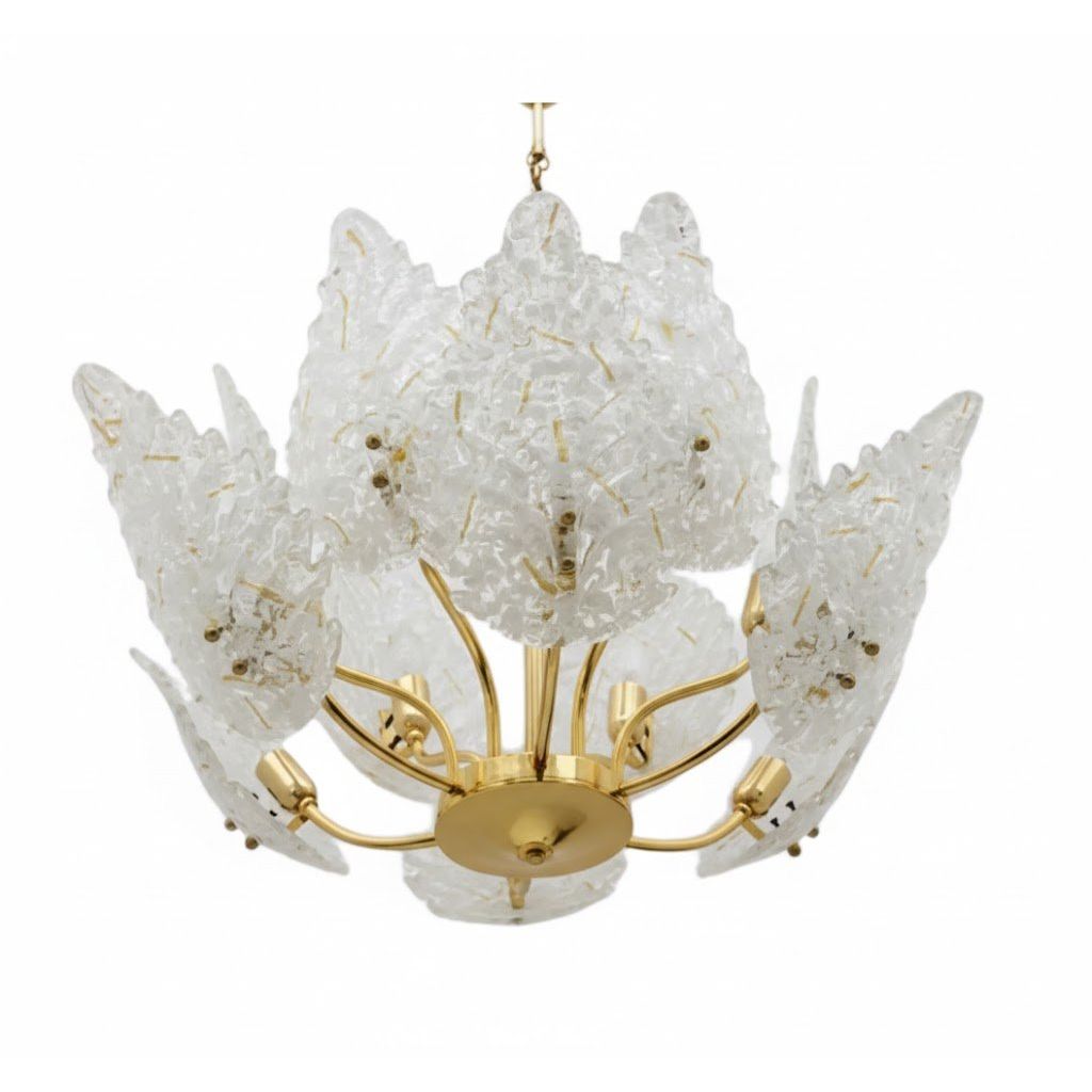 Italian modern brass and Murano glass chandelier, circa 1970s.