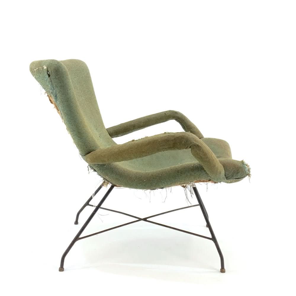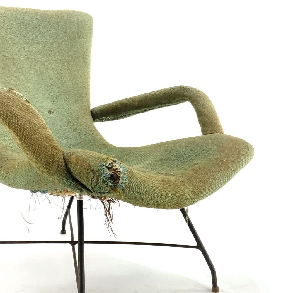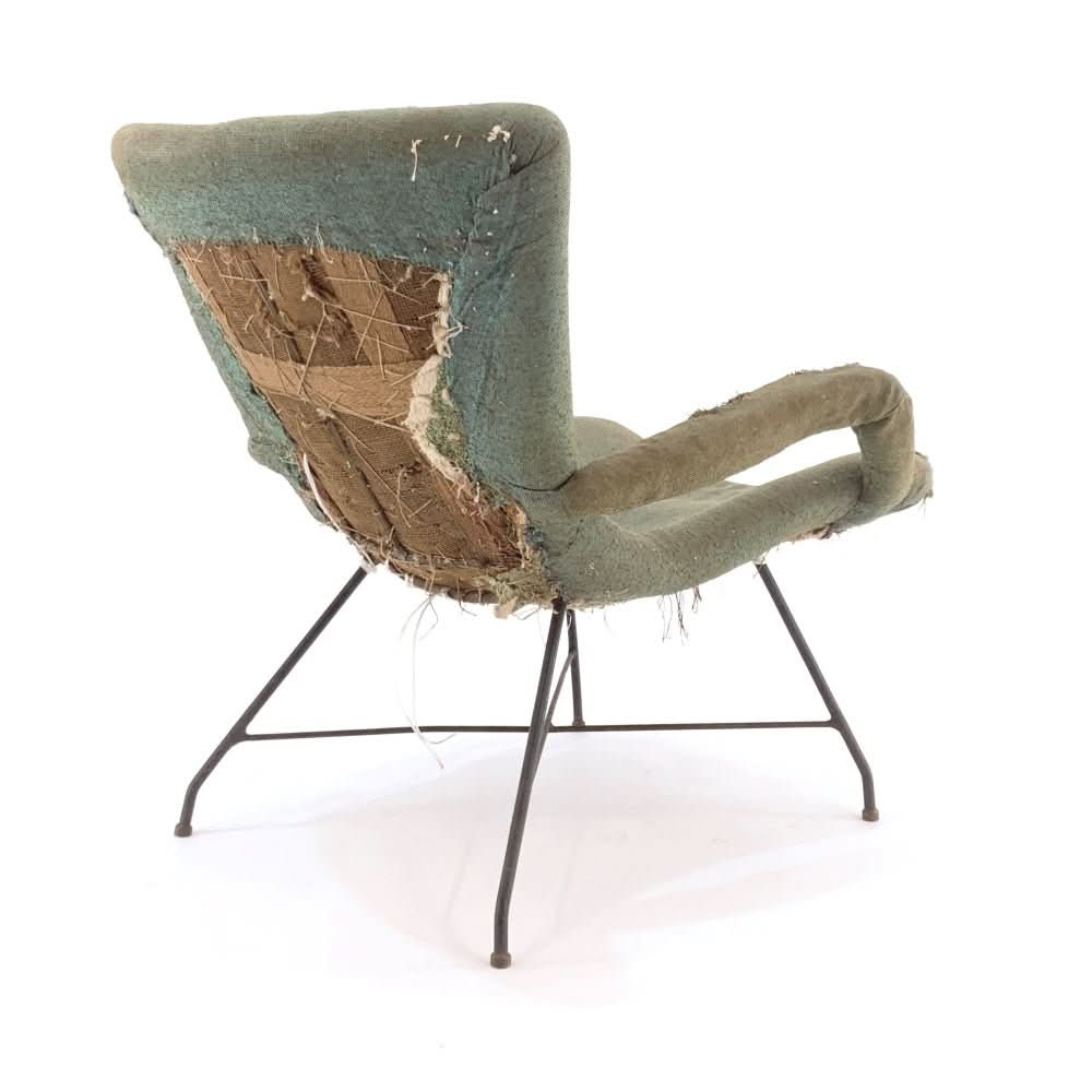 Extremely rare and original Lounge Chair by Martin Eisler and Carlo Hauner. Speak to us about custom upholstery options.