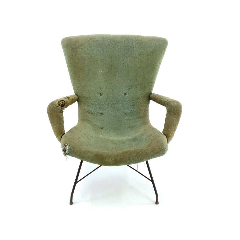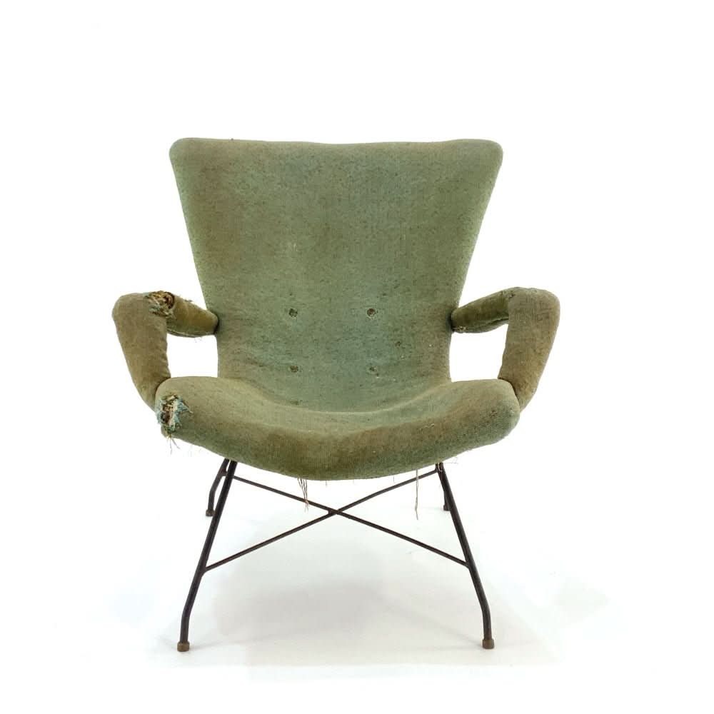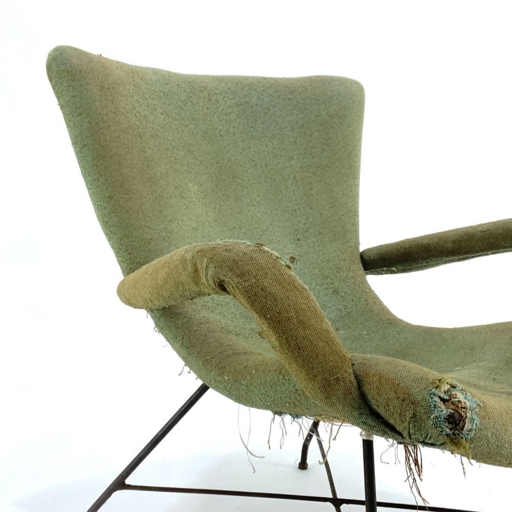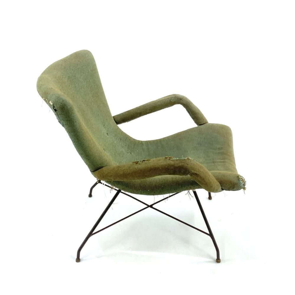 Extremely rare and original Lounge Chair by Martin Eisler and Carlo Hauner. Speak to us about custom upholstery options.