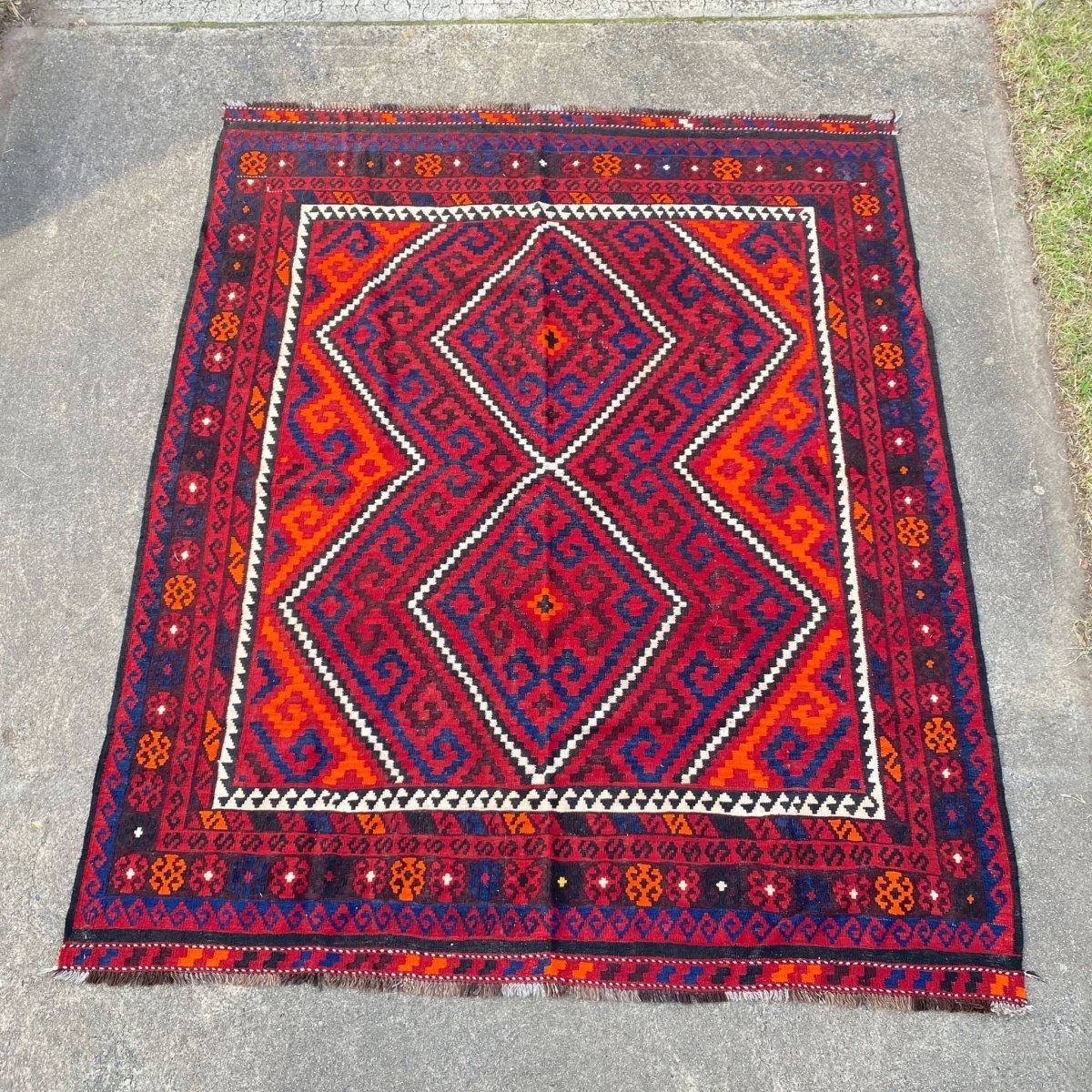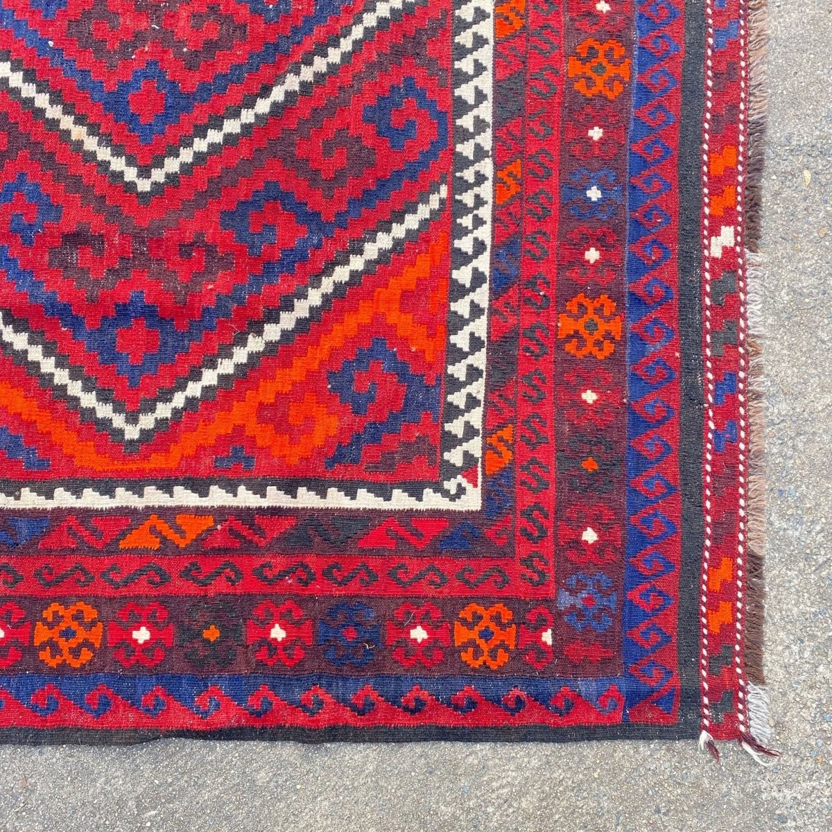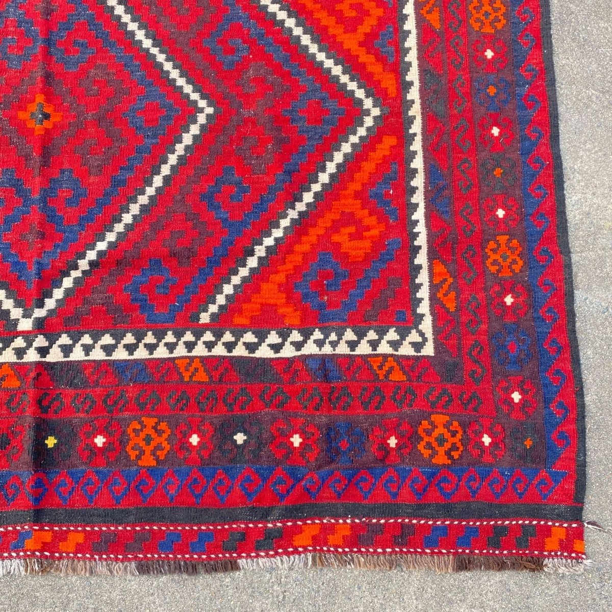 Large handmade wool kilim rug, with classic geometric pattern throughout. In excellent condition.