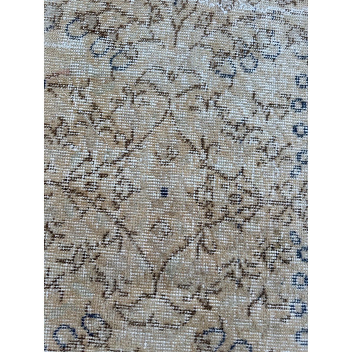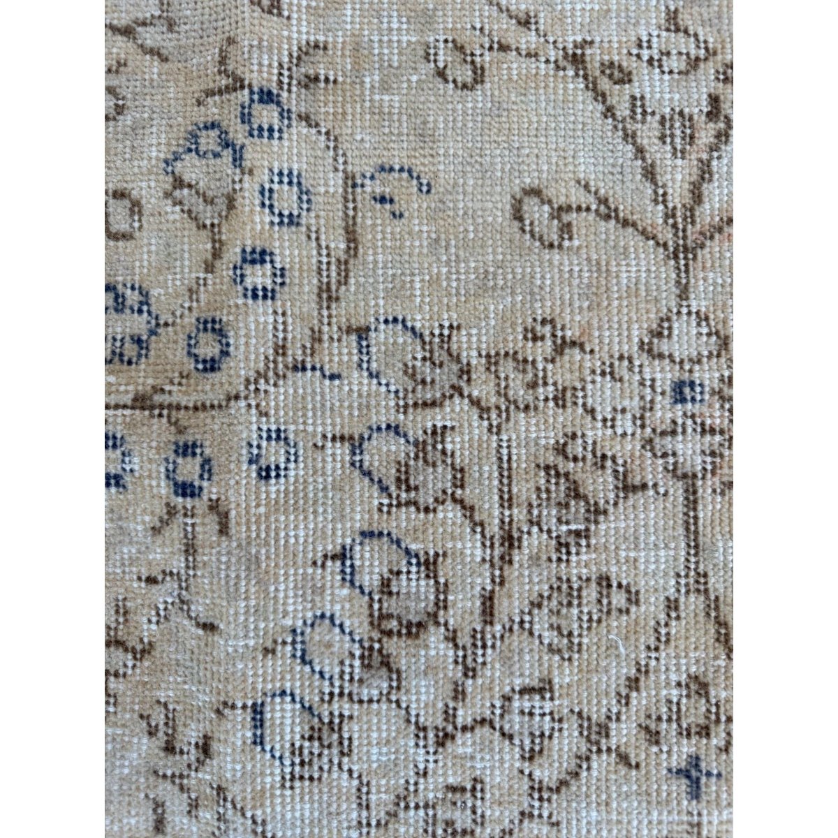 A 70-year-old hand-knotted Oushak, 286 x 178cm, in exceptional condition. This one-of-a-kind piece is woven in a soft, sandy almond base with an all over design and no central medallion, just a graceful flow of florals and vines that stretch from edge to edge.