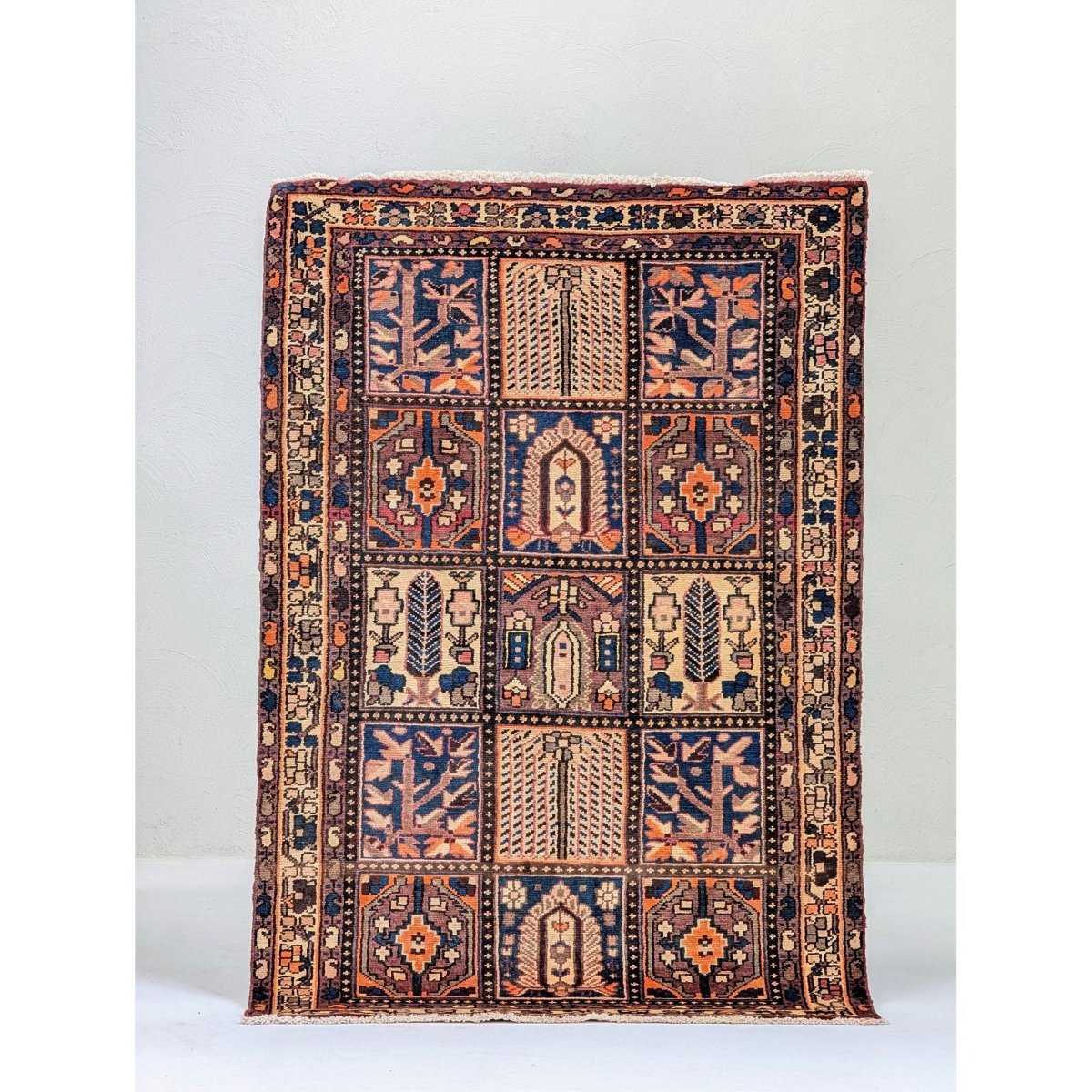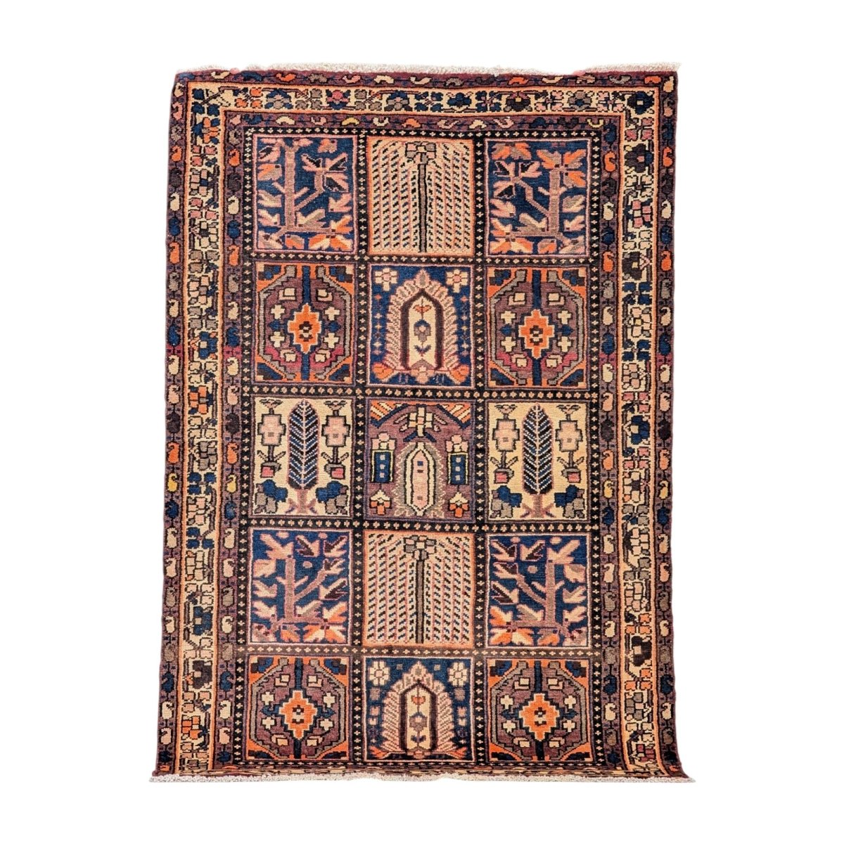 Originating from the Zagros Mountains of western Iran, this piece features the signature "Kheshti" (Garden Panel) design, one of the most beloved and collectible motifs in Persian weaving.
