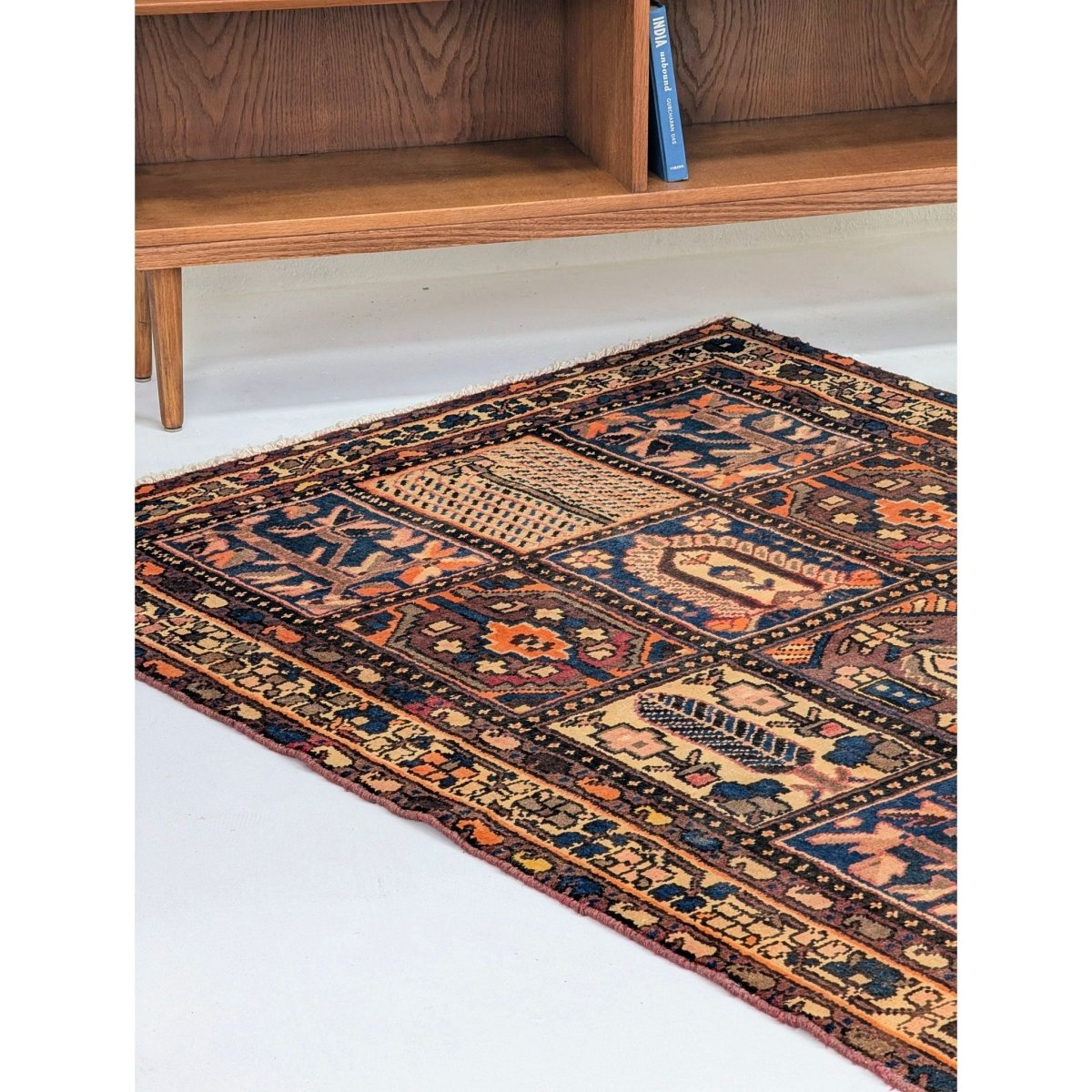 Bakhtiari rugs are renowned for their durability and thick wool pile, making this piece not only a work of art but a practical choice for high-traffic areas. Its versatile size (2m length) makes it perfect for defining a lounge area, anchoring a home office, or adding warmth to a bedroom. It pairs exceptionally well with Mid-Century Modern teak furniture, industrial textures, or traditional interiors.