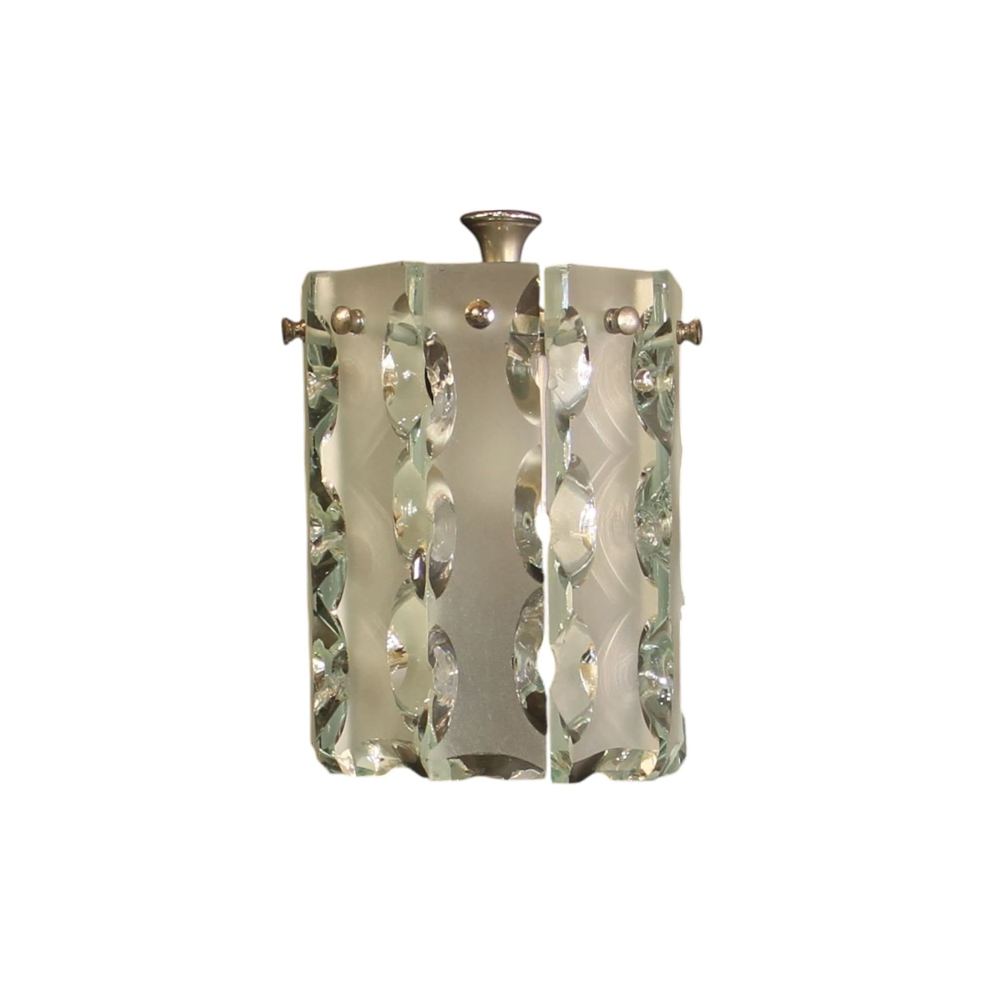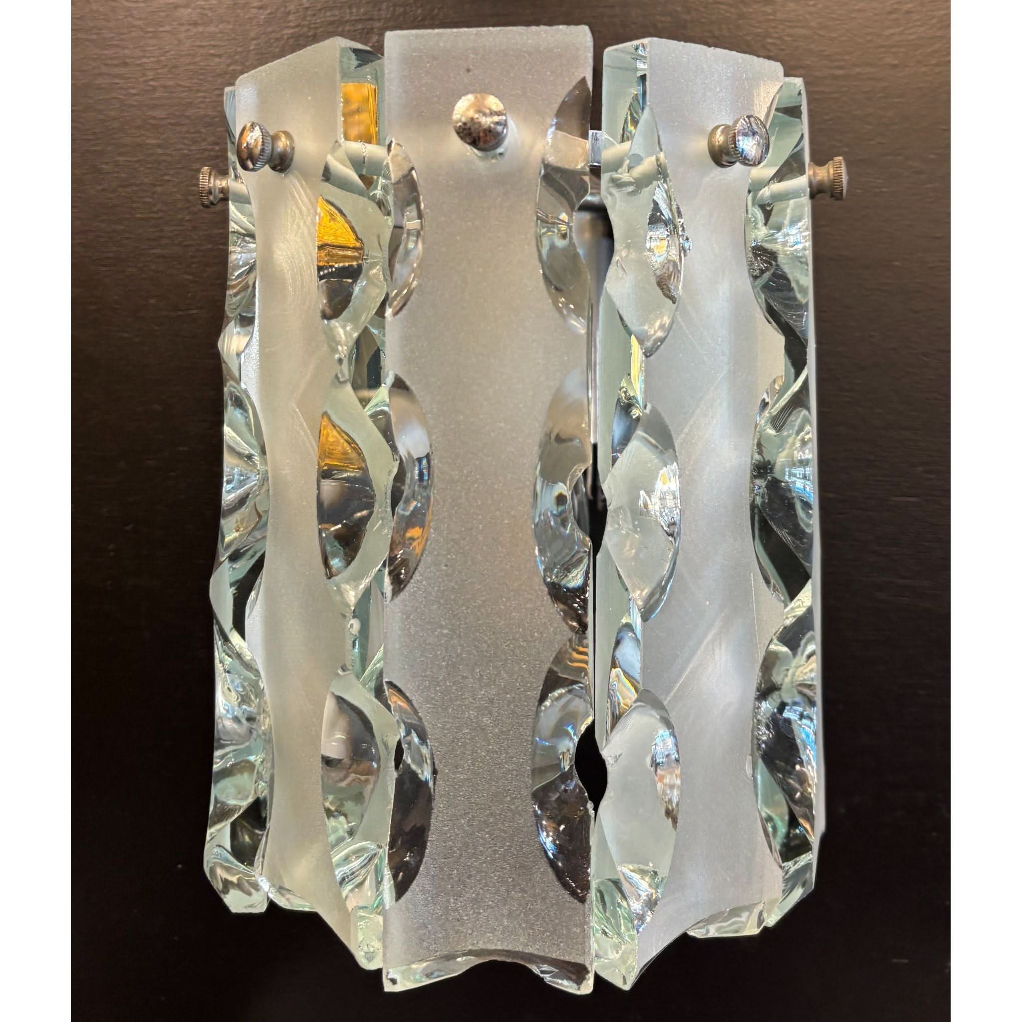 Fontana Arte wall sconces from 1970s. Italian thick cut glass sconces.