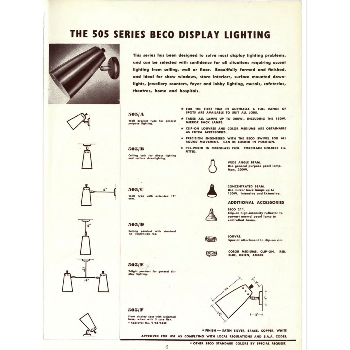 Mid century wall light / sconce by BECO- model 505 by Don Brown / Brown Evans & Co C,1950s, Melbourne, Australia. Rare commercial light fitting, these normally got trashed during shop fit-outs or demolition.
