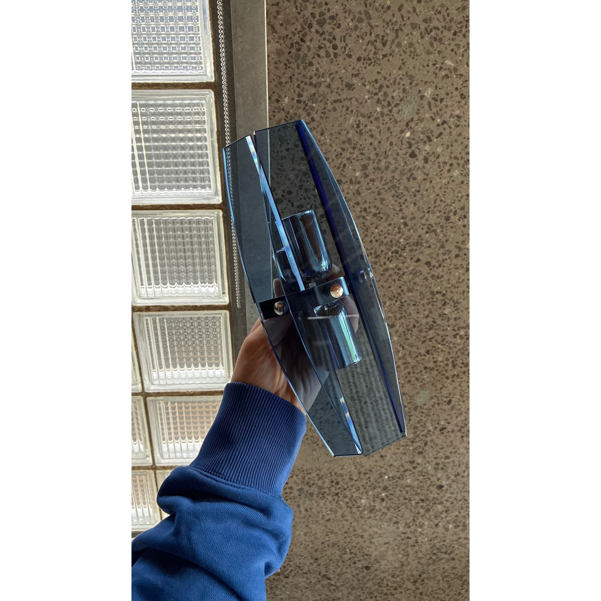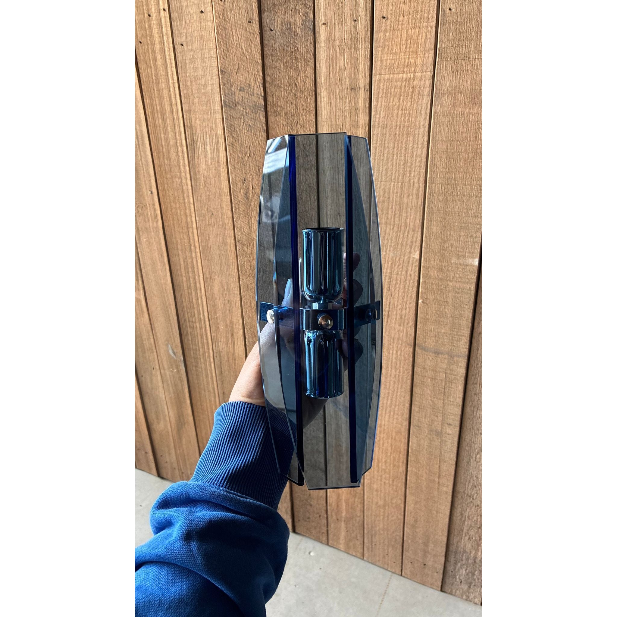 A rare single wall light by Veca, Italy 19790s, featuring their unmistakable use of thick, precision cut glass, here in an especially desirable midnight blue tone.