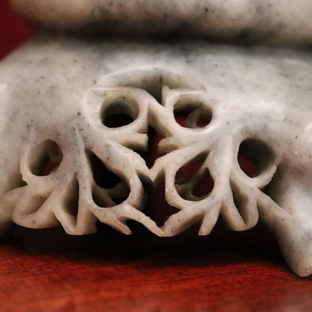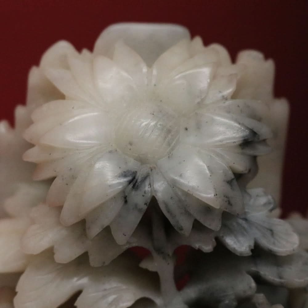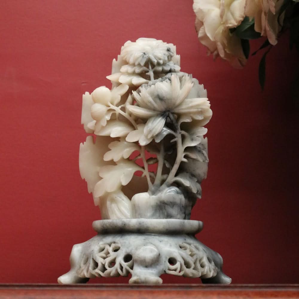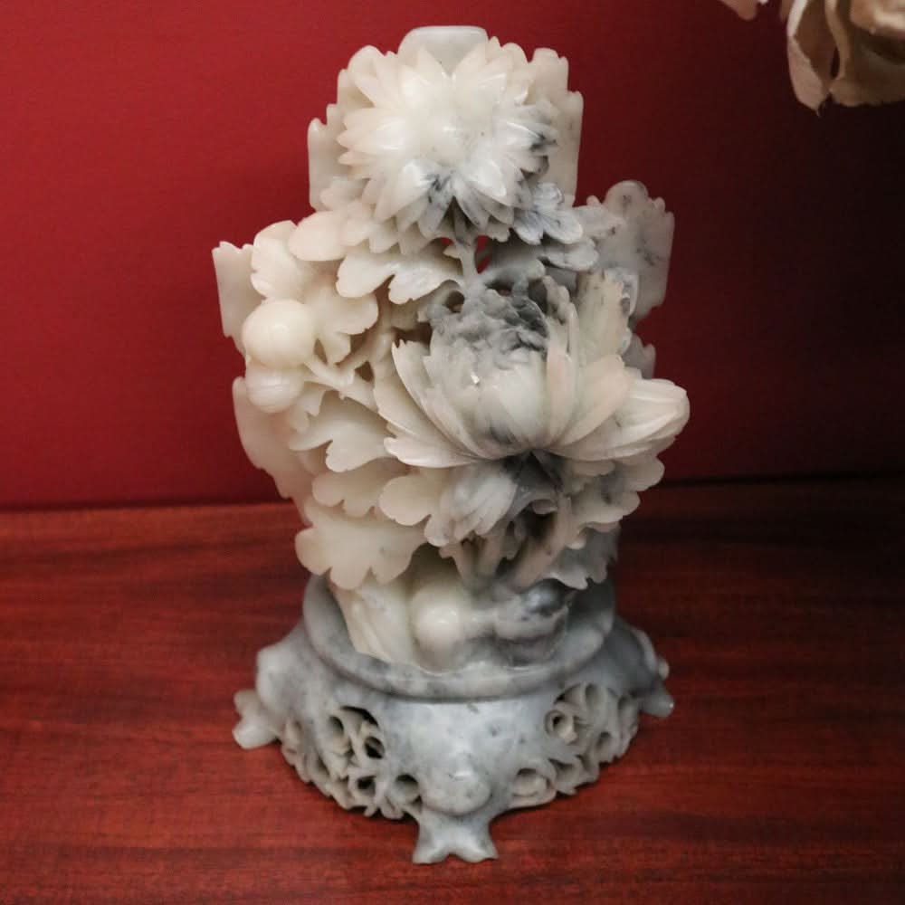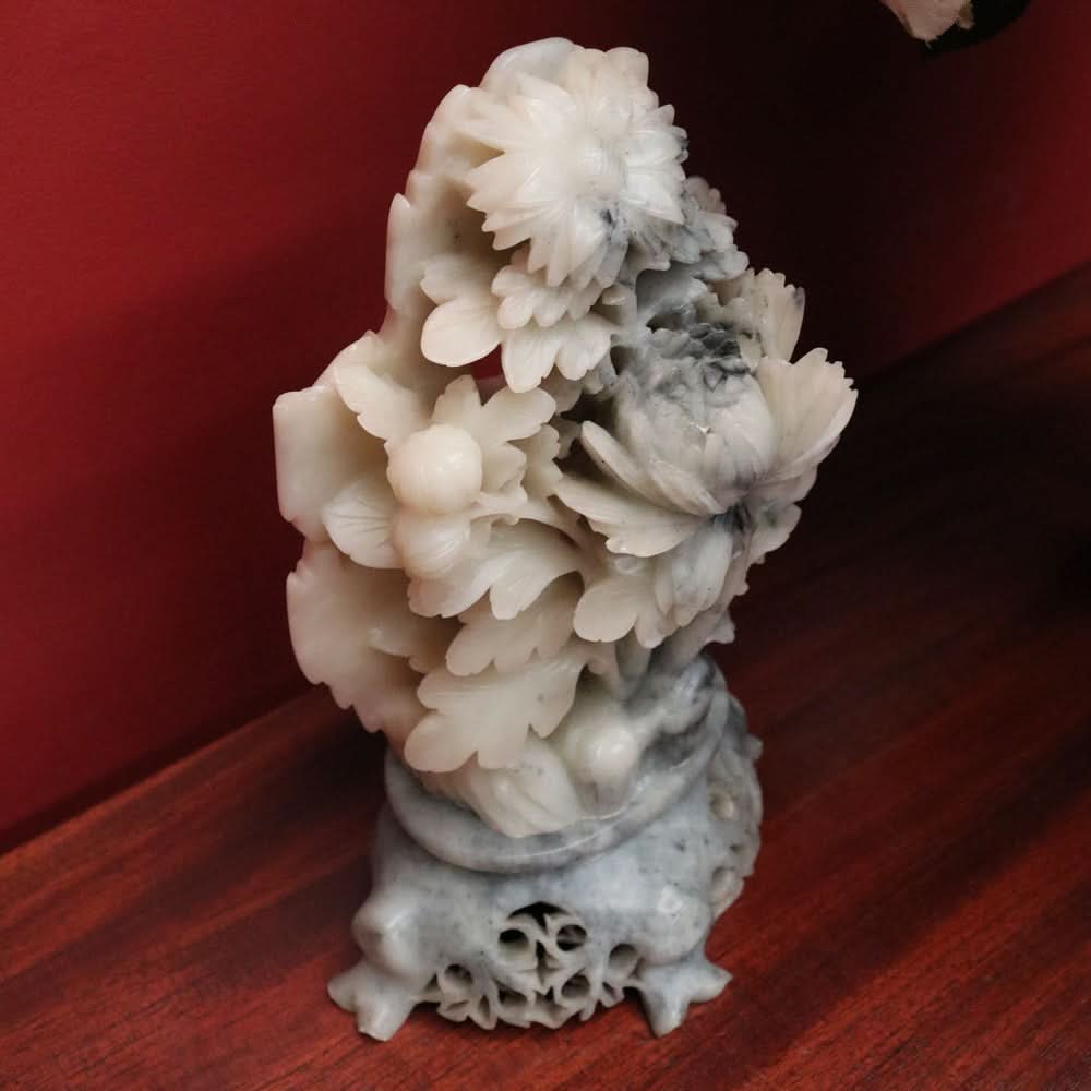 Description: This exquisite Chinese soapstone sculpture showcases delicate hand-carved floral motifs, reflecting the refined artistry often found in traditional Oriental craftsmanship. With warm, natural tones and soft detailing, this piece is both decorative and timeless in appeal.