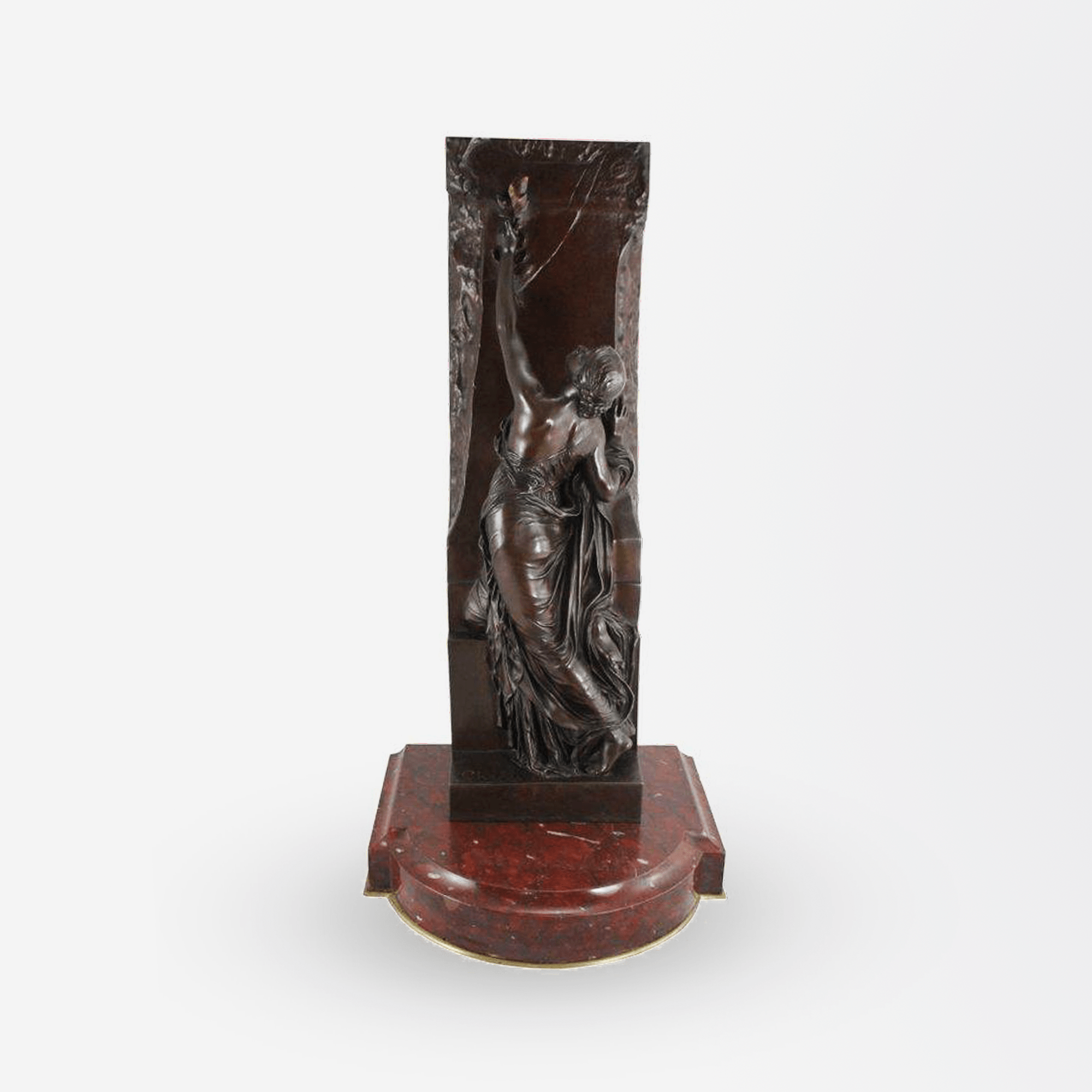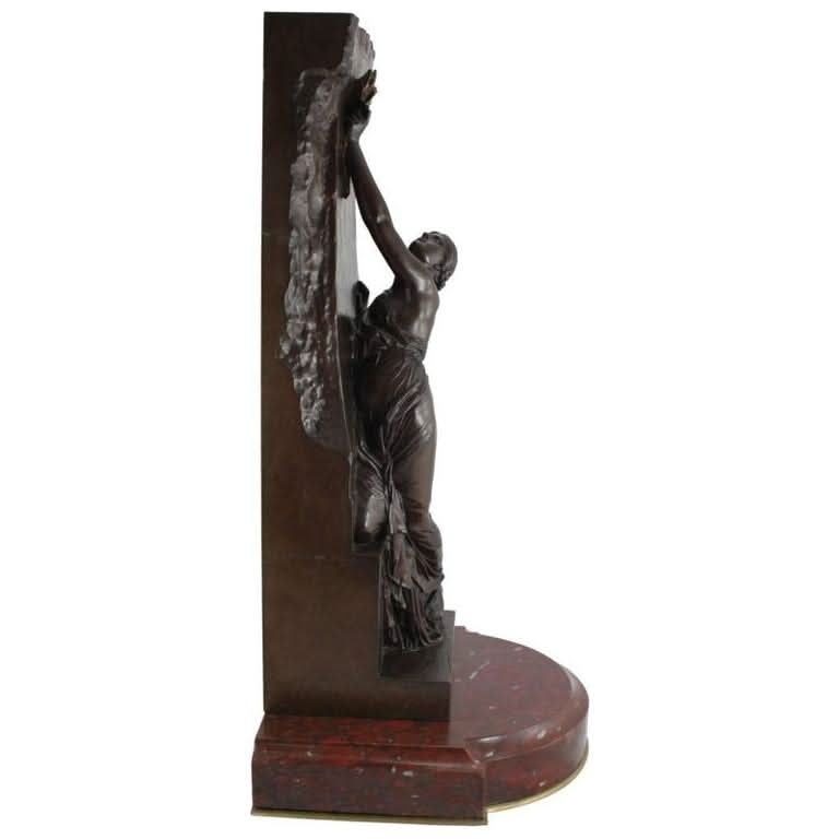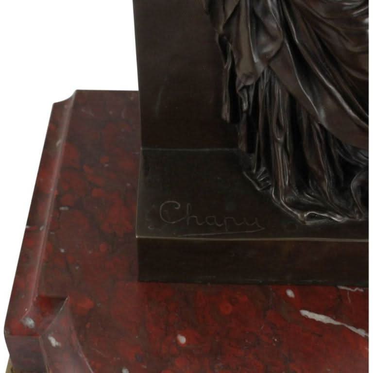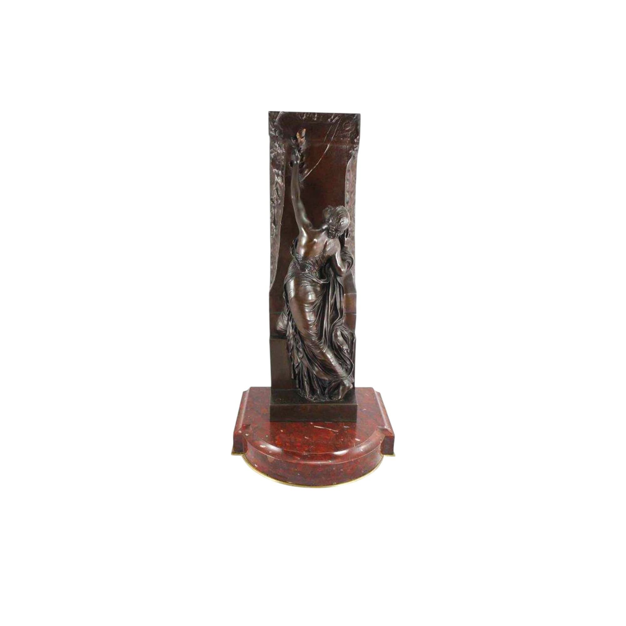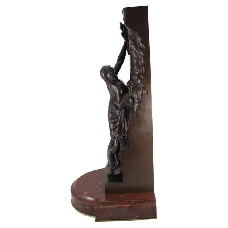 This French bronze sculpture, titled La Jeunesse, was originally by the sculptor Henri Chapu and rendered by the Ferdinand Barbedienne foundry in Paris, using the 'Reduction Mecanique' by French Engineer and company co-founder Achille Collas. The Reduction Mecanique was a technique pioneered by Collas and Barbedienne for reproducing smaller-scale sculptures and is often credited with single-handedly revolutionising the bronze industry at the time. The bronze is also signed 'Tiffany & Co.' as this piece was later retailed in the United States by the New York retailer. Displayed atop a marble base.
