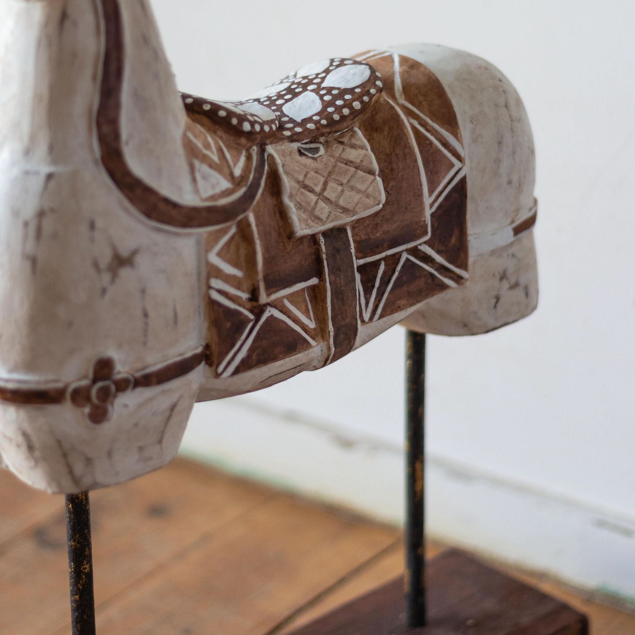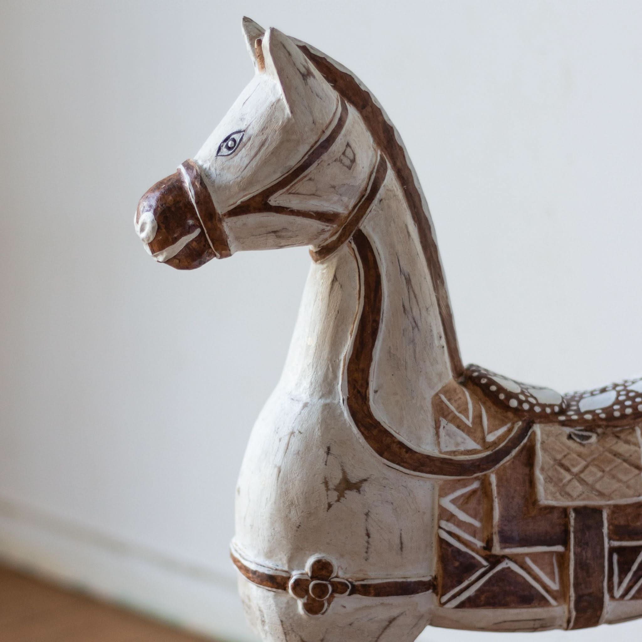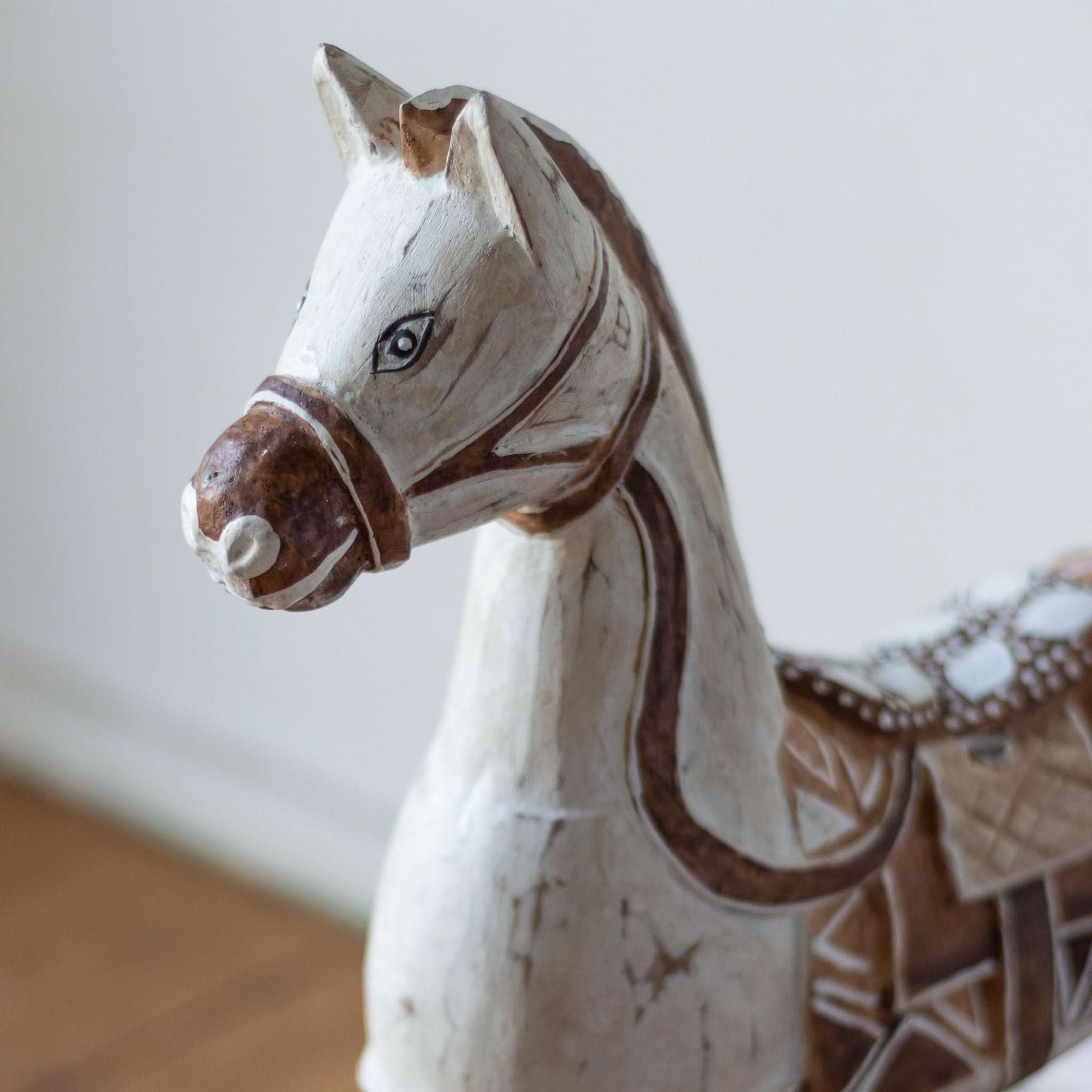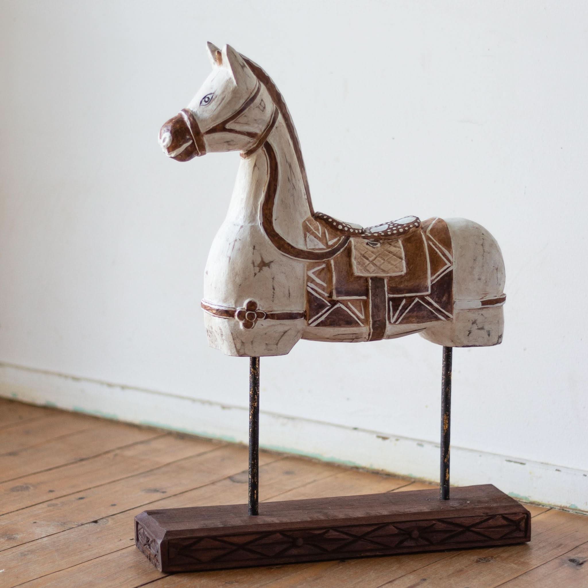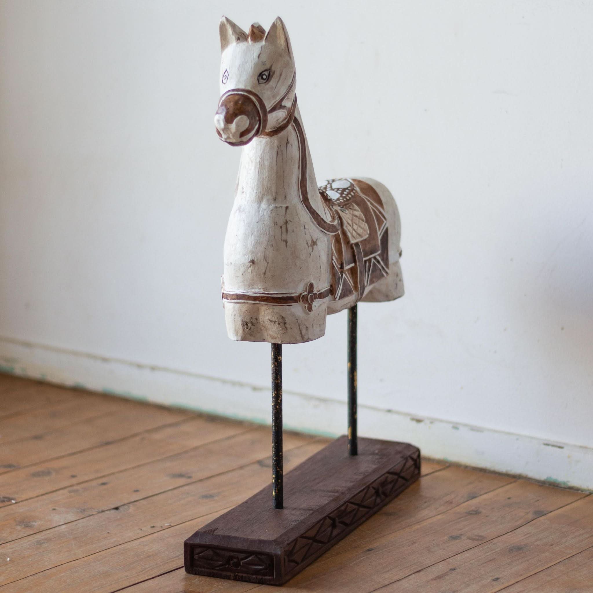 Hand-carved from wooden Britannia Horse Statue is one you'll cherish for years to come and will be a show stopper in your home. The detail of the carvings and hand painted surface adds a more majestic feel to this magnificent piece.