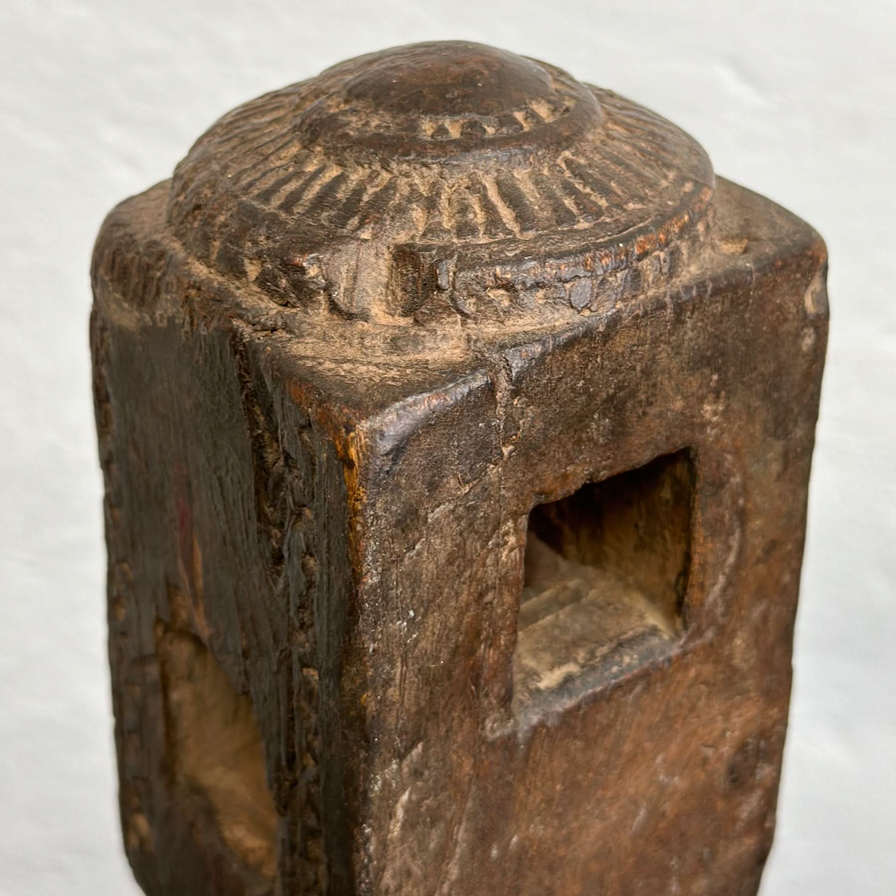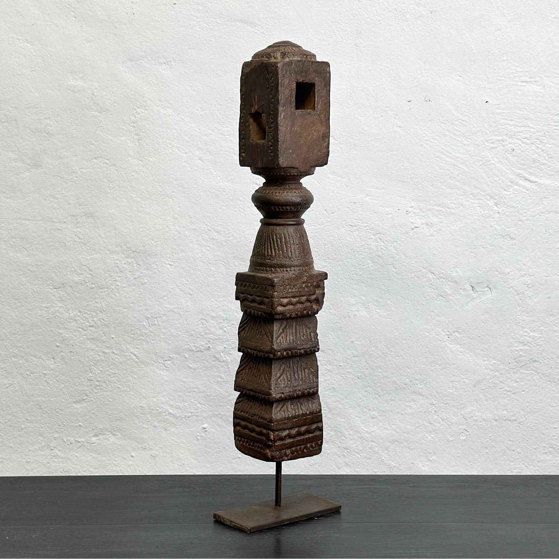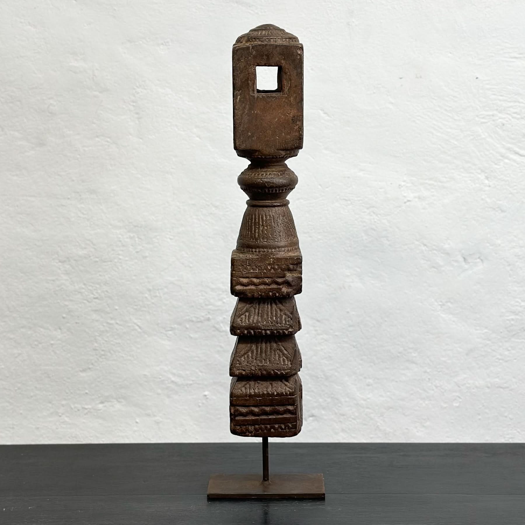 This beautifully handcarved remnant of an Indian chair, bed or table exemplifies the artistic skills of the rural carpenters and their great love of detail. Now it is a standalone artistic statement which would add interest to a curated display of folk art be it on a console table or bookshelves.
