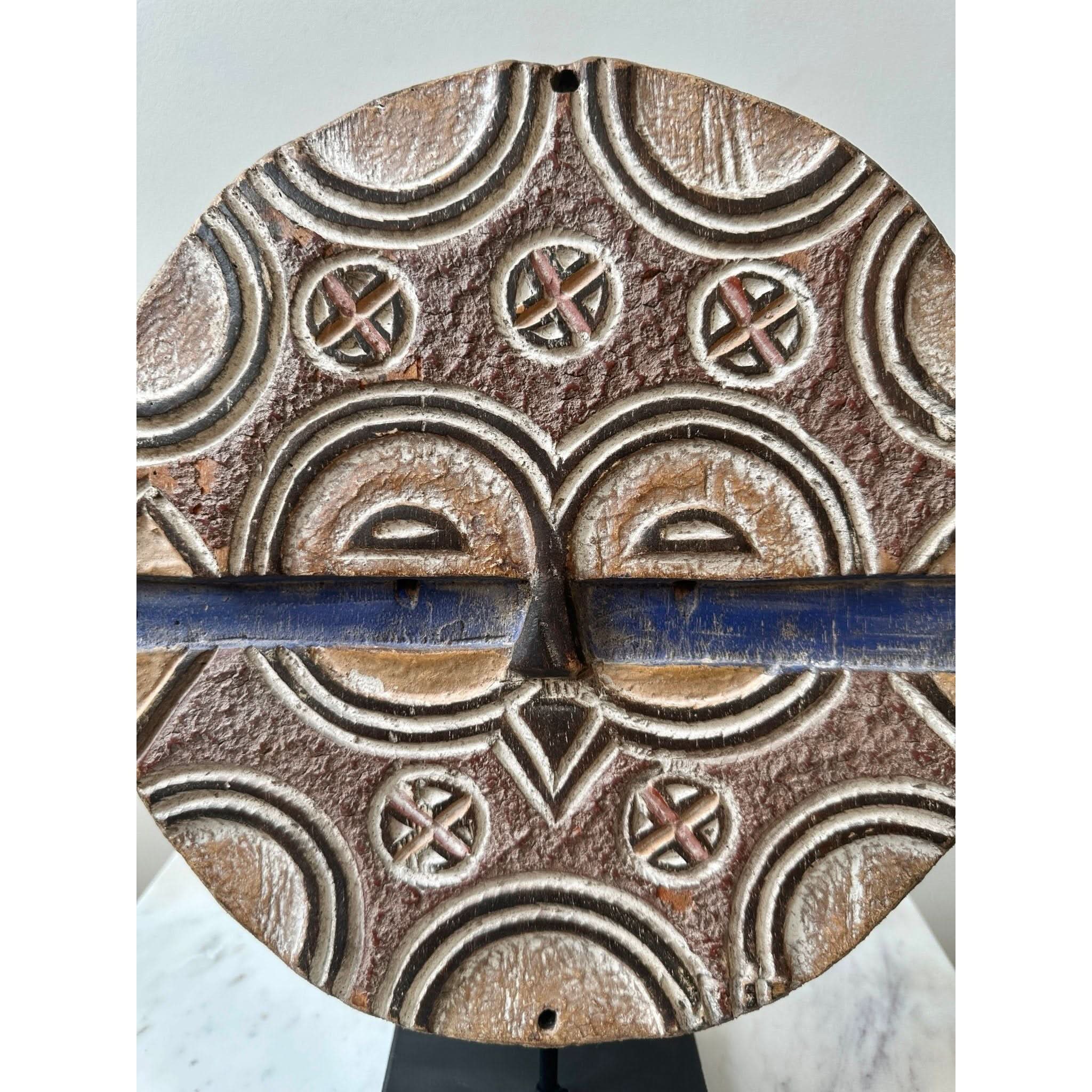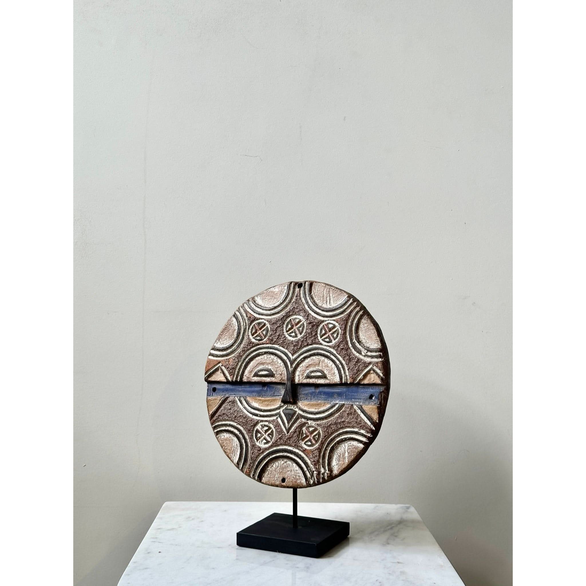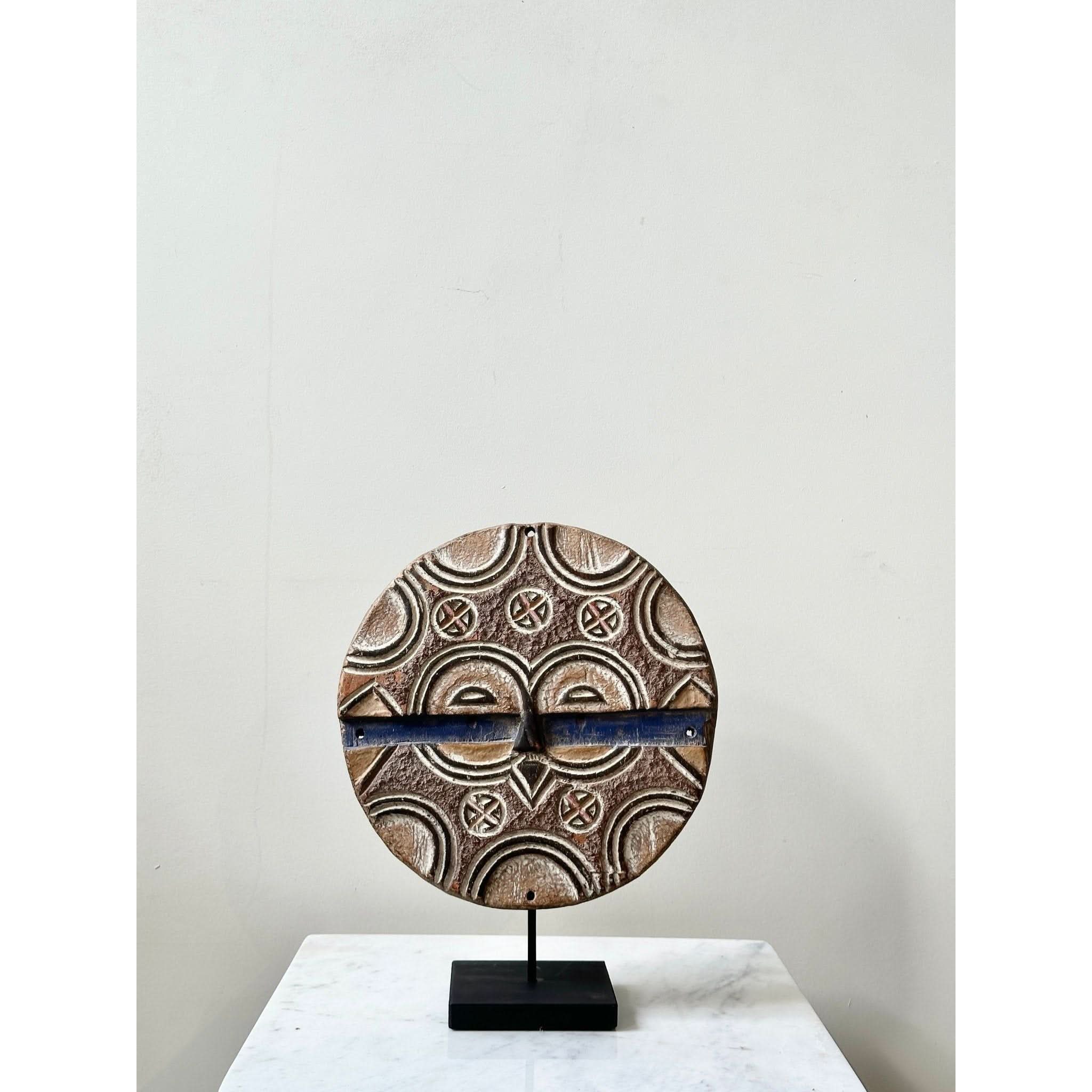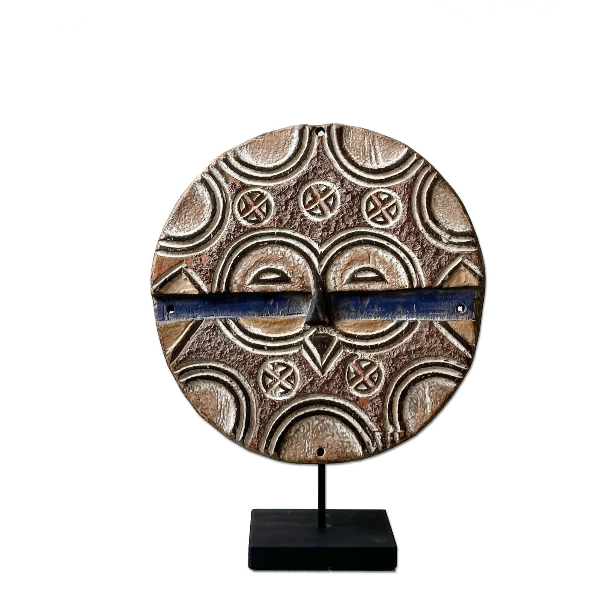 Carved in a circular form representing the sun, its intricate patterns depict sun rays and ancestral spirits. During ceremonies, male performers don the mask in ritual dances, channeling its power for healing, wisdom, and spiritual renewal. A striking piece of African heritage, this mask embodies the Bobo people's deep connection to nature and the divine.