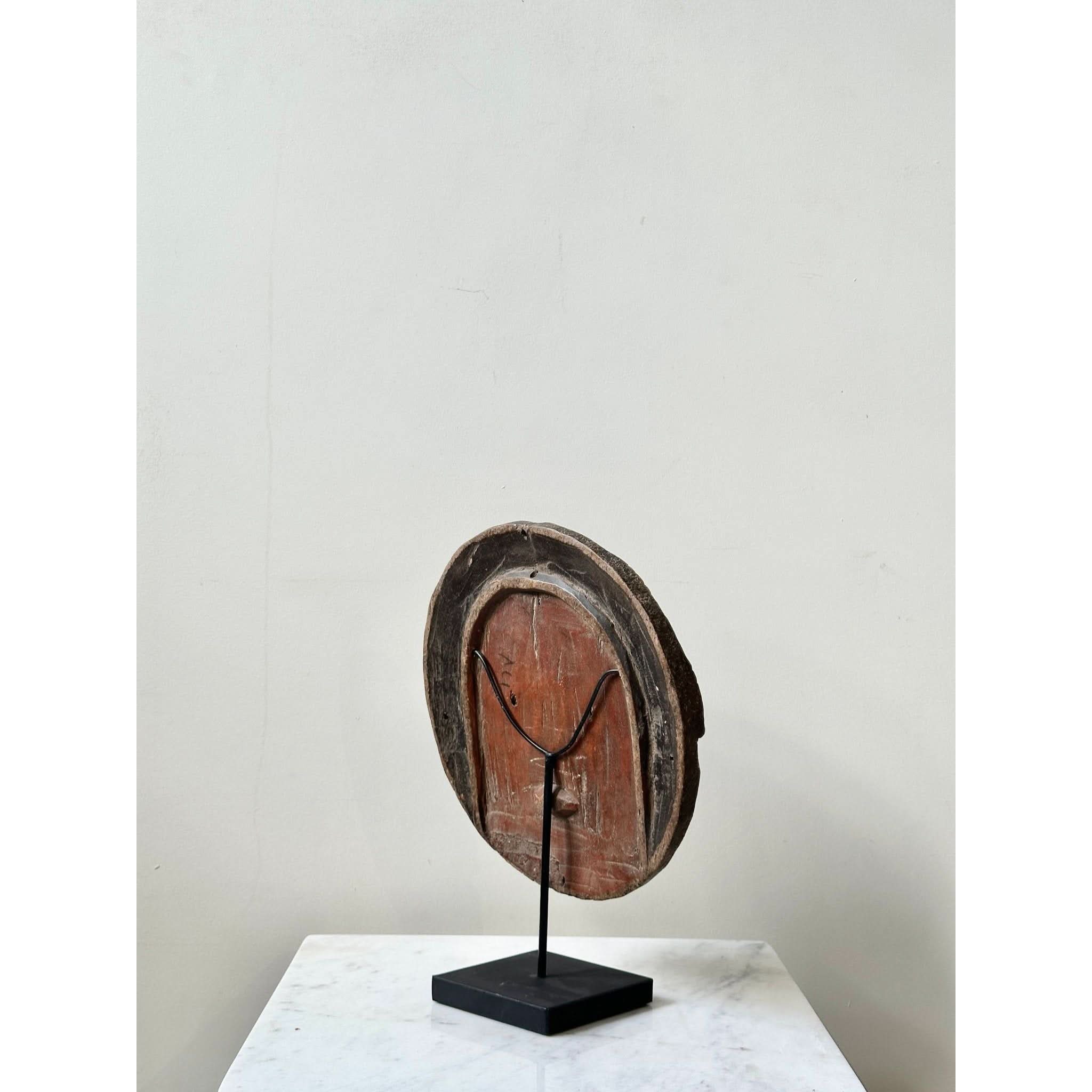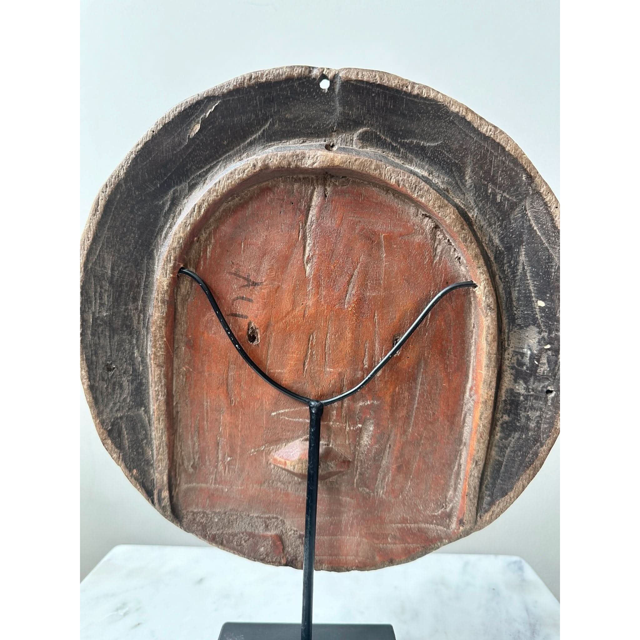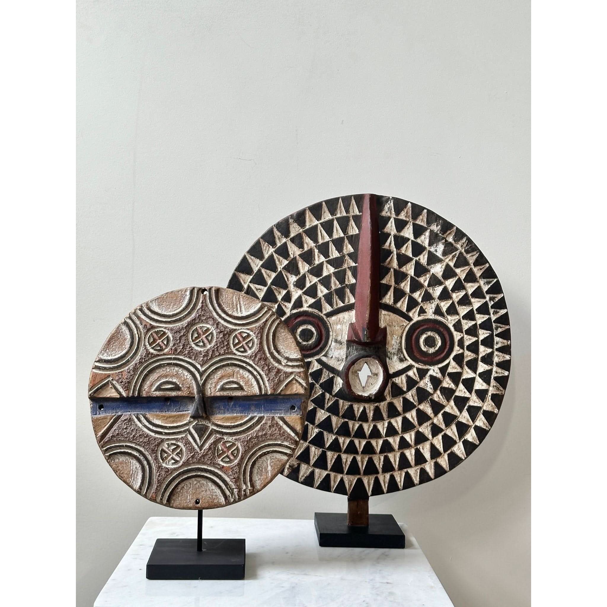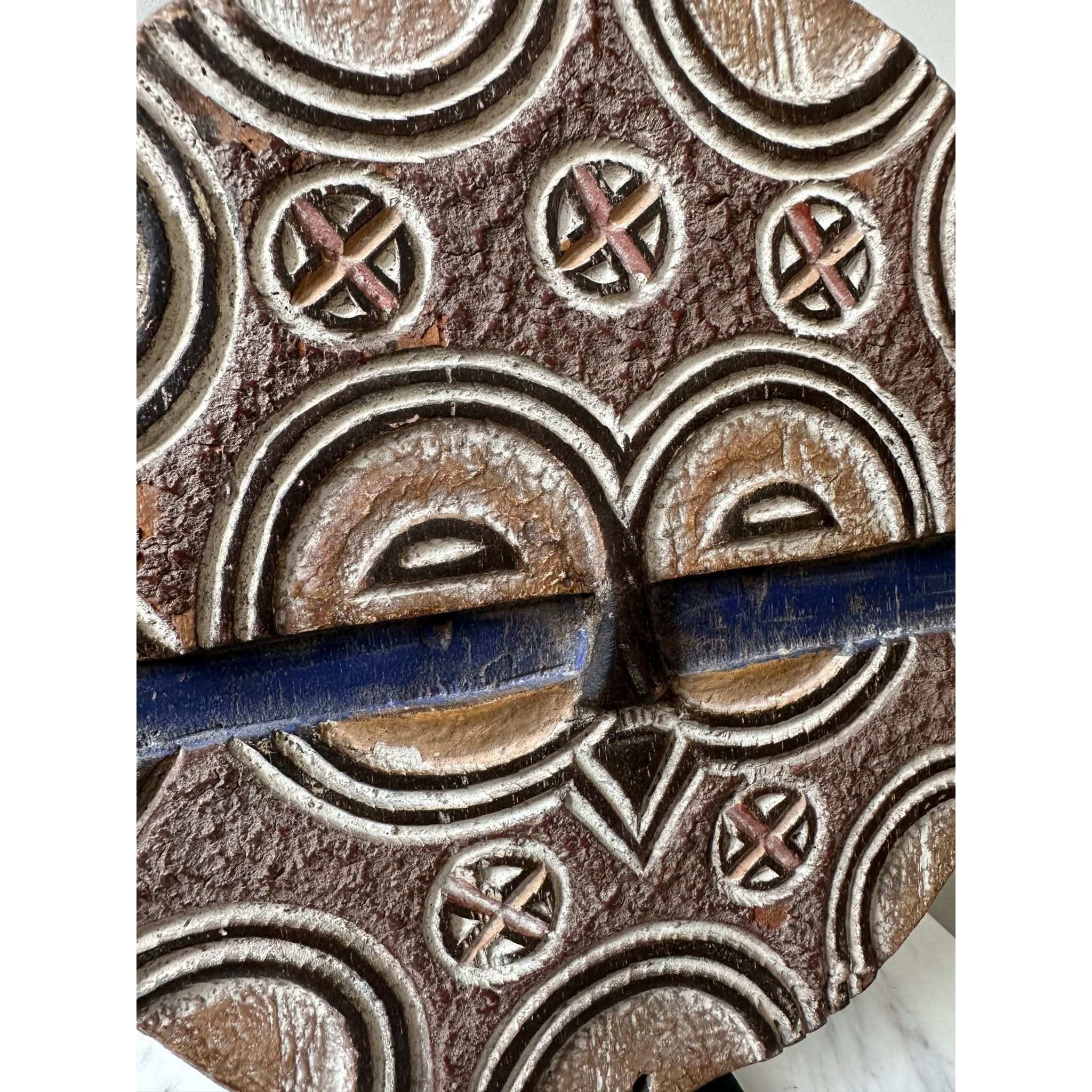 Carved in a circular form representing the sun, its intricate patterns depict sun rays and ancestral spirits. During ceremonies, male performers don the mask in ritual dances, channeling its power for healing, wisdom, and spiritual renewal. A striking piece of African heritage, this mask embodies the Bobo people's deep connection to nature and the divine.
