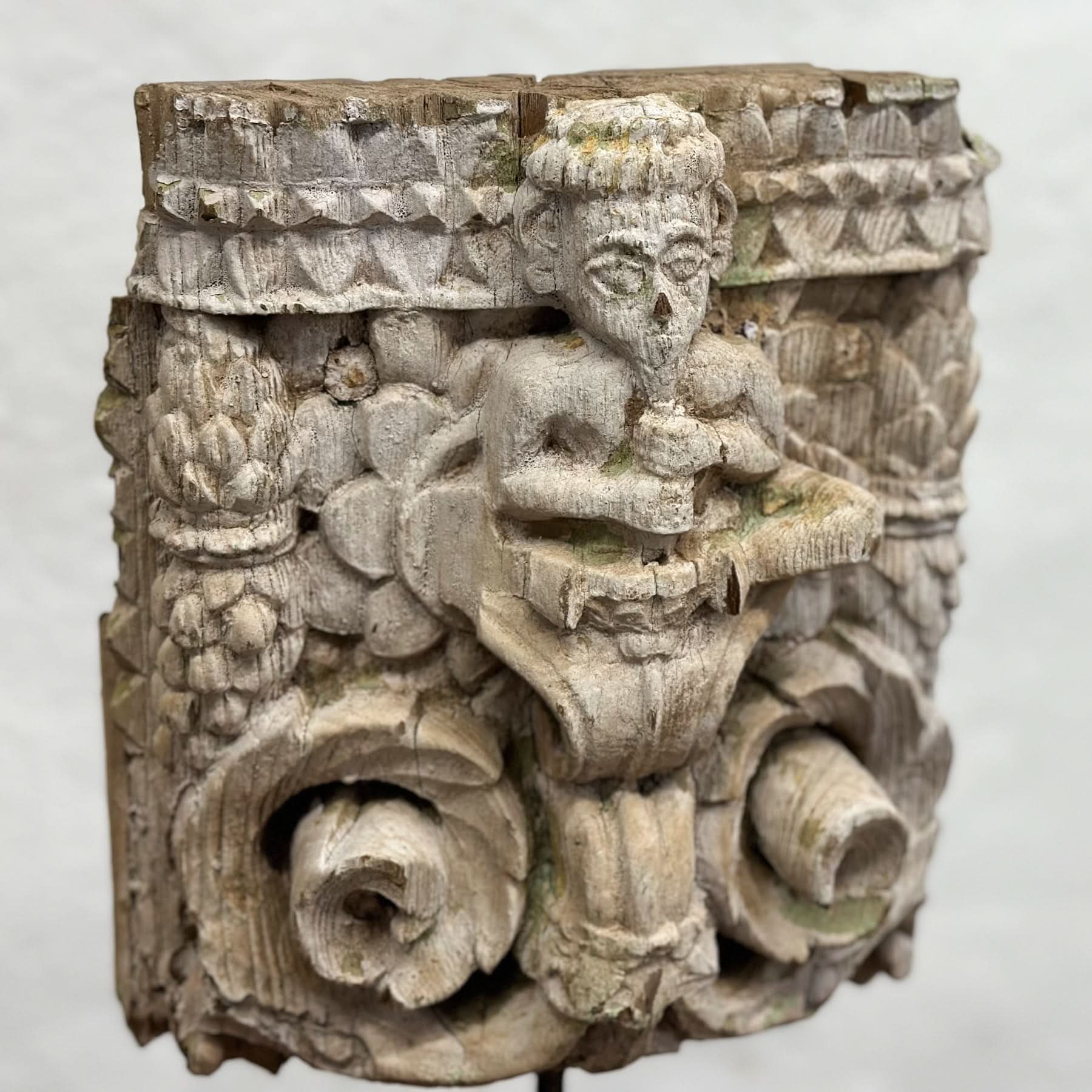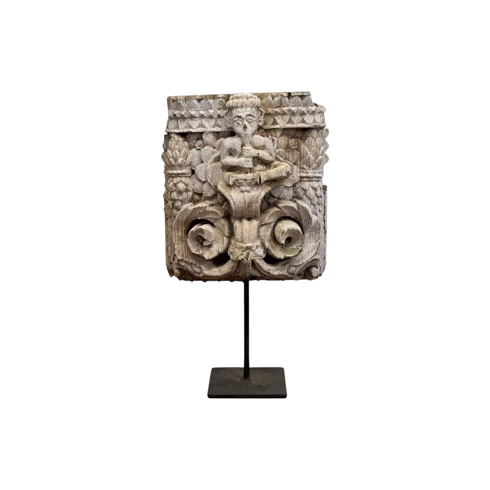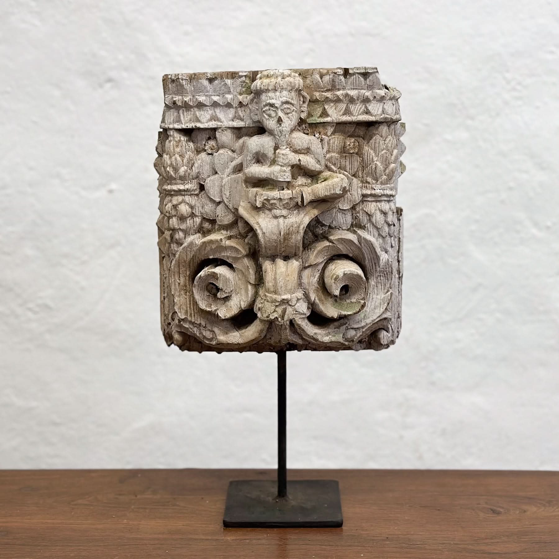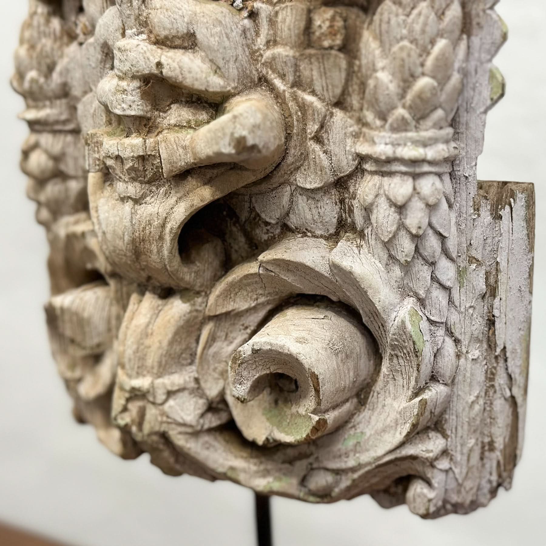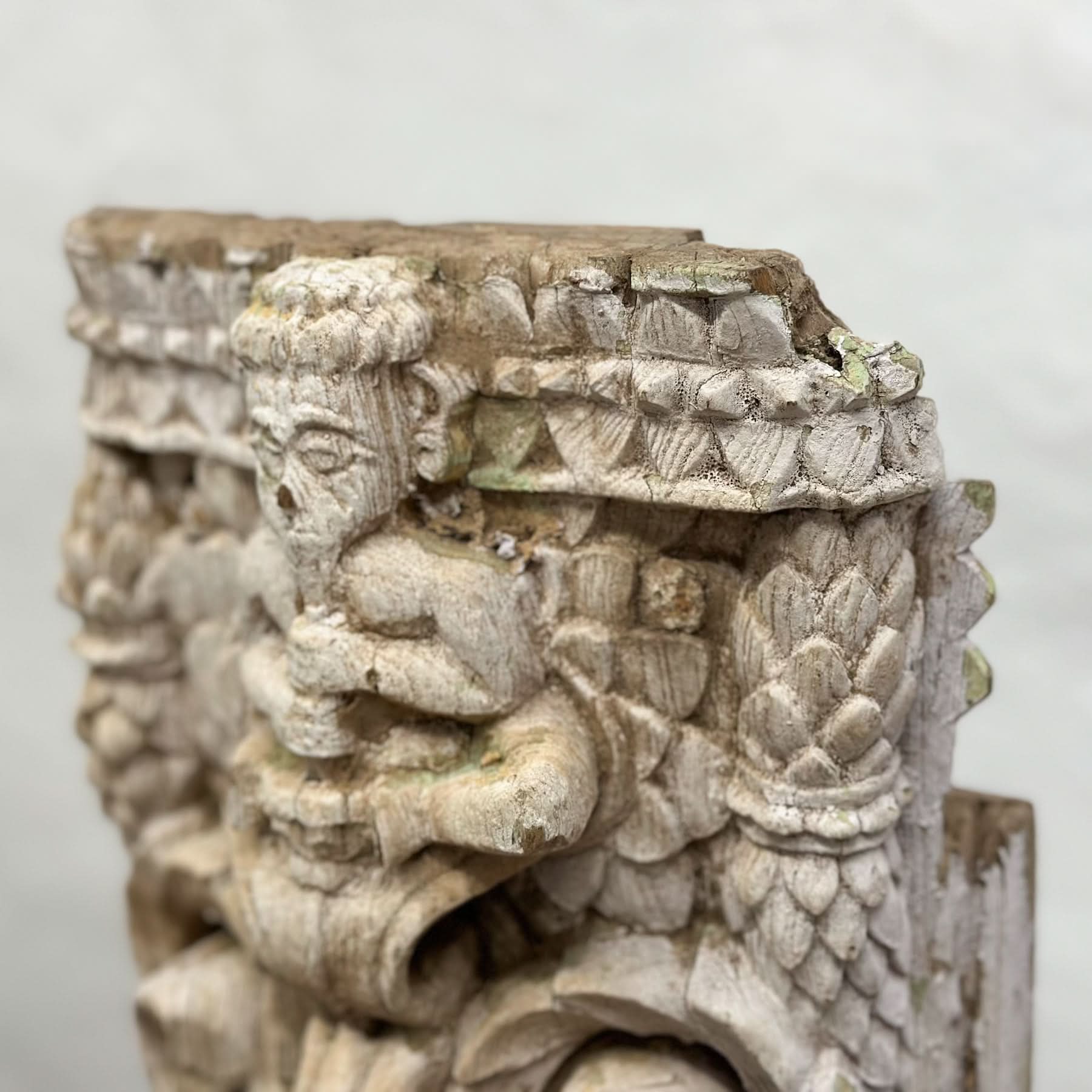 A richly textured and weathered Hindu carving of a god rising on the crest of a wave. this is a timeless piece in a contemporary setting which could stand alone as an artwork or supplement a collection of indigenous Asian art.
