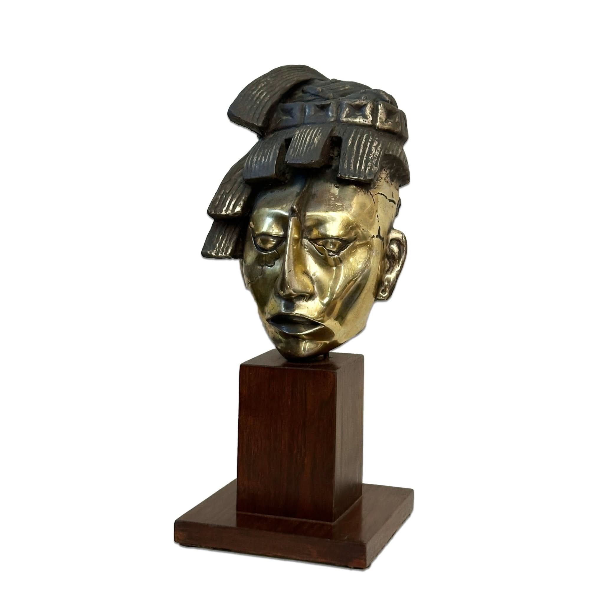 Modernist Slivered Bronze Head of Aztec Ruler Pakal – Circa Late 50s