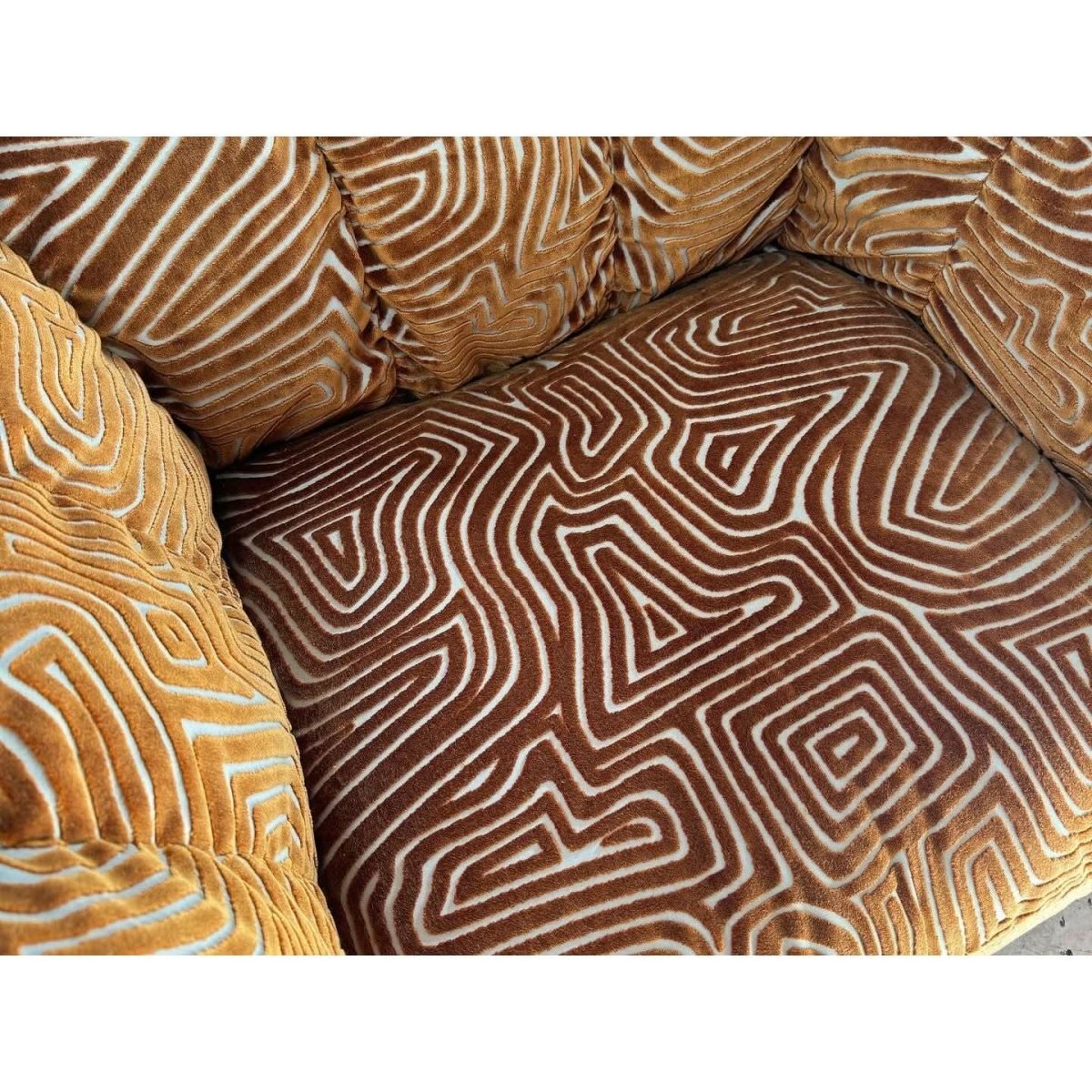In excellent as new condition, very comfortable cushioning and gorgeous high quality fabric