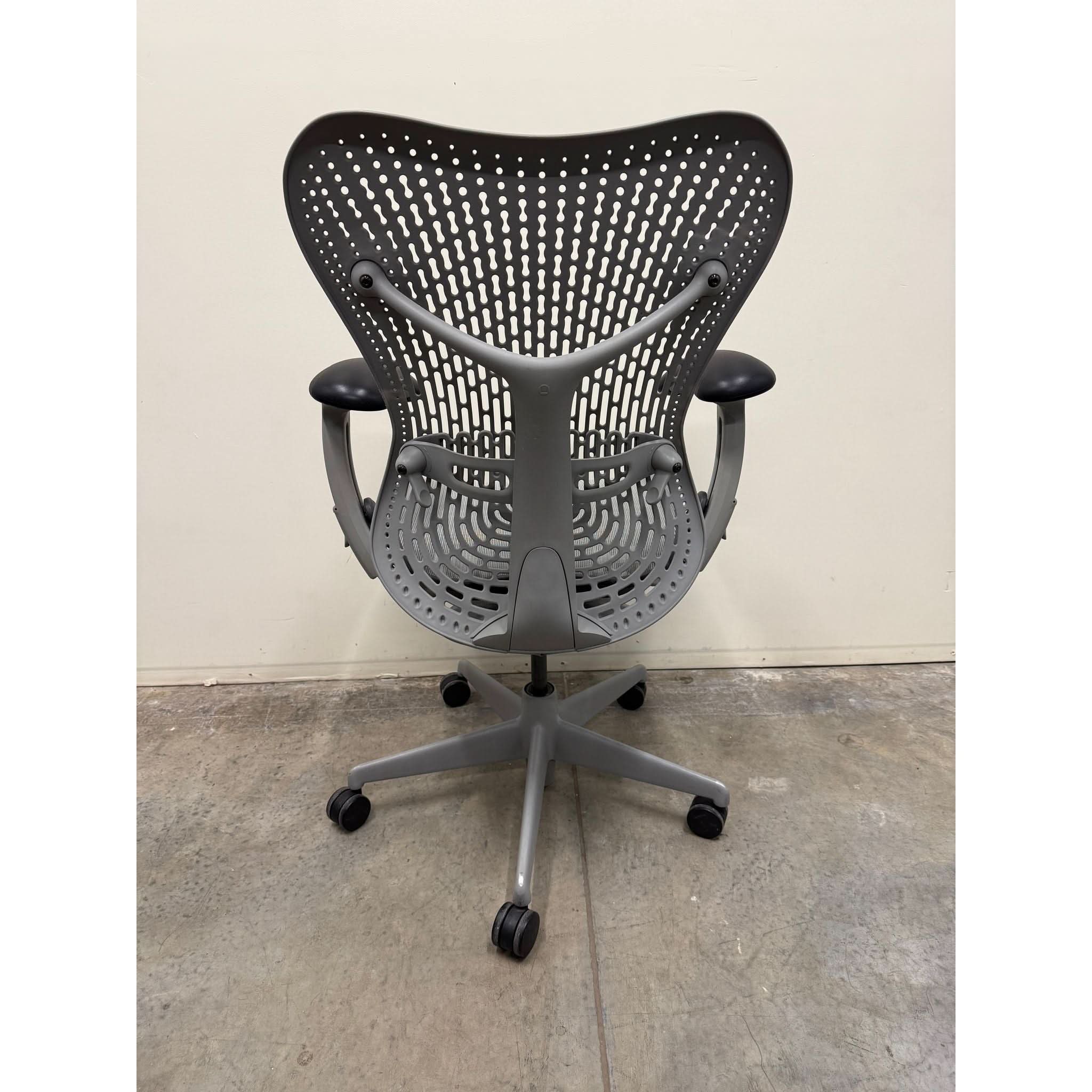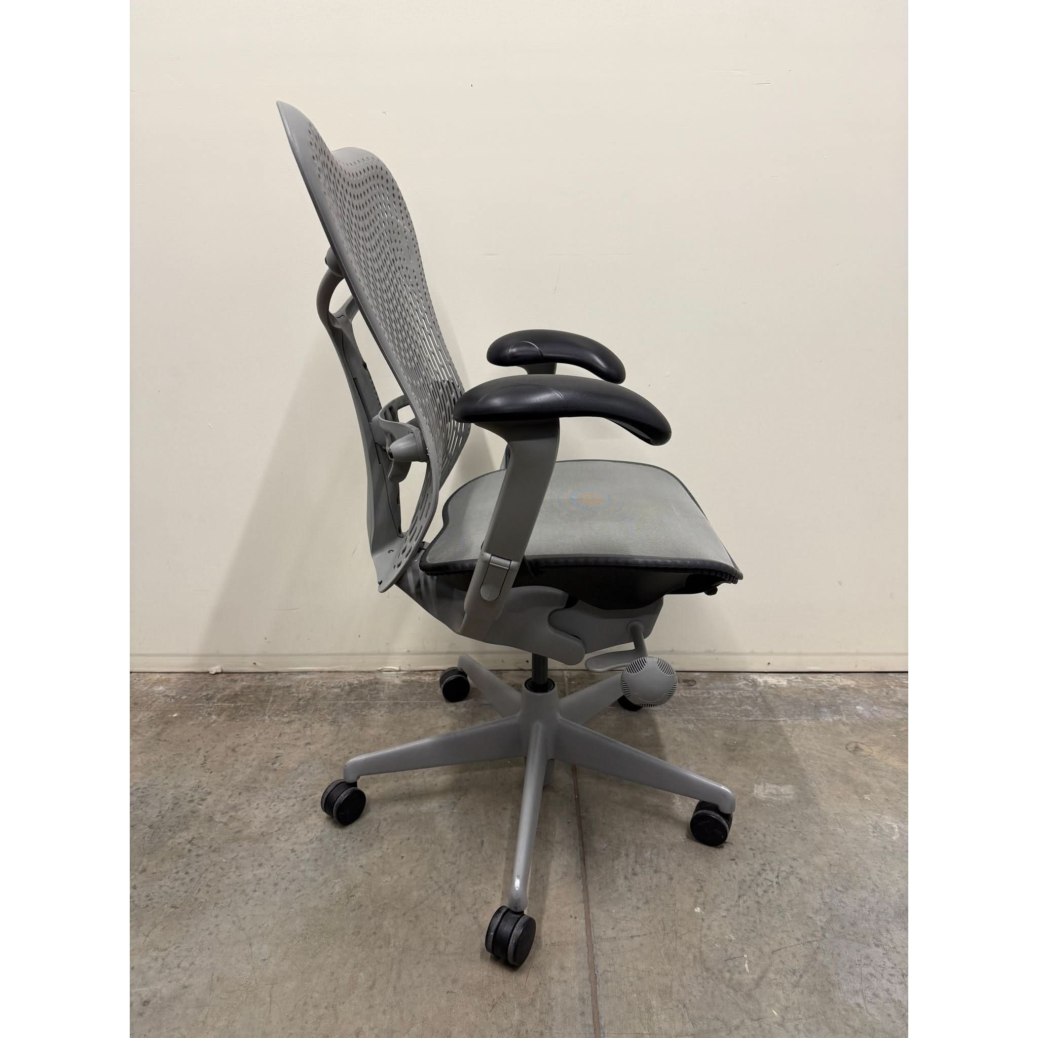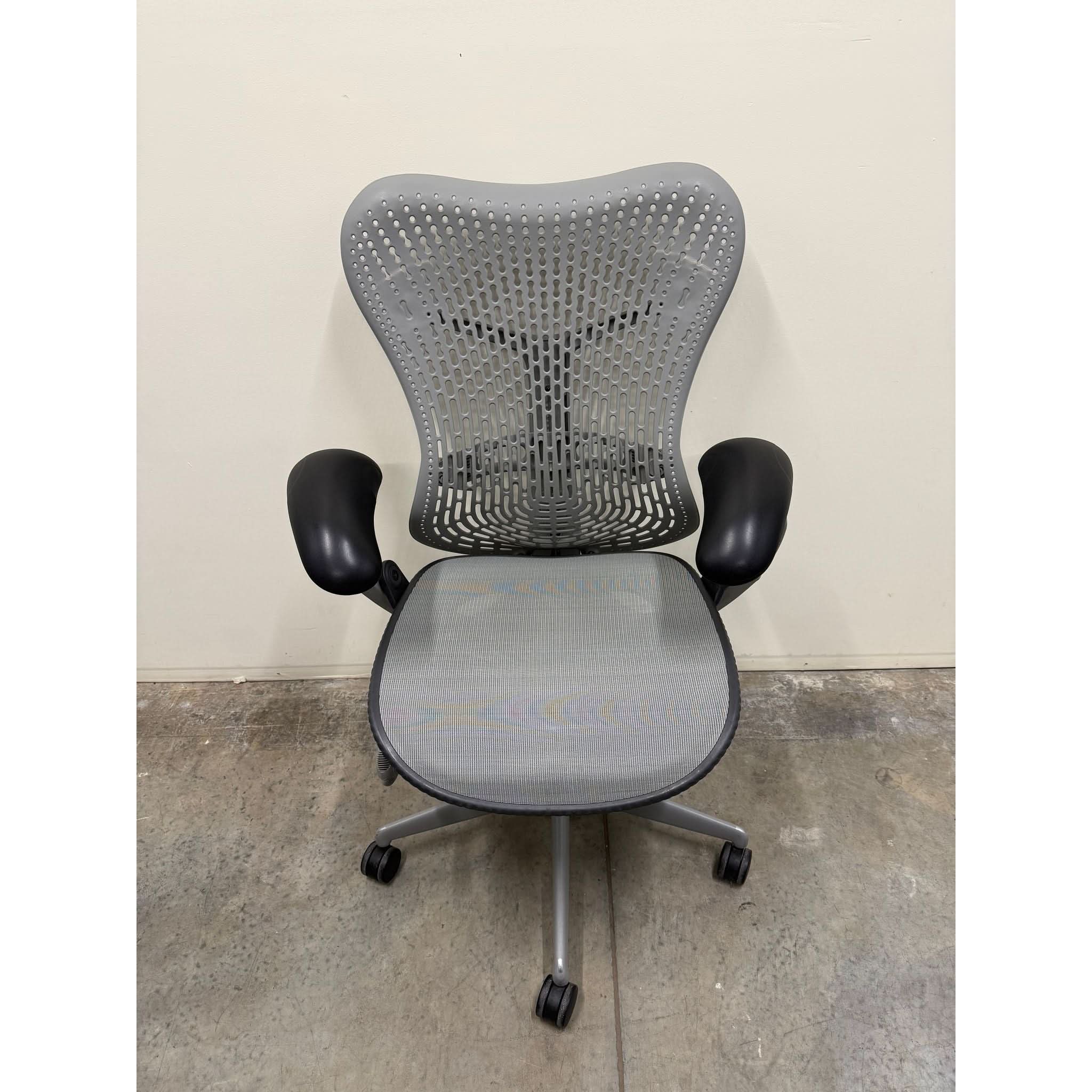 The Herman Miller Mirra 1 is a benchmark in ergonomic task seating, designed to support long hours of focused work. This model features a grey TriFlex polymer back, grey mesh seat, and fully adjustable armrests delivering responsive comfort, breathable support, and a timeless, modern aesthetic.