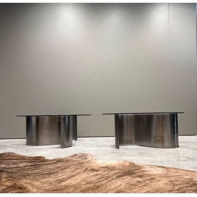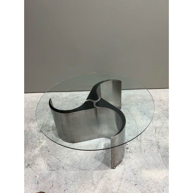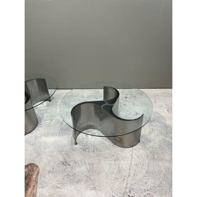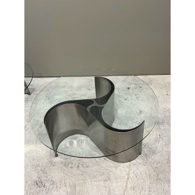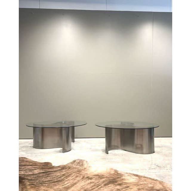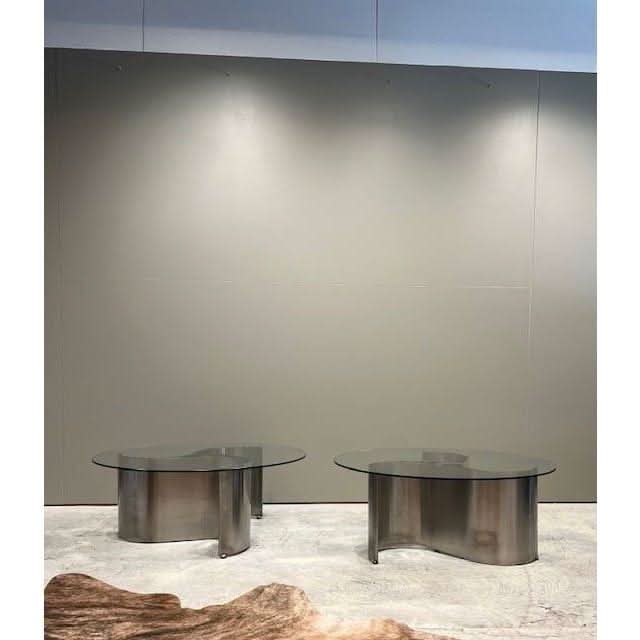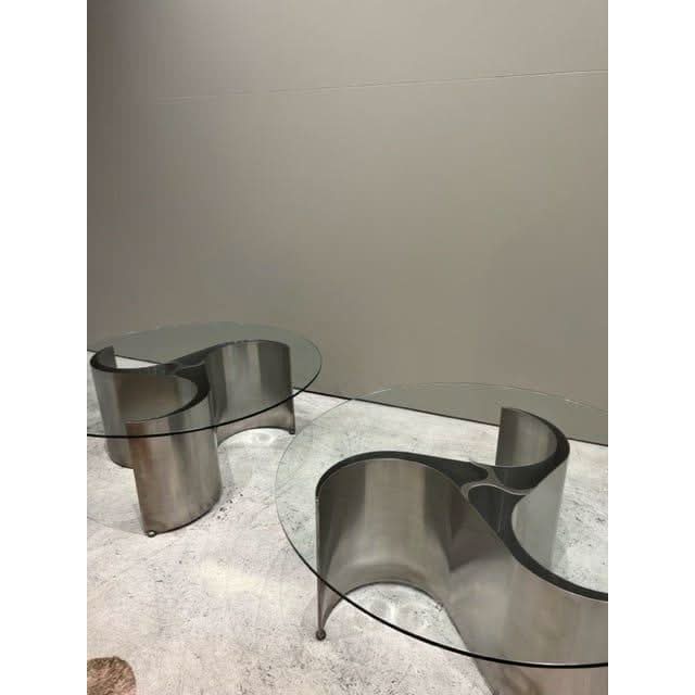 Vintage mid century modern Italian coffee tables with a glass top set on a chrome polished stainless steel base.
