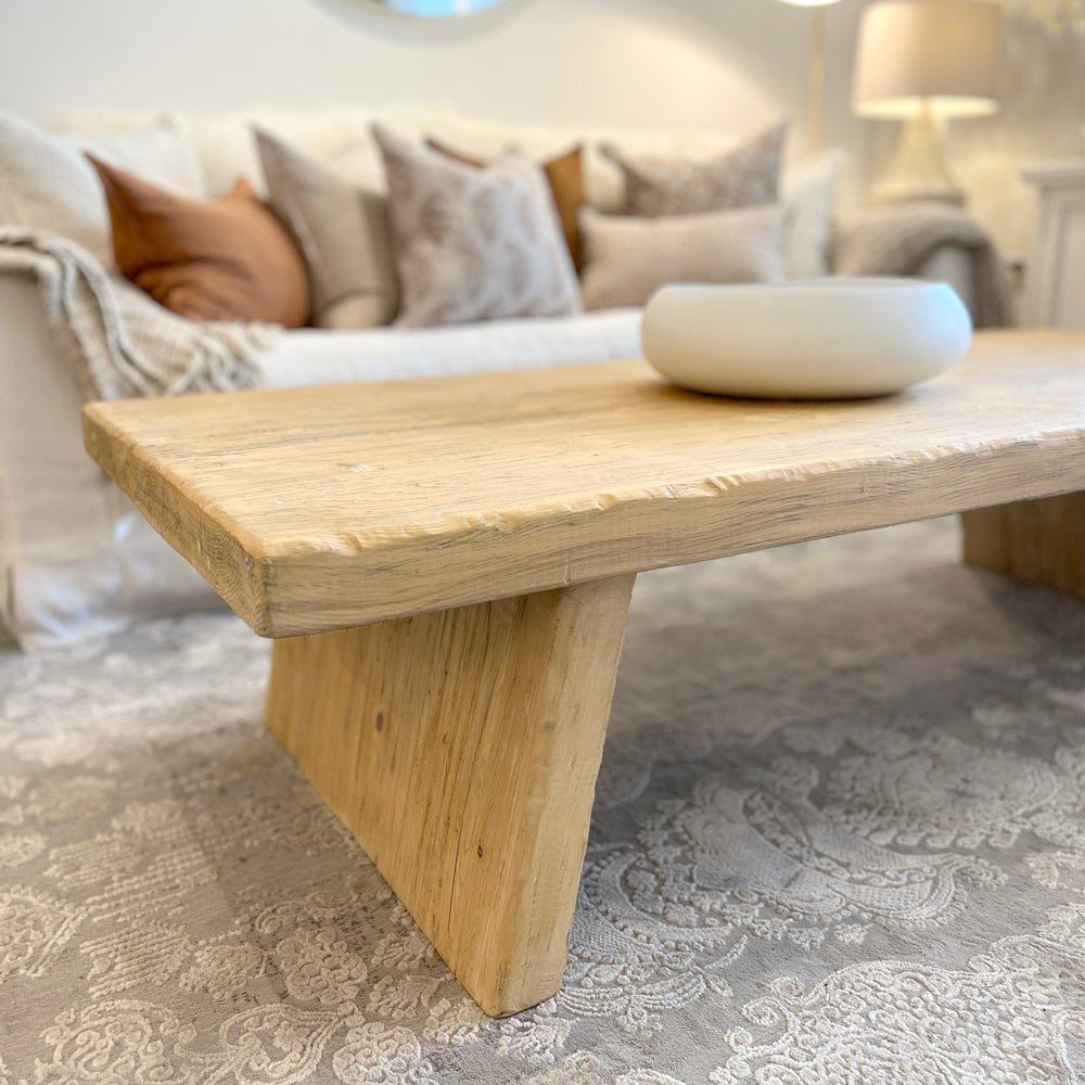 Large Wooden Coffee Table. Add rustic warmth and timeless character to your home with this statement coffee table made from reclaimed elm wood. Each piece tells its own story—featuring natural knots, gnarls, and imperfections that celebrate the unique beauty of recycled wood. Crafted with care, this piece blends seamlessly with a wide range of interior styles—from modern city apartments to cozy country cottages. Style it with your favourite coffee table books, a stack of coasters, a vase, a candle and decorative accessories to make it your own.