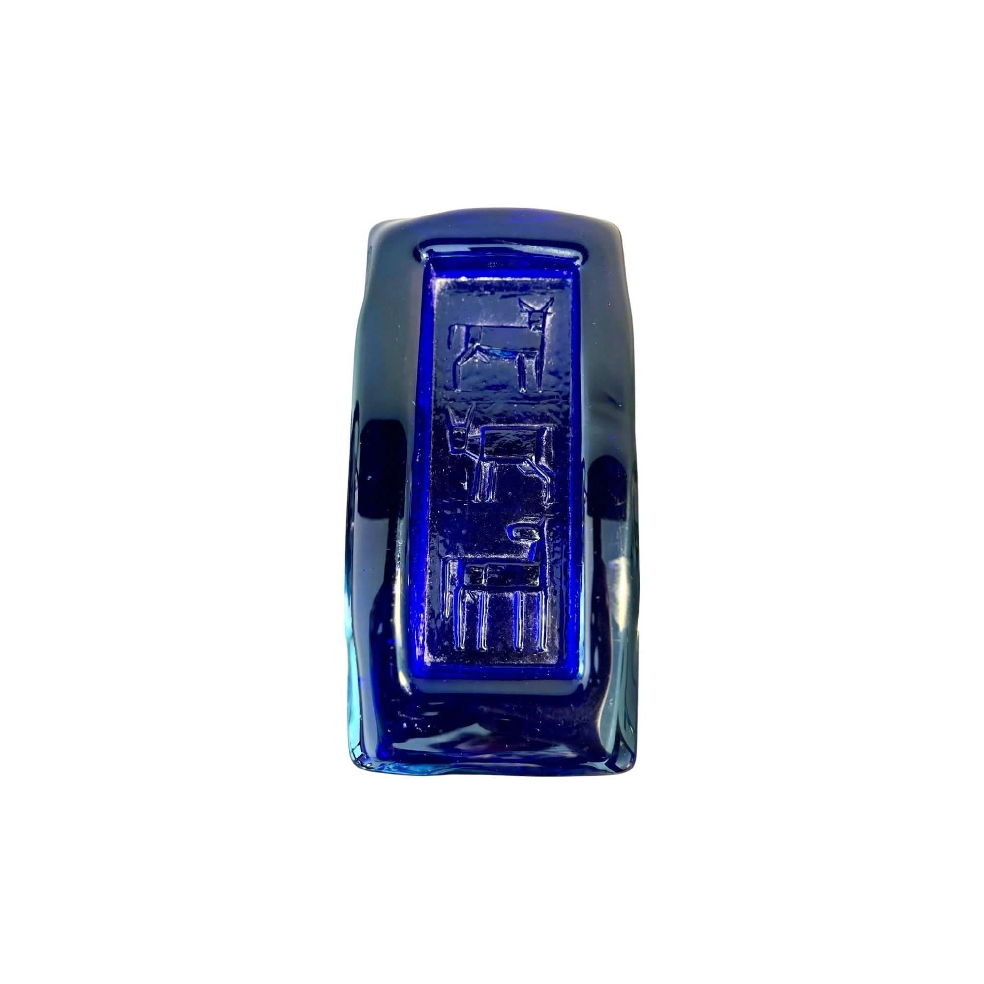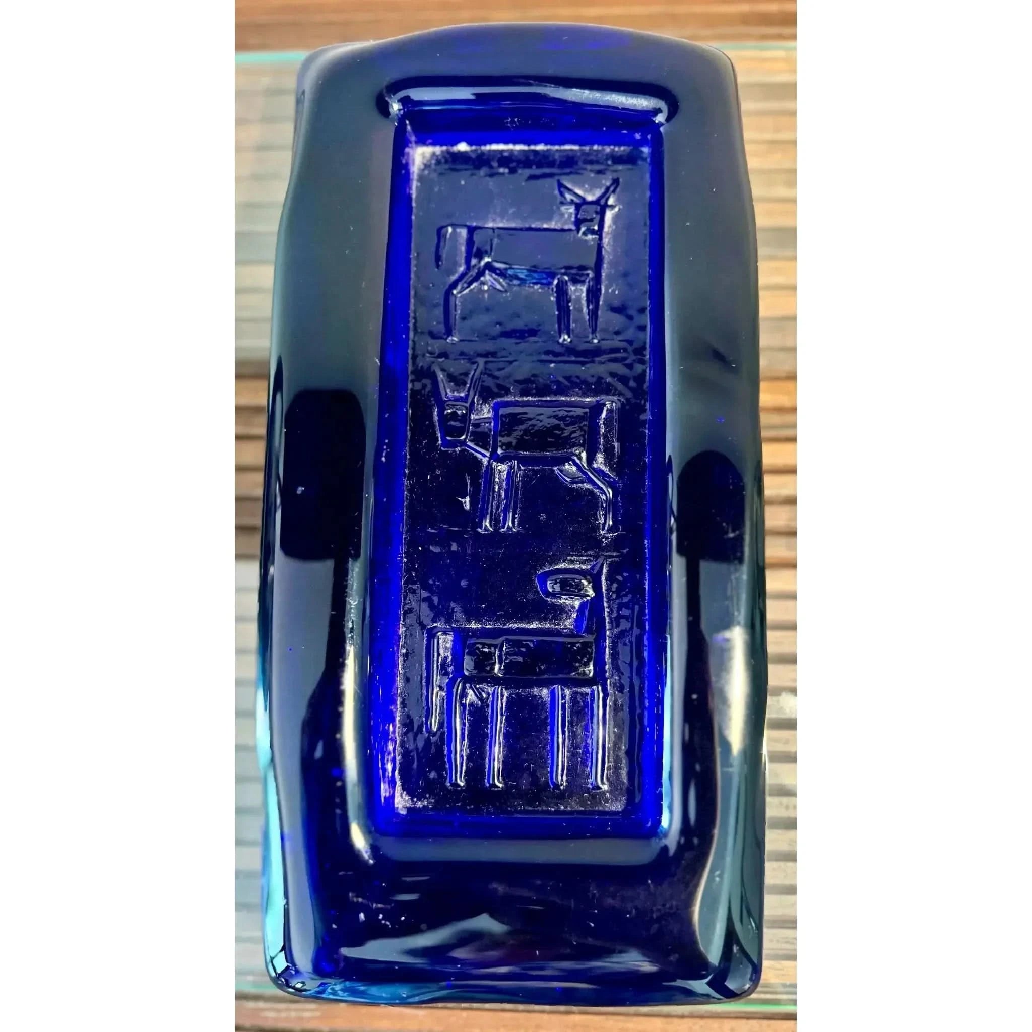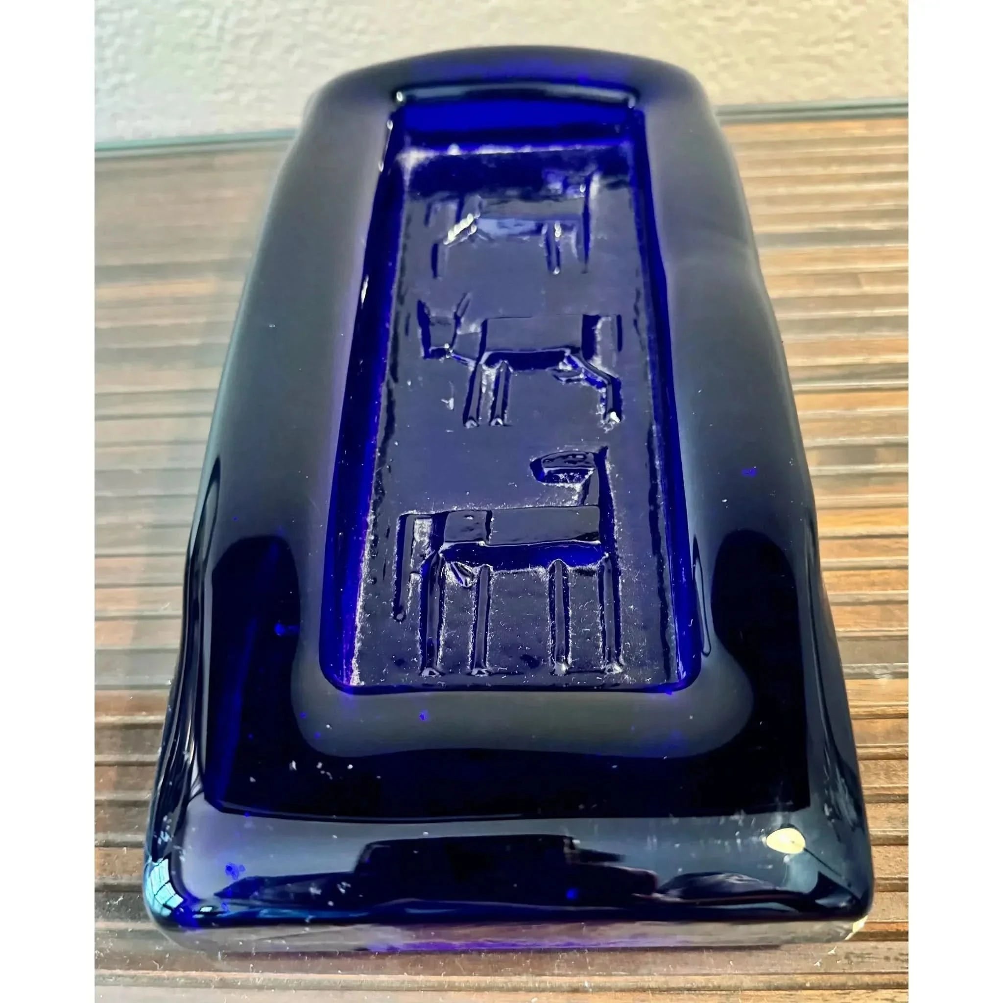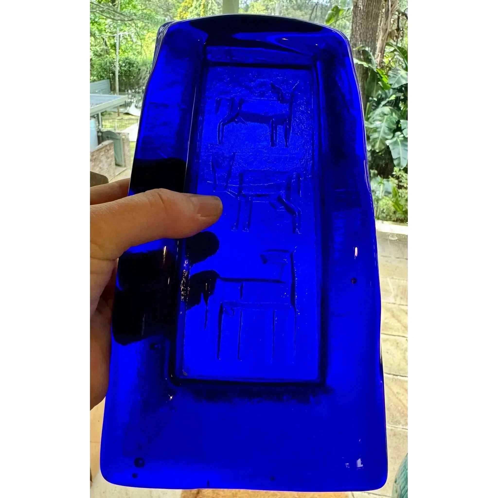 Erik Hoglund large cobalt blue glass dish with 3 stylised farm animals moulded into glass for Boda, Sweden.