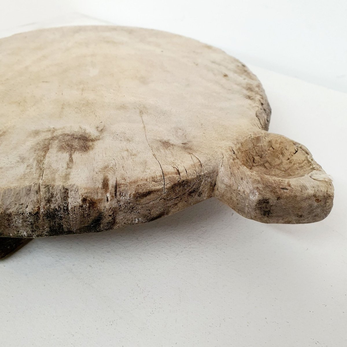 Handcrafted from wood, this vintage chapati board is traditionally used in Indian homes to roll out chapati dough. The chapati, a classic Indian flatbread, is shaped on these wooden boards before cooking.