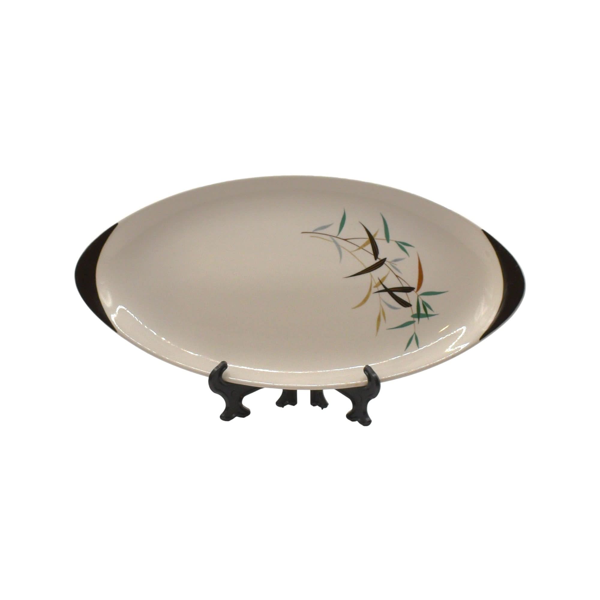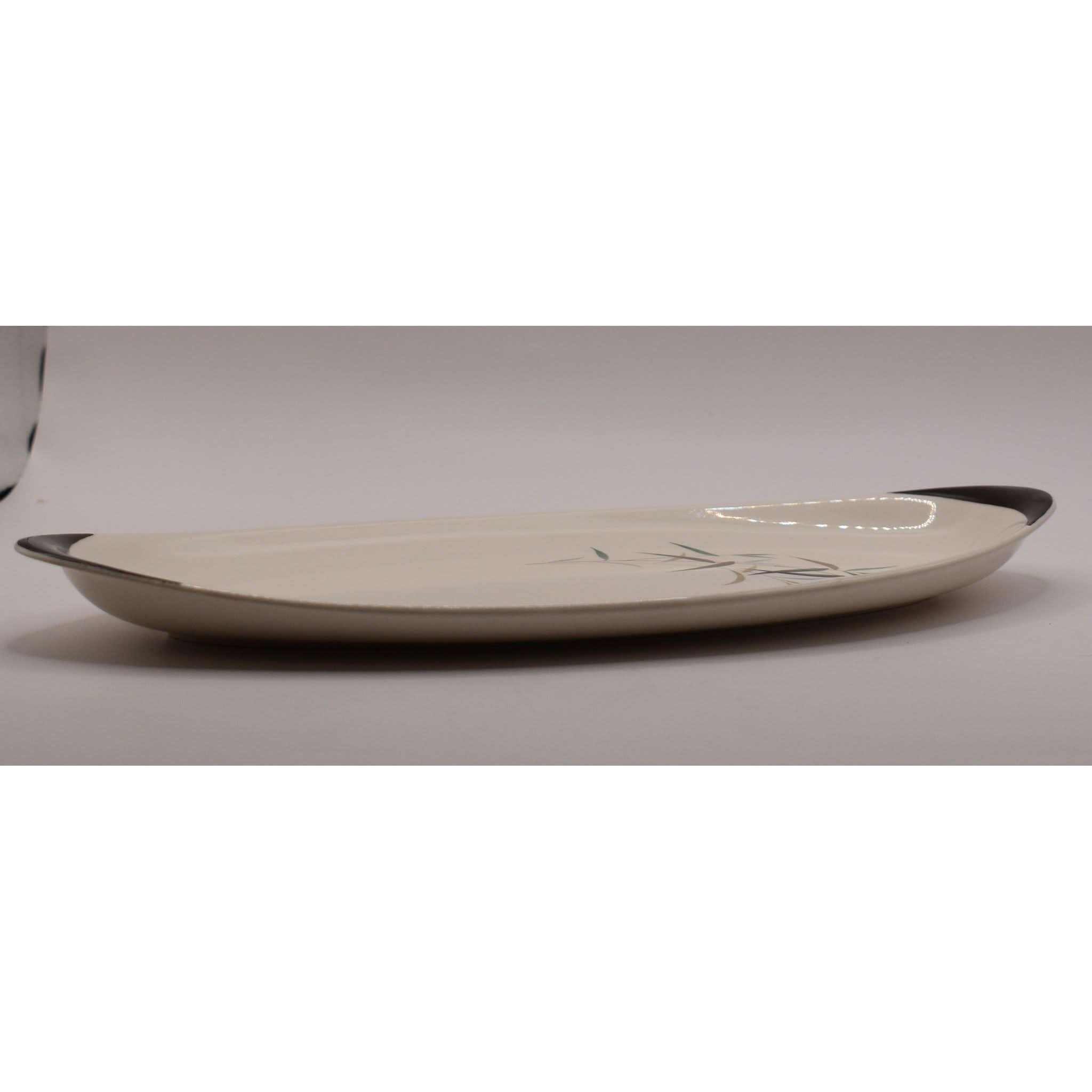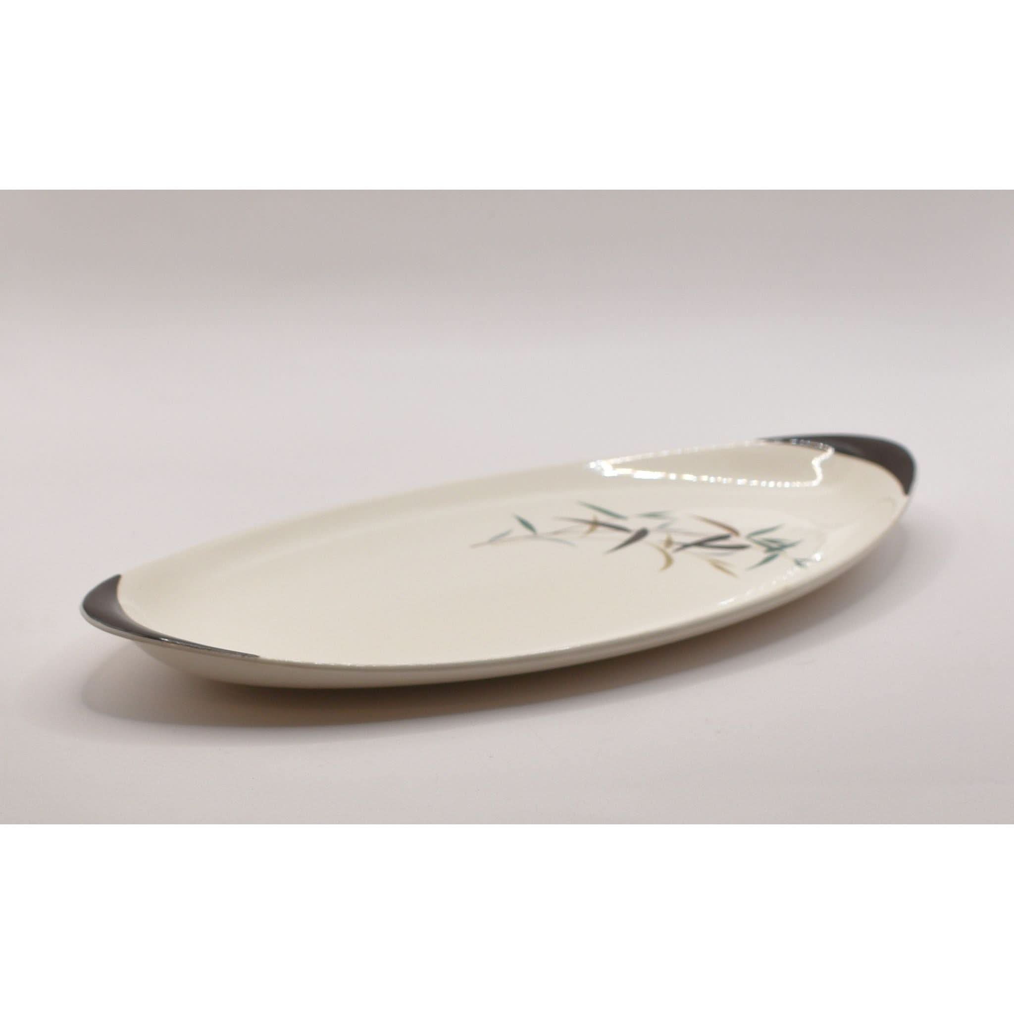 This charming small platter from the mid-20th century brings a touch of vintage elegance to your table. Crafted from smooth white ceramic, it showcases a delicate bamboo motif with leaves and stems in earthy greens, browns, and blacks. Its clean, minimalist design perfectly captures the timeless style of Royal Doulton’s classic tableware. Whether serving appetizers or displaying treats, this platter adds a playful yet sophisticated flair to any dining setting, making every meal feel a little more special. A delightful piece for collectors and everyday use alike!