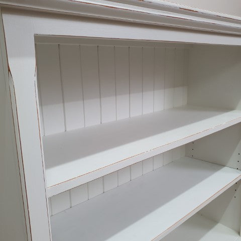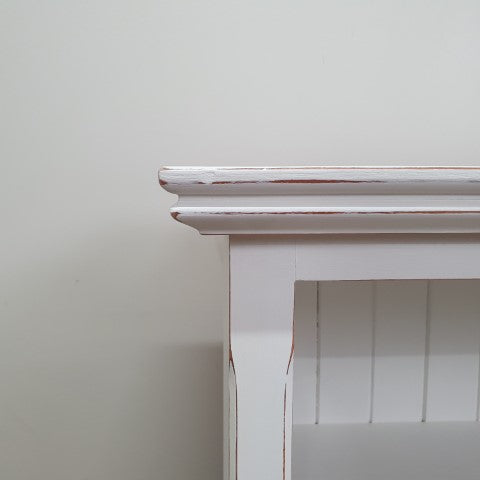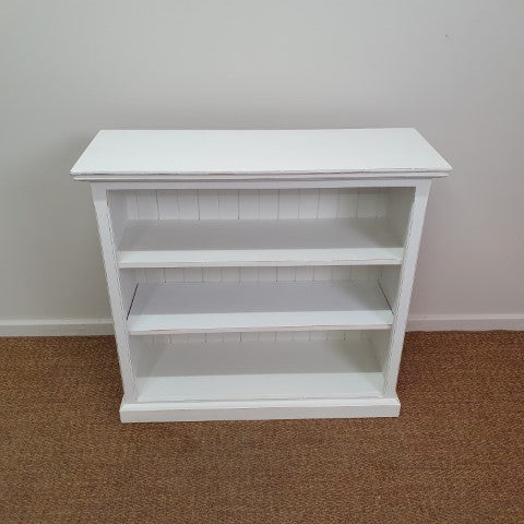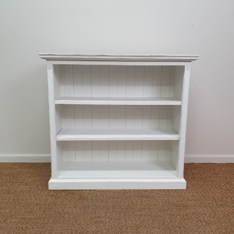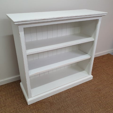 This low bookcase has been painted by Daniel in Pure White Annie Sloan Chalk Paint, featuring gently distressed edges for subtle character. Standing 90.5cm high, their simple design and clean lines make them a versatile decorative piece for living areas, bedrooms, or hallways, blending effortlessly with both vintage and contemporary interiors.