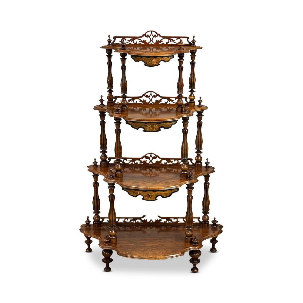 Introducing an intricate Victorian four tier what-not crafted circa 1870.