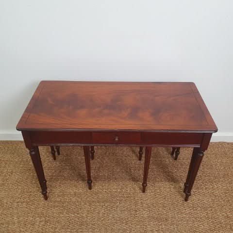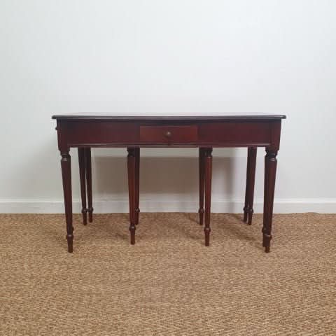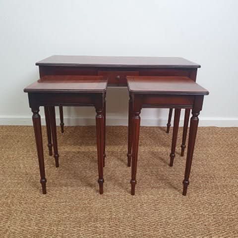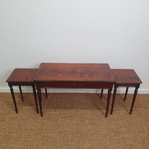 This antique set of 3 nesting side tables features an elegant design with two pull-out tables that slide neatly from the sides and a small central drawer for added detail and storage. A versatile and refined piece for any interior.