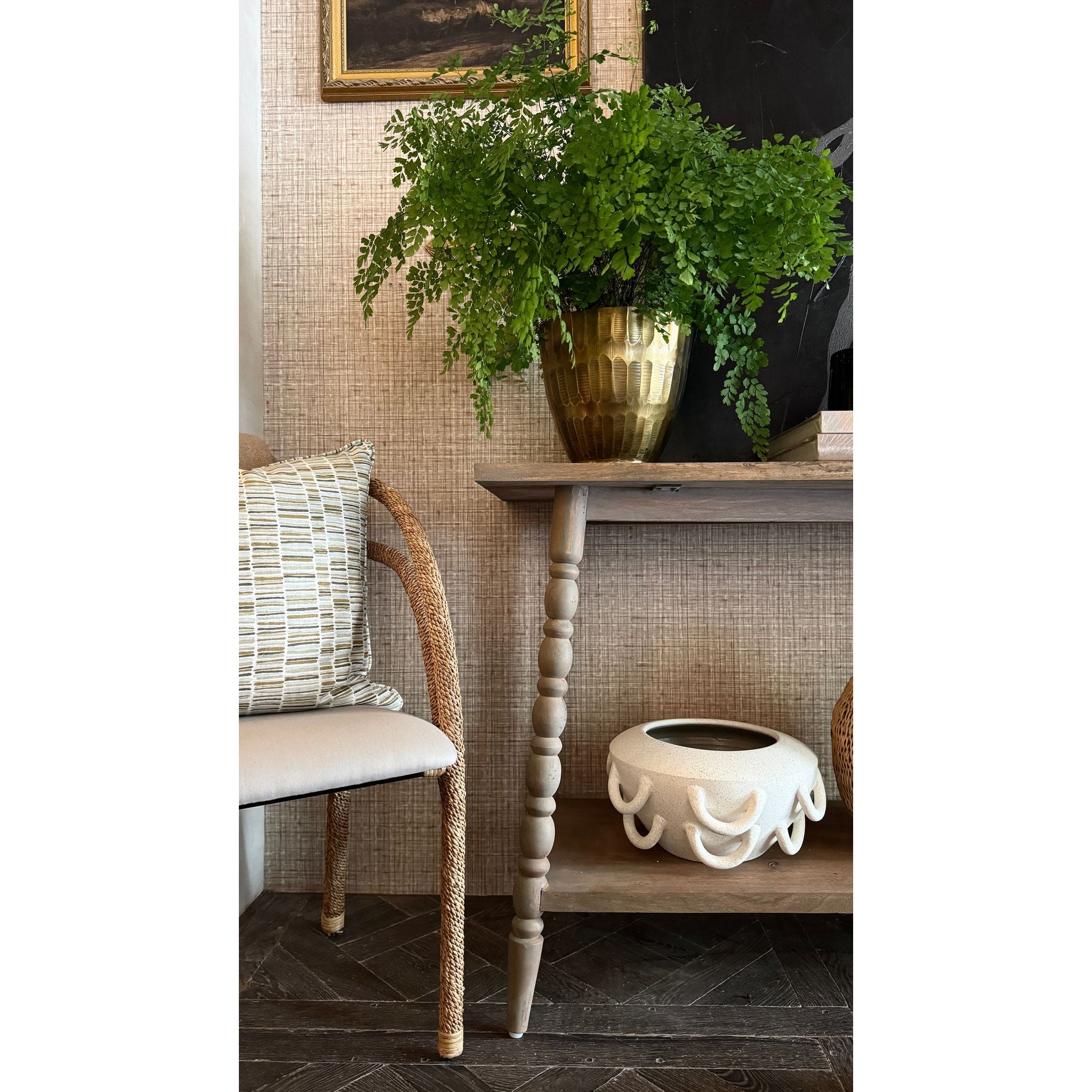 Made from solid Mango wood with a light grey wash, our Bobbin Console showcases the ornate 17th century decorative technique in a new playful contemporary way. Simple, elegant and timeless, a piece to pair effortlessly with other styles.