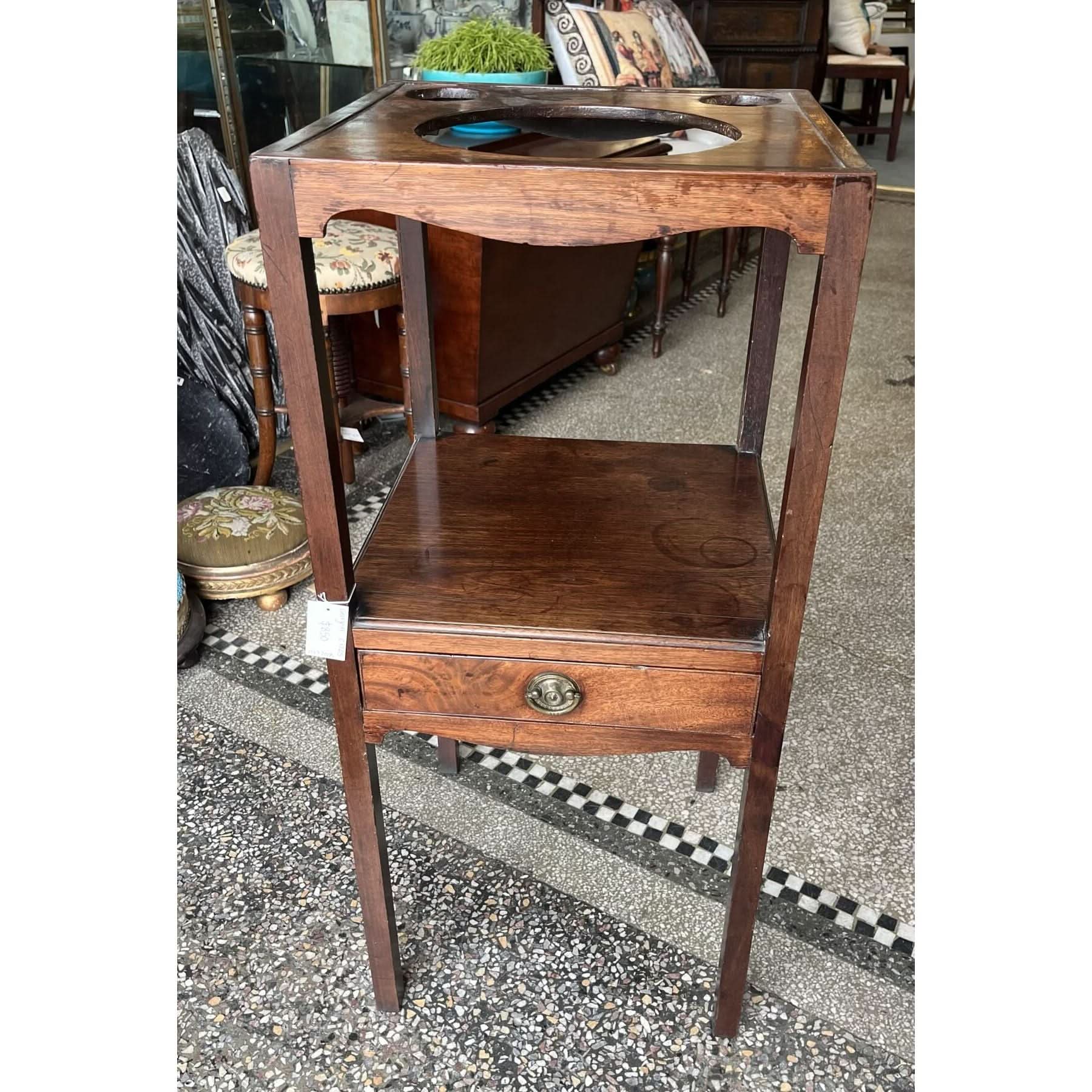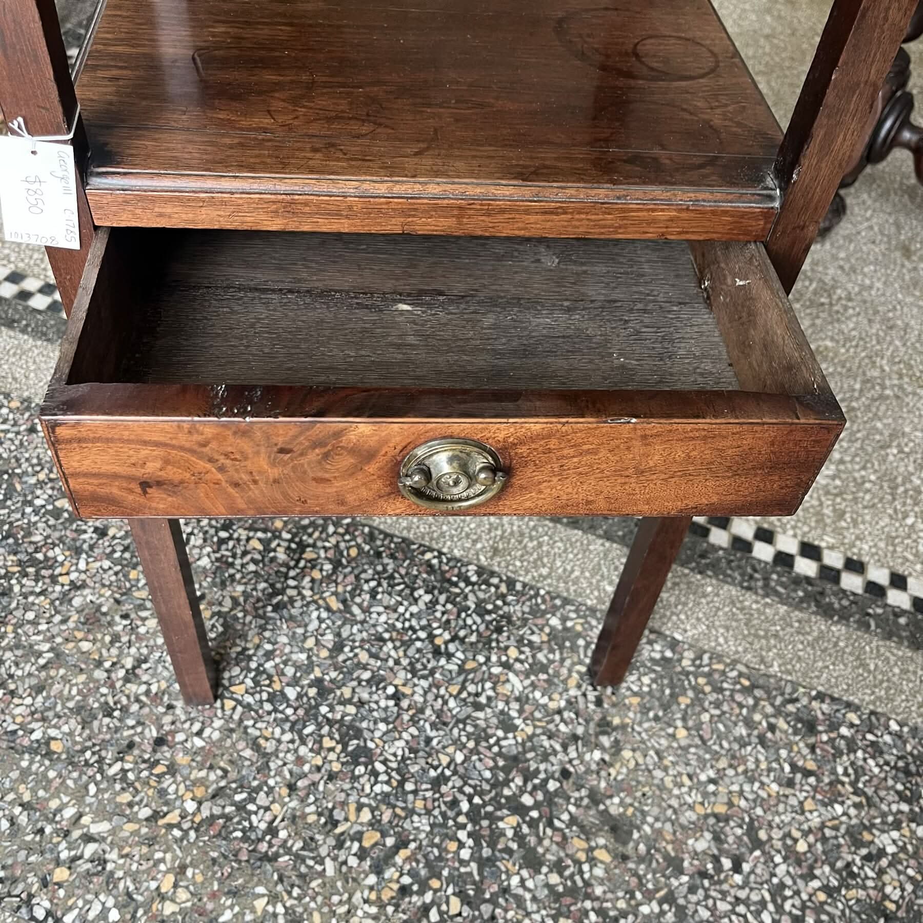 George III mahogany washstand, with open top for basin, shelf & drawer below.