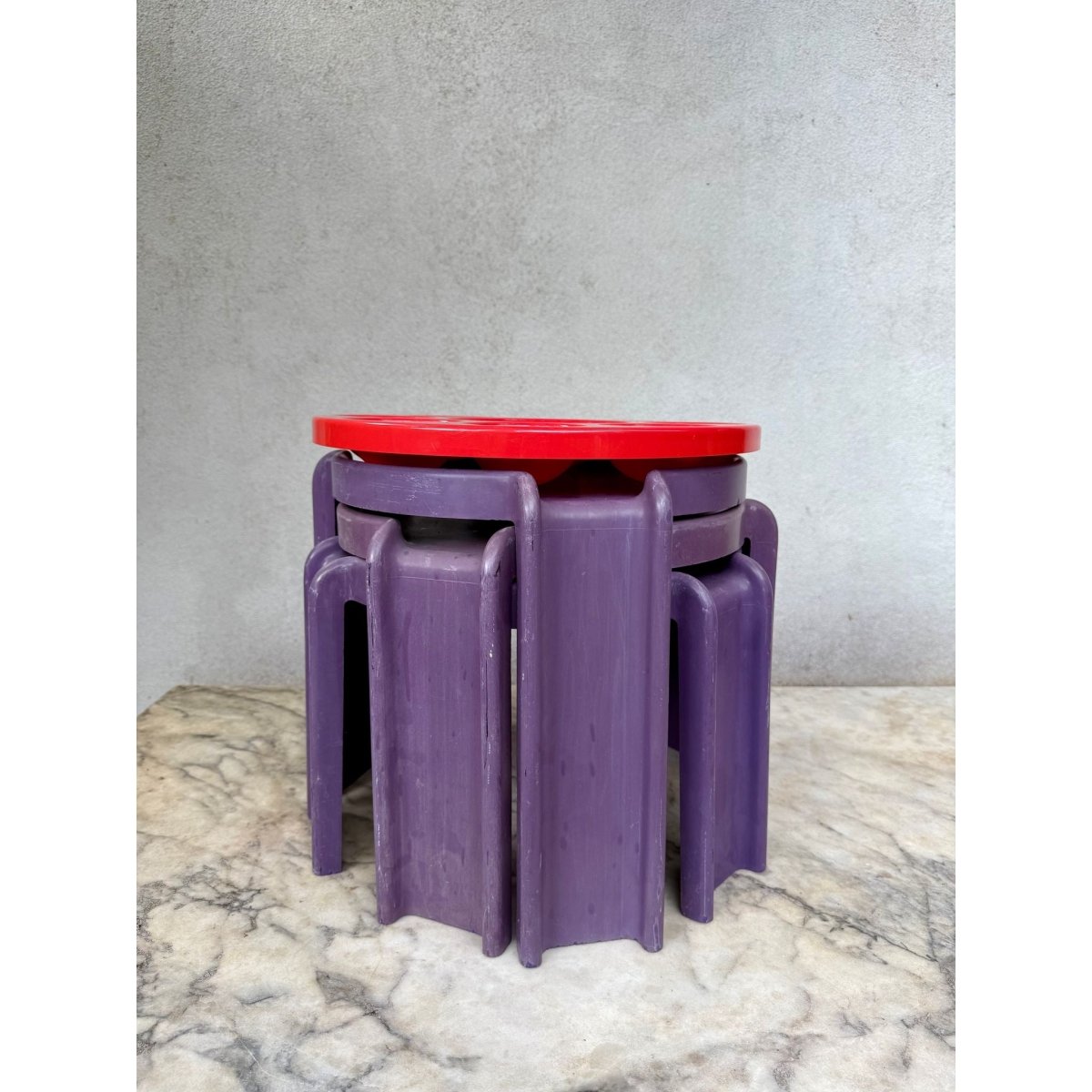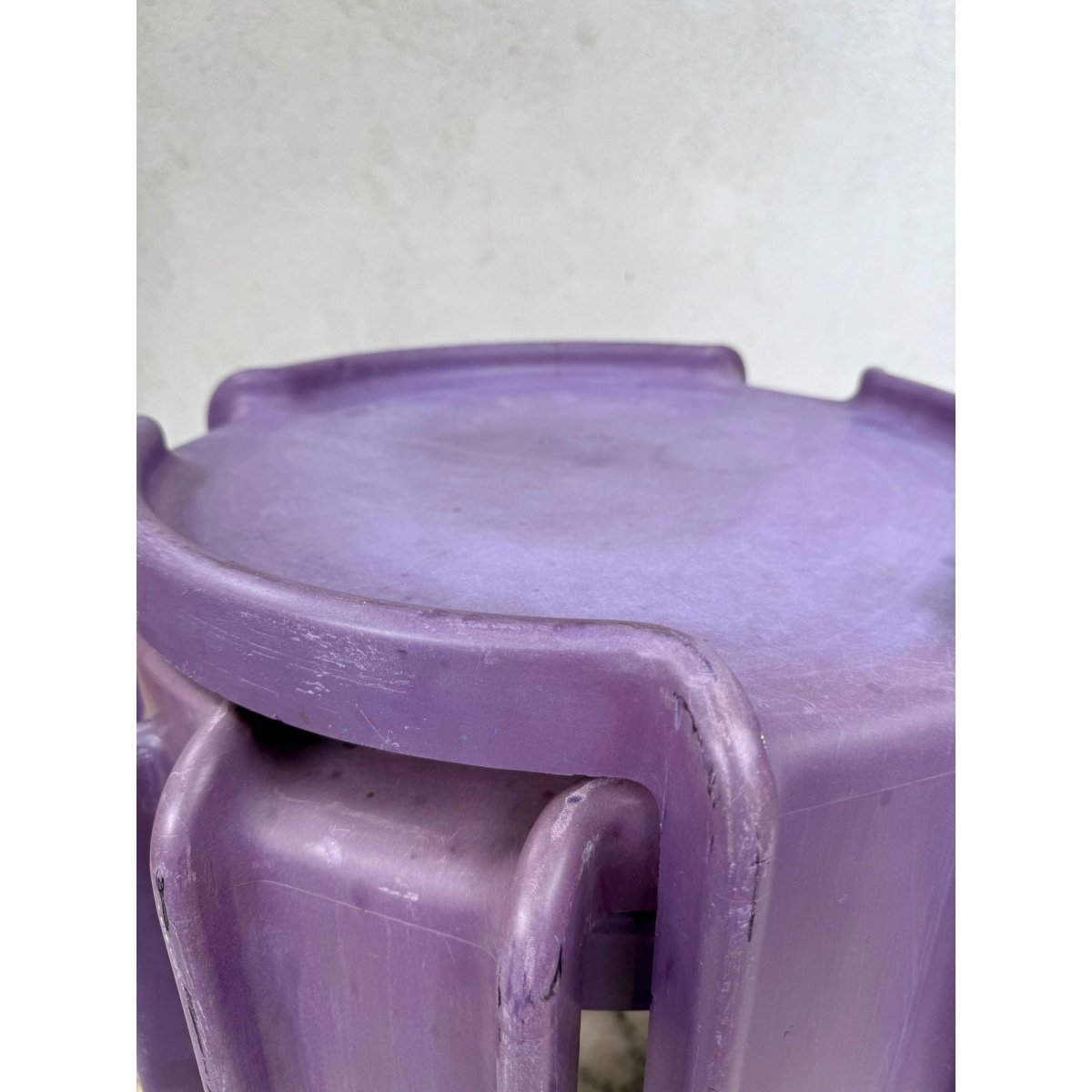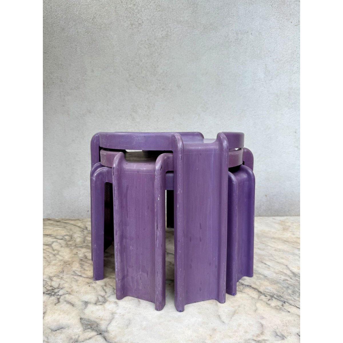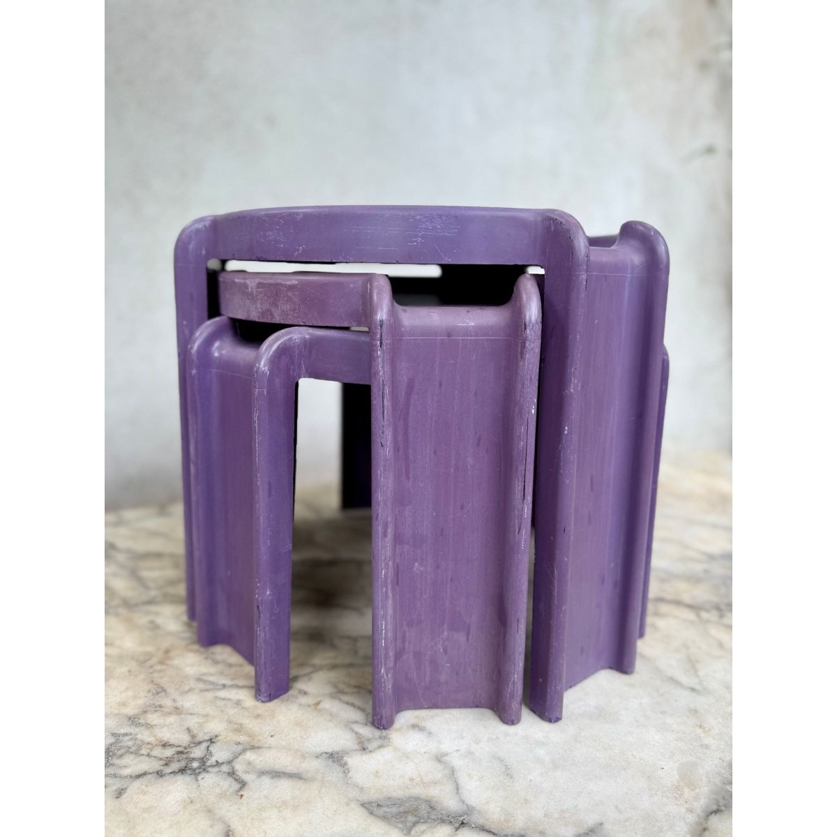 This striking post-modern set of three nesting side tables produced by Kartell is made from ABS purple plastic and was designed by Giotto Stoppino, circa 1970. It is a real space age item and is an icon of mid-century design.