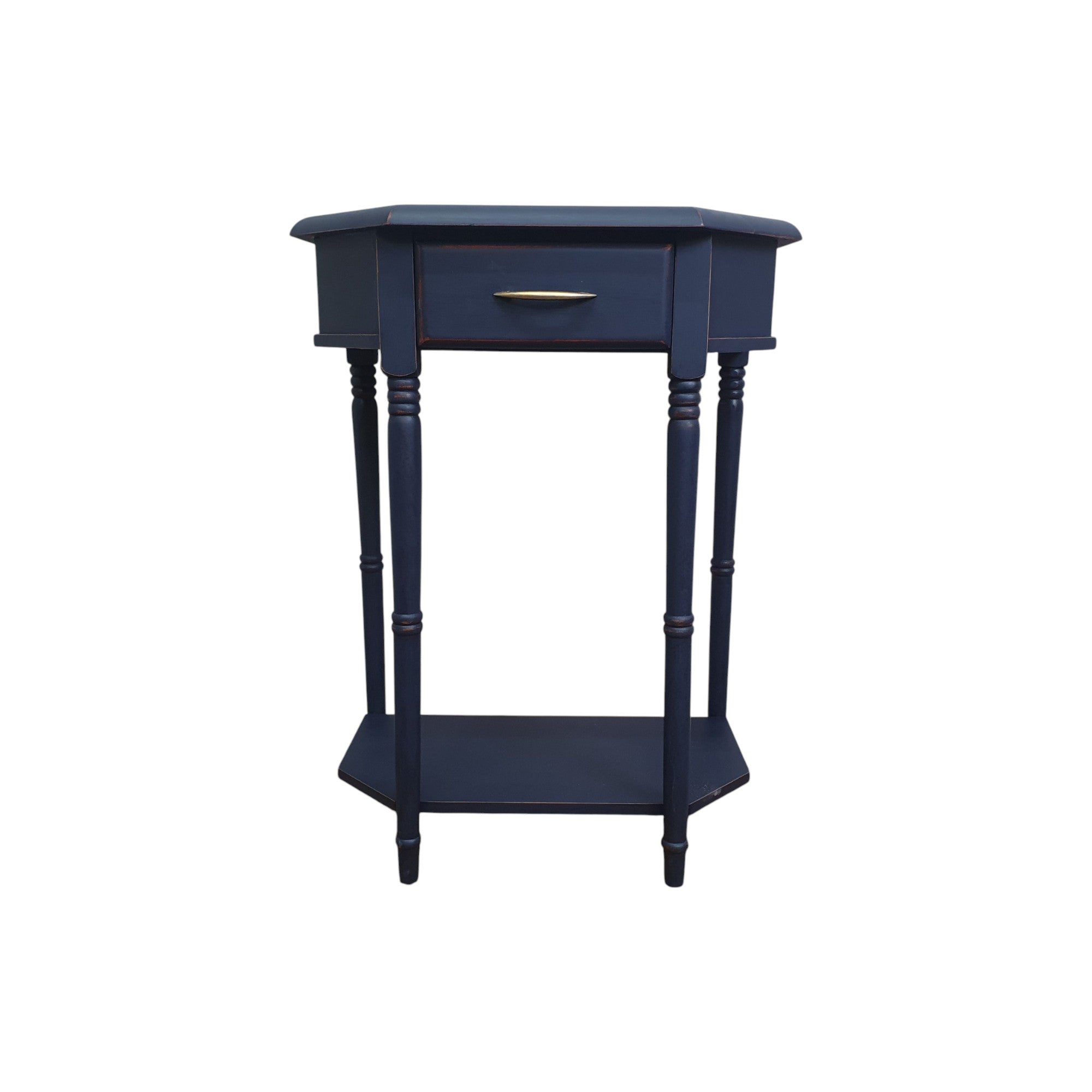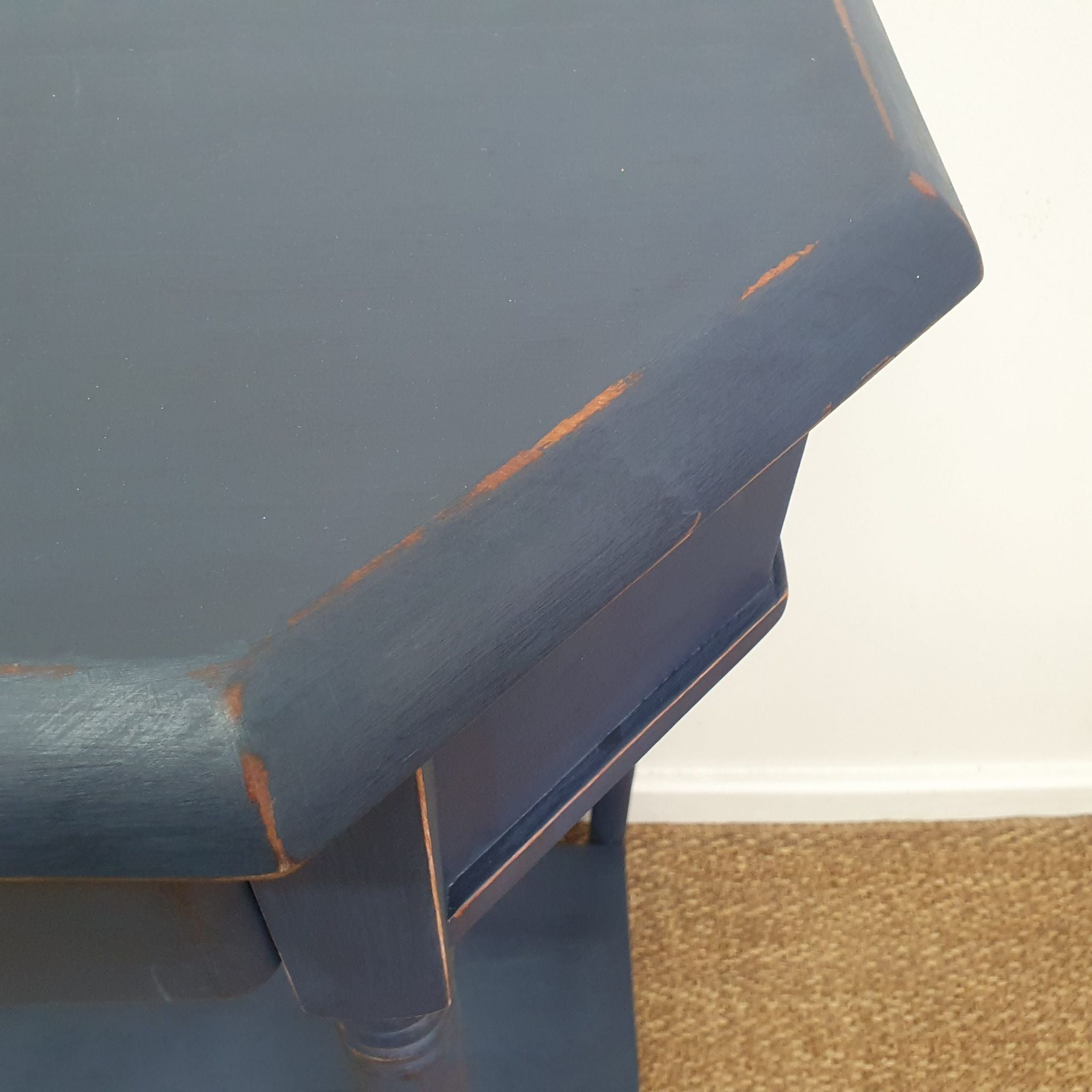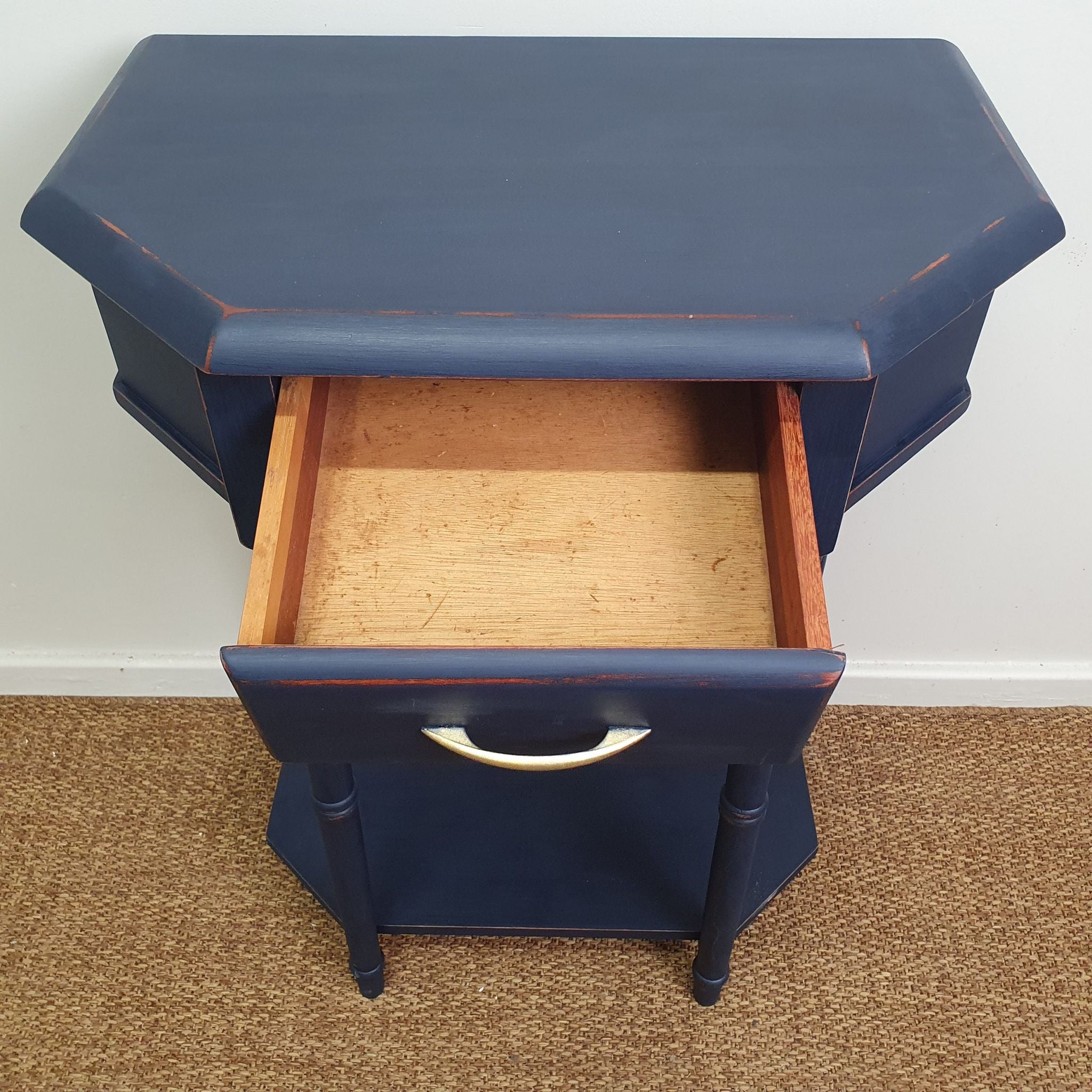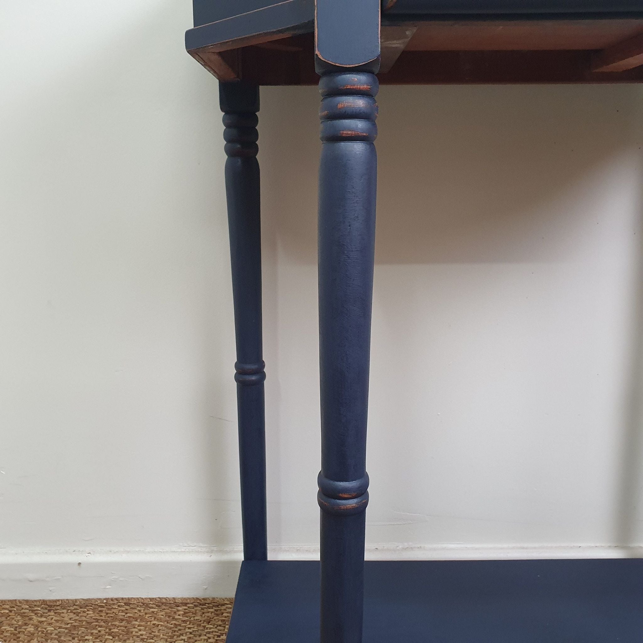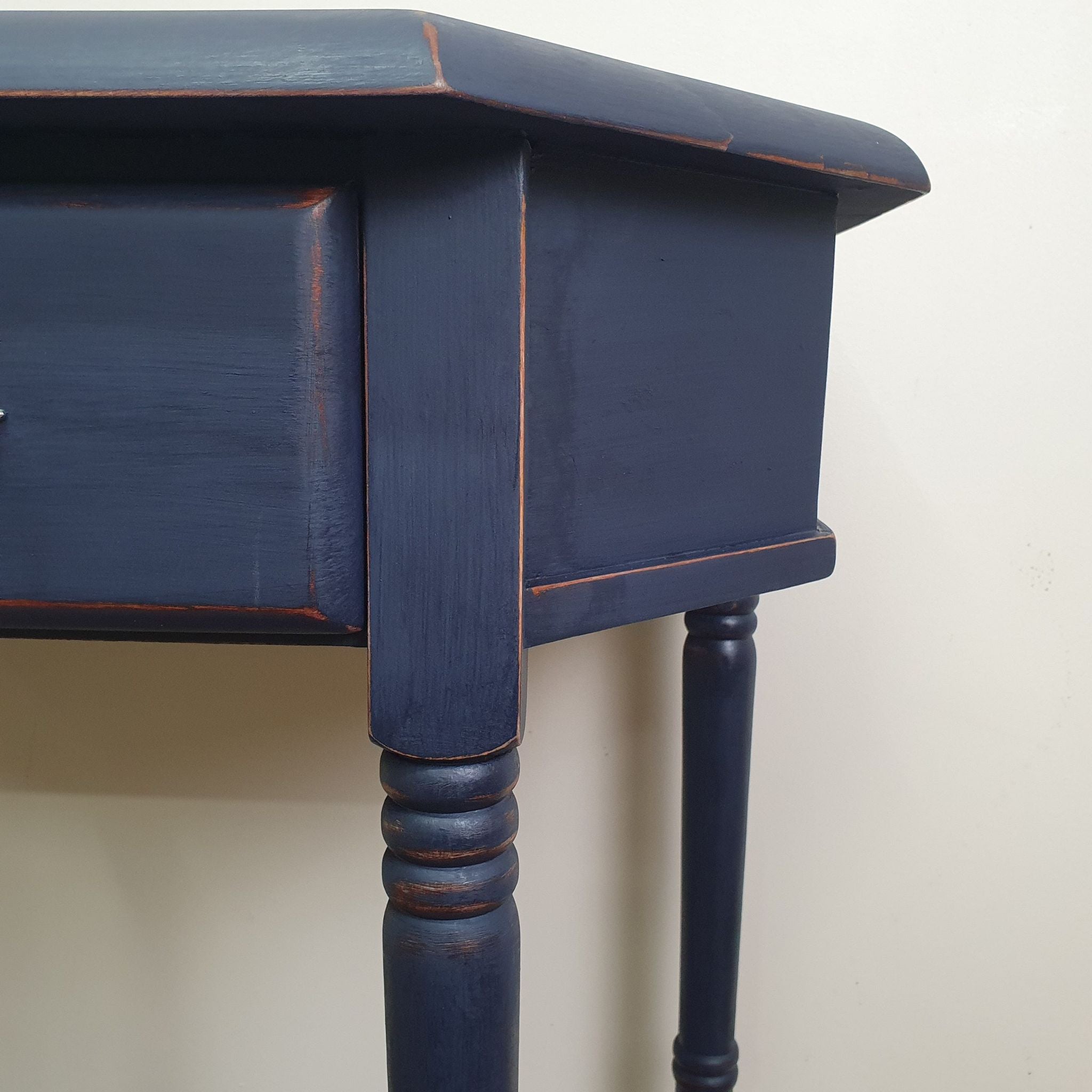 This hand-painted hall table features an Oxford Navy finish in Annie Sloan chalk paint, completed with a Matt Lacquer for a smooth, elegant look. It includes a single drawer and a second-tier base, offering practical storage and display space. A stylish statement piece for hallways, entryways, or living areas.