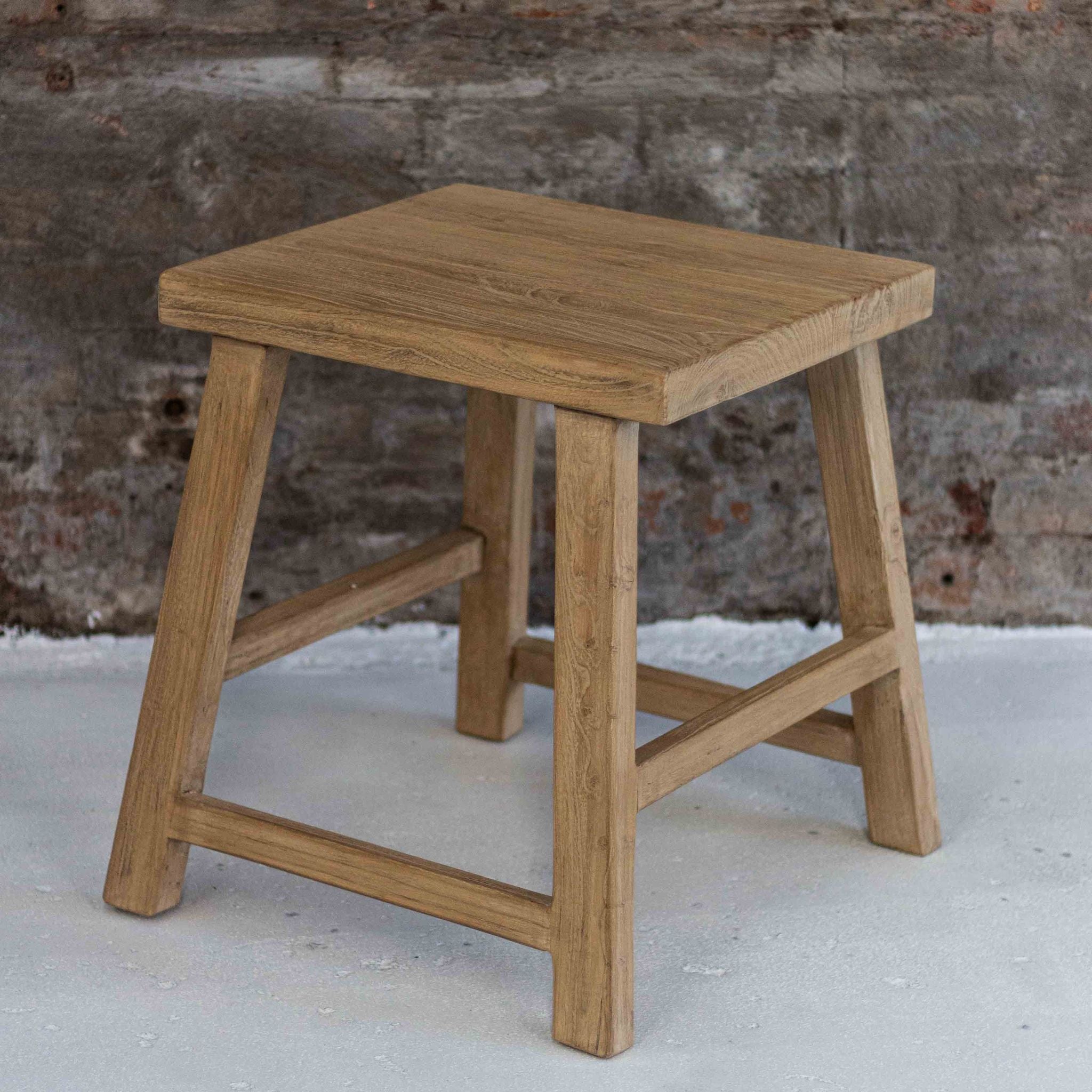 This table is compact and versatile, perfect as a side table beside your sofa, a bedside piece in a relaxed bedroom or an occasional table layered into a reading nook. Its honest construction and raw elegance allow it to work seamlessly across country, coastal and modern spaces. The cross-braced legs offer added strength and structure without distracting from its simple silhouette.