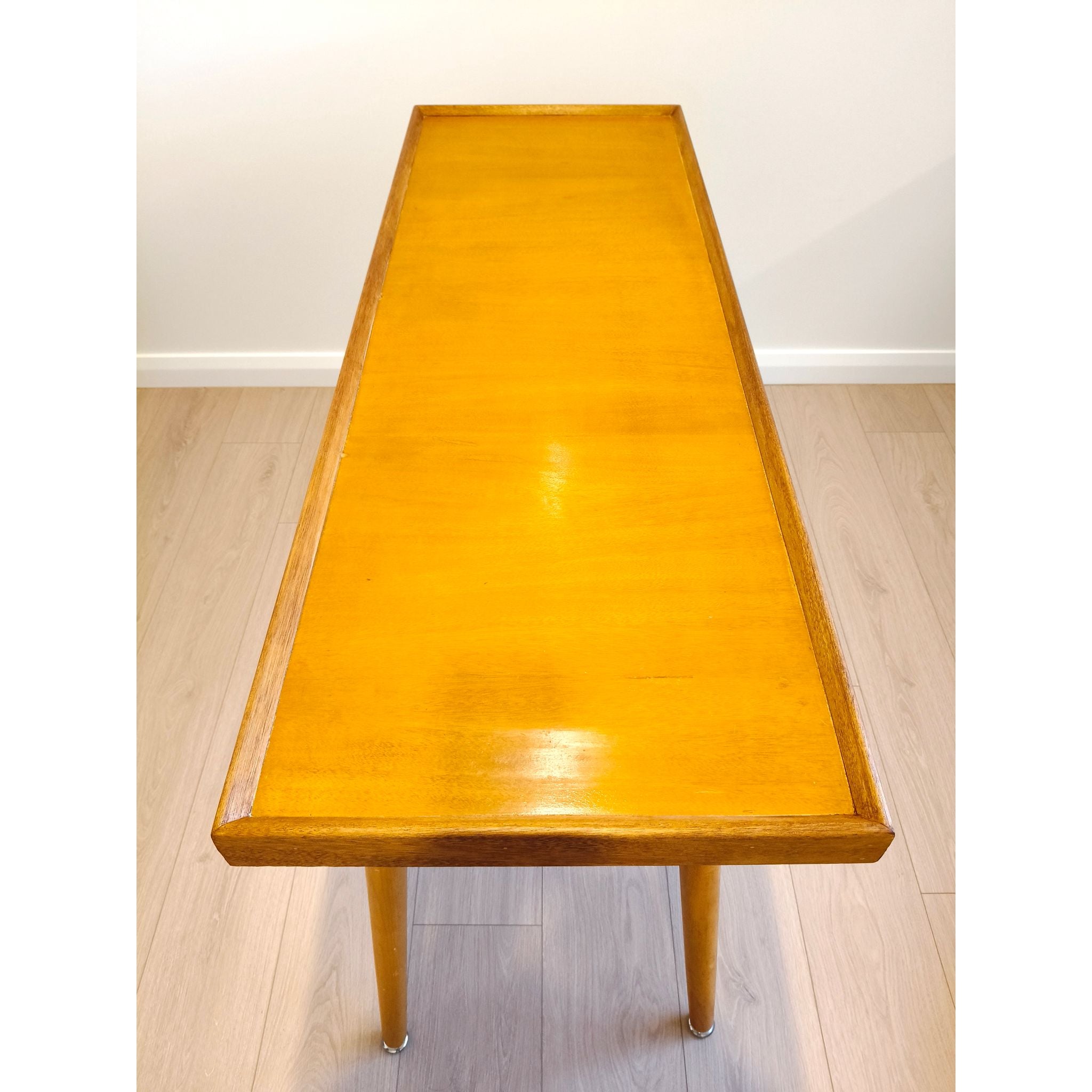 Beautifully restored MCM retro console table. Can be converted to a coffee table if required with coffee table height legs in last picture. Legs can be purchased for an additional $50.