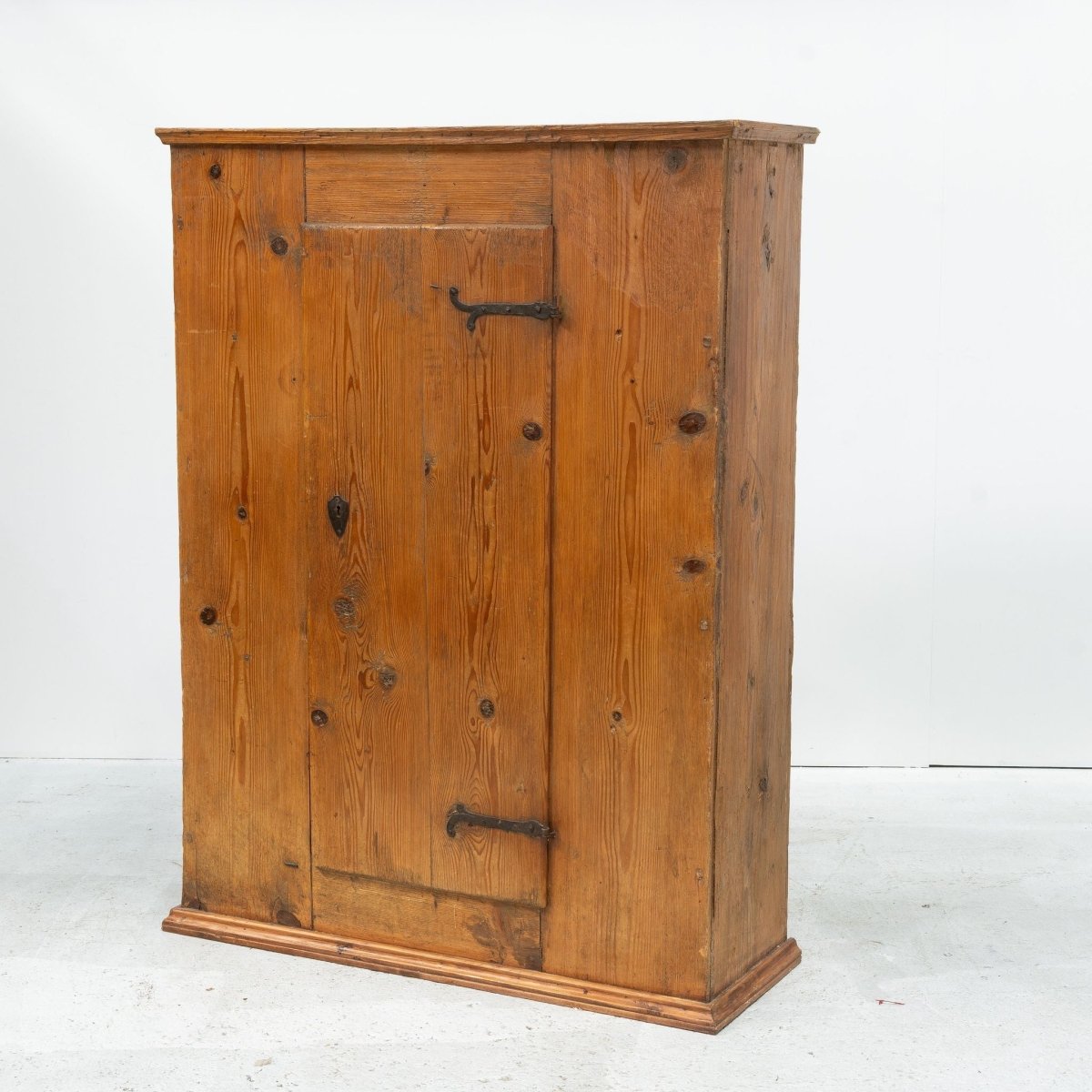 Rustic travail populaire Alpine cabinet made from solid wood in the early 19th century. This organic travail populaire cabinet provides sufficient space to store and display various items. Would be ideal as a wardrobe in a bedroom or hallway, providing a touch of authenticity and a warm atmosphere. This piece is in good original condition and reflects a warm and cosy feeling, ideal to give your interior extra character.