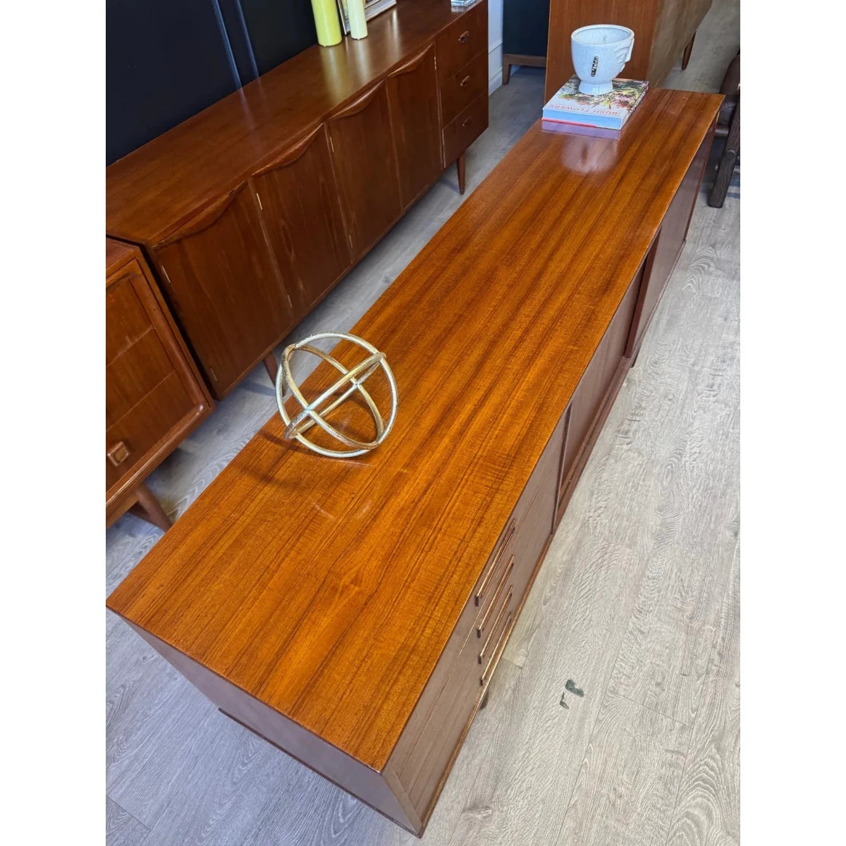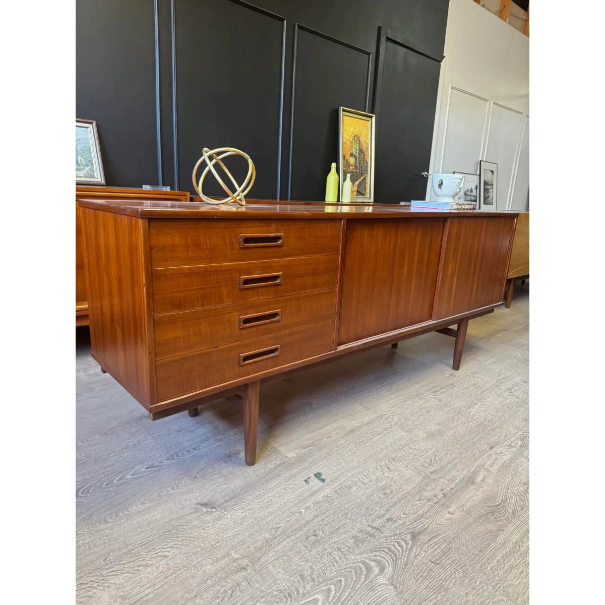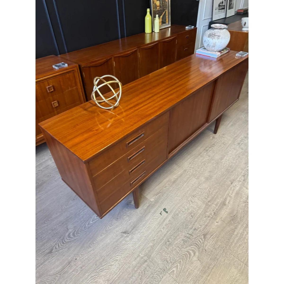 This refined 'Clausen & Son' Danish mid century sideboard / buffet is defined by clean lines, warm timber tones, and beautifully balanced proportions. Crafted with the understated precision of mid-century Danish design, it offers generous storage without visual weight—an elegant, timeless piece that sits effortlessly in both modern and classic interiors. This piece could also make a stunning tv / entertainment unit.