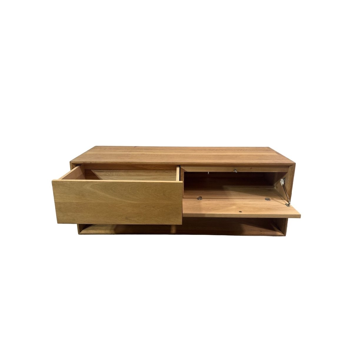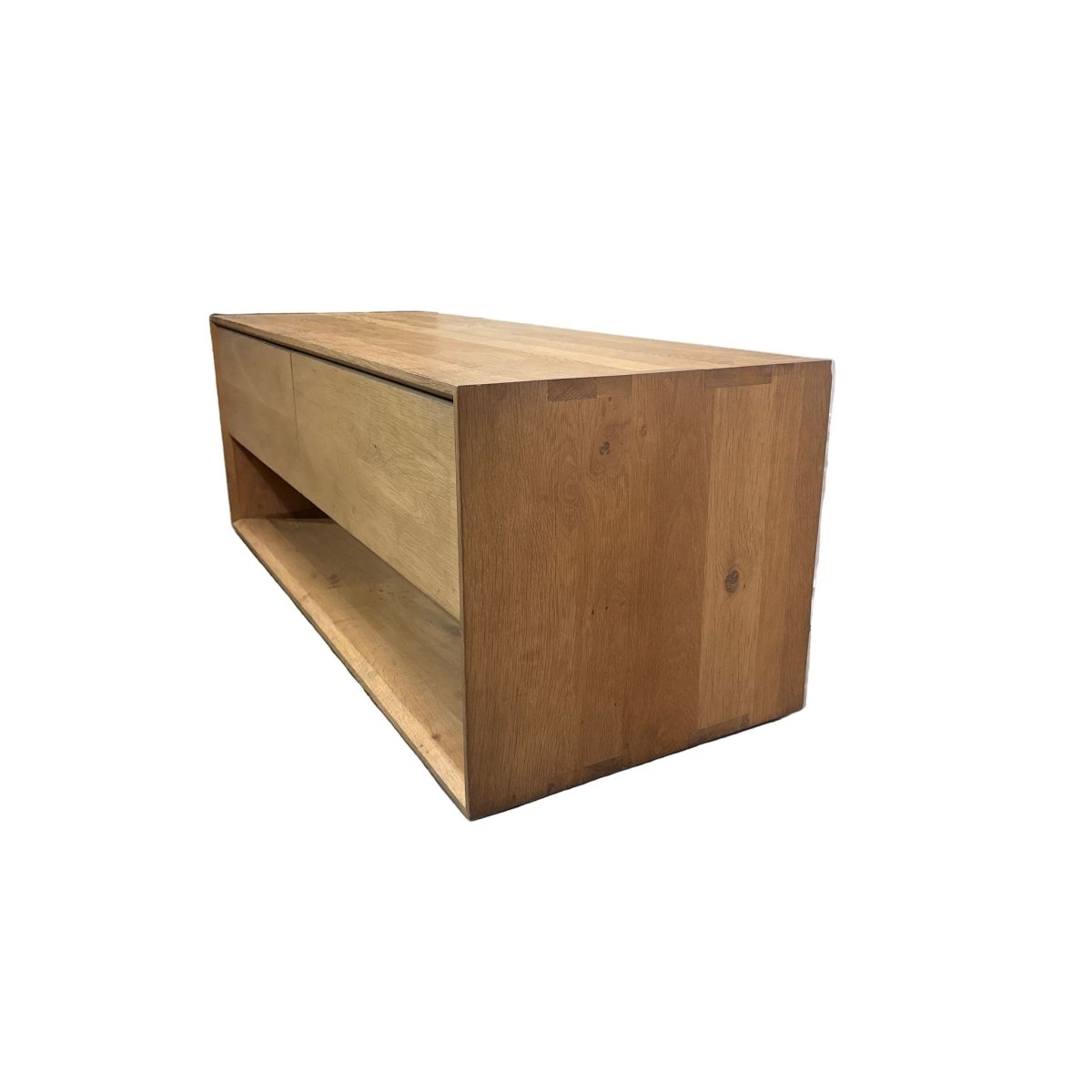 The Ethnicraft Nordic Entertainment Unit brings Scandinavian design principles to your living space with its clean lines and functional elegance. Crafted from solid oak, this piece combines timeless aesthetics with practical storage solutions, featuring multiple compartments ideal for organizing media equipment, books, and decorative items. The minimalist silhouette and natural wood finish complement contemporary and traditional interiors alike, while the sturdy construction ensures lasting durability. A versatile addition that balances form and function for discerning homeowners seeking quality furniture with understated sophistication.