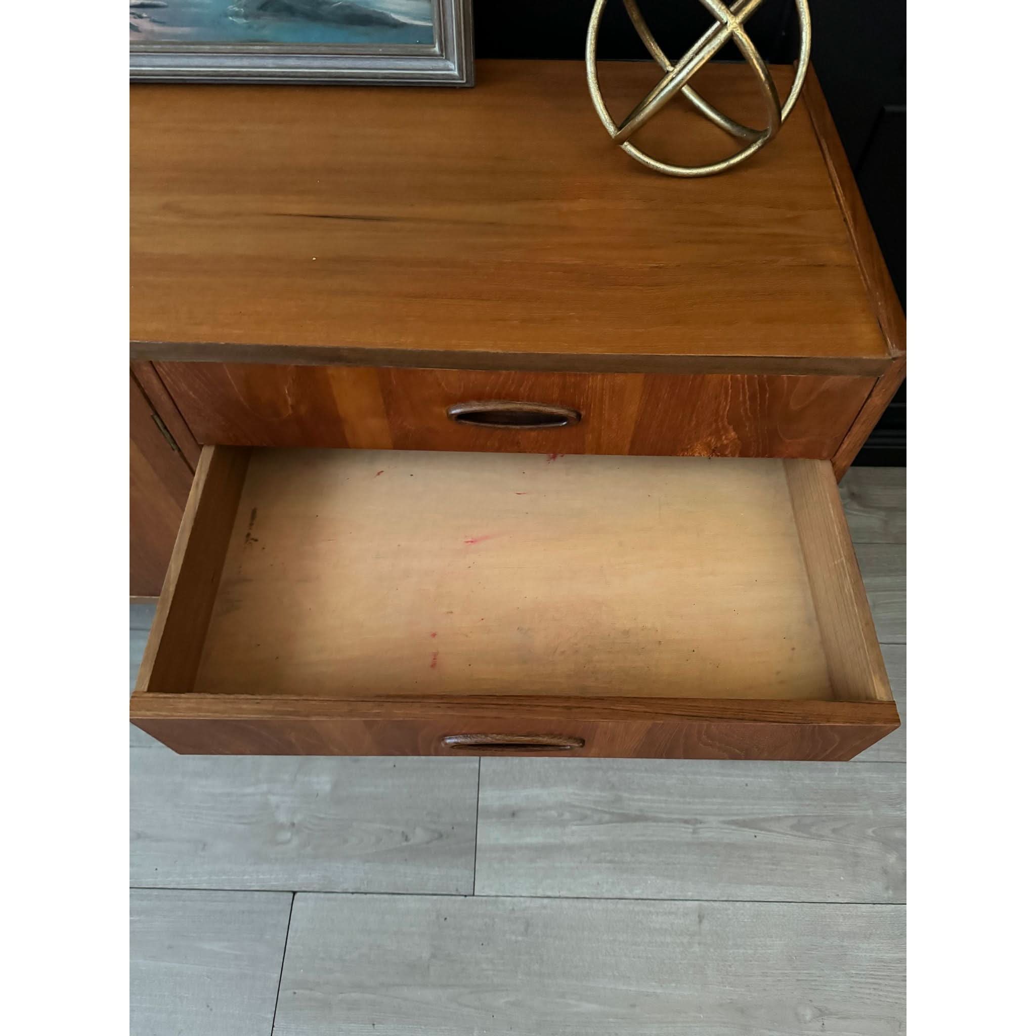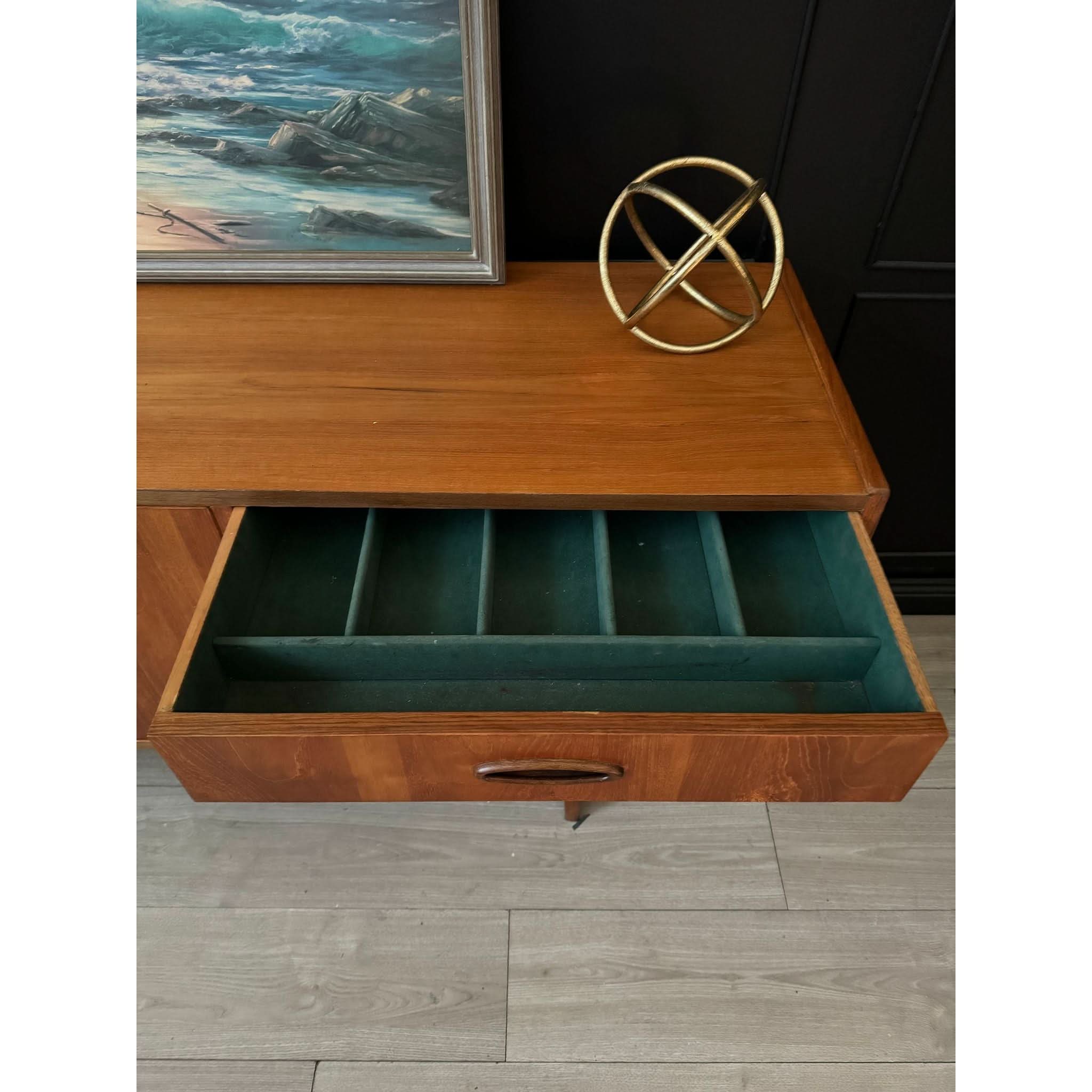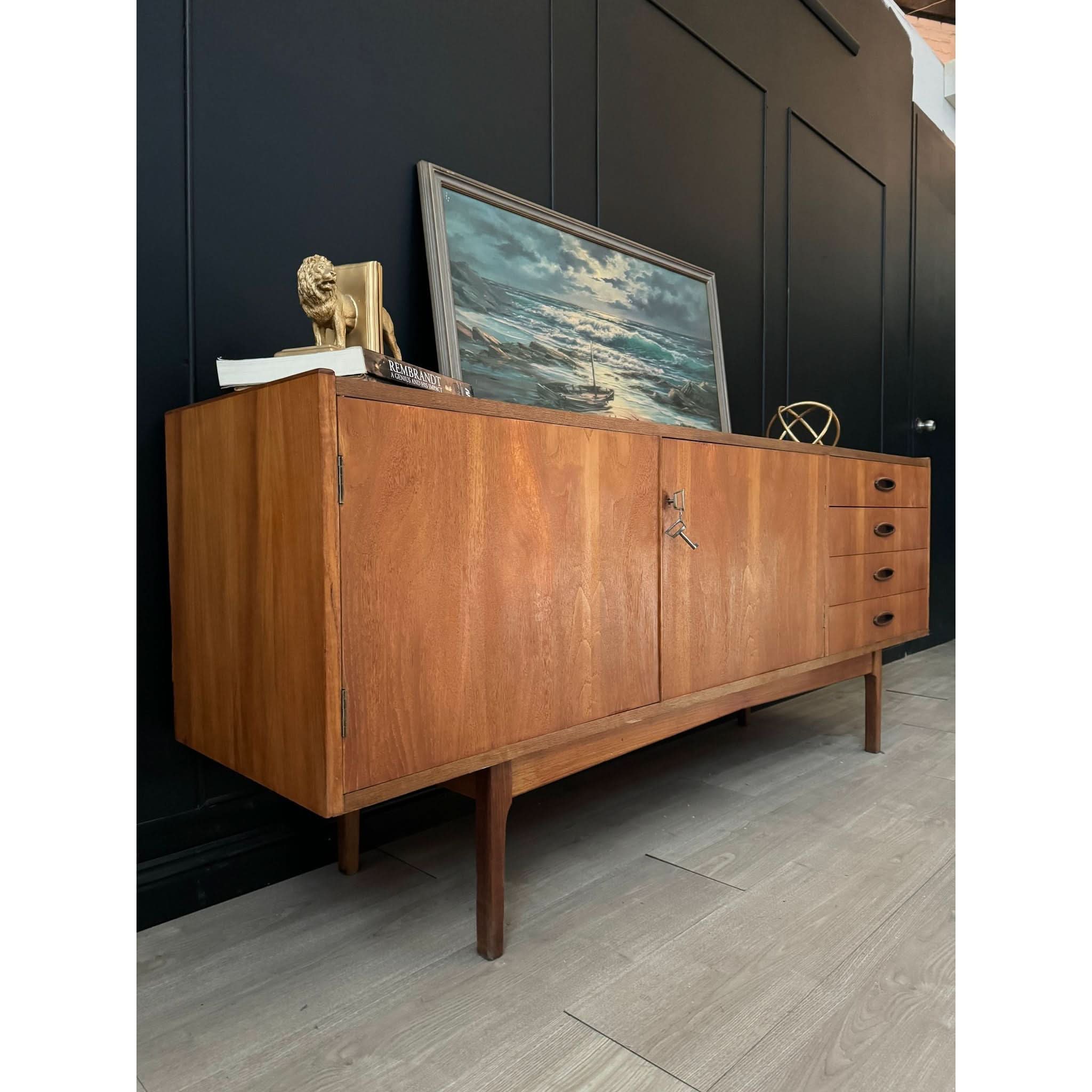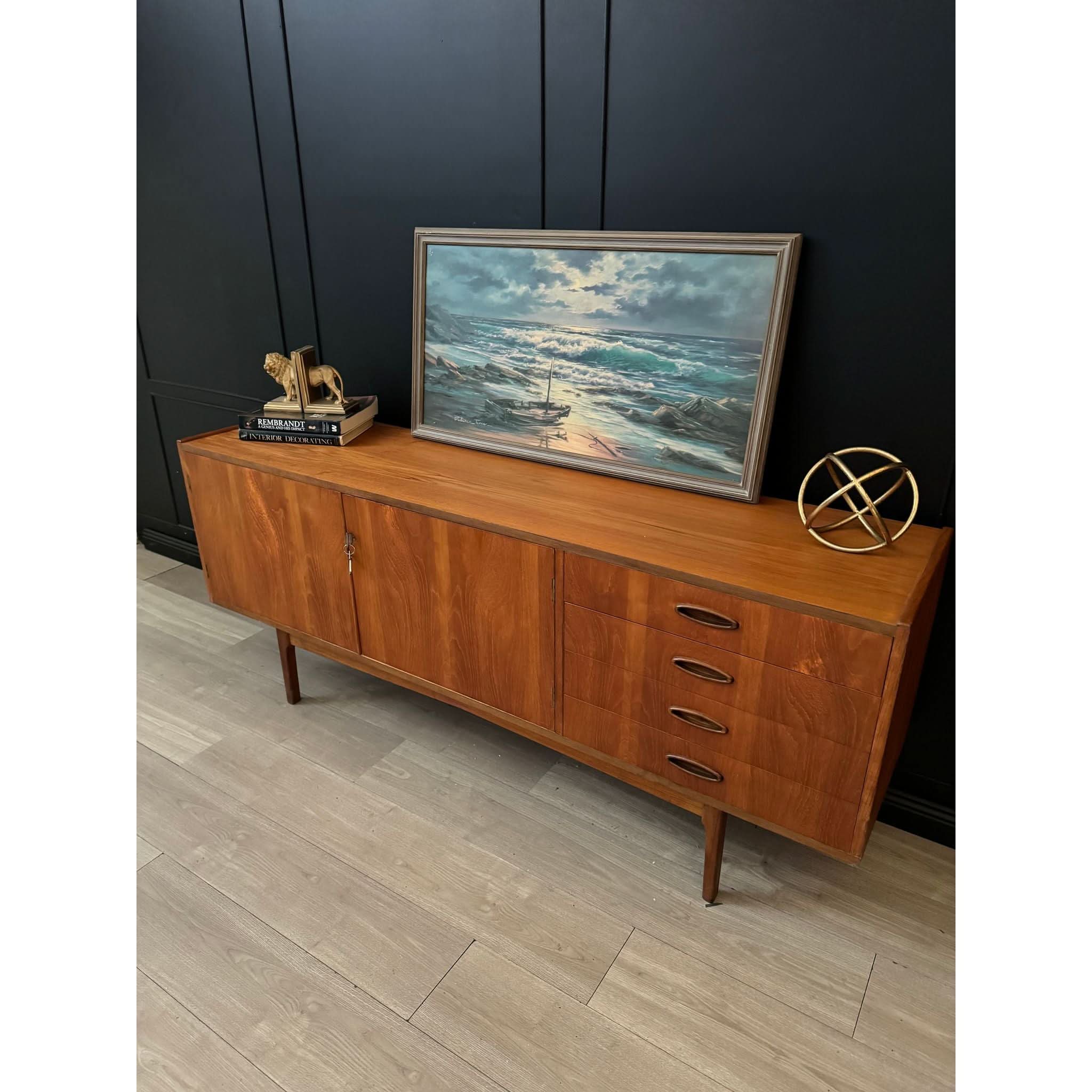 Established in 1946 by Fred Lowen and Ernest Rodek, Fler quickly became synonymous with quality craftsmanship and innovative design, pioneering the mid-century modern movement in Australia. The Fler 64 is an embodiment of the brand's ethos, showcasing clean lines, exquisite detailing, and unparalleled functionality. This long style piece boasts two doors and four drawers, providing ample storage space for your essentials, all complemented by the original keys for added authenticity.