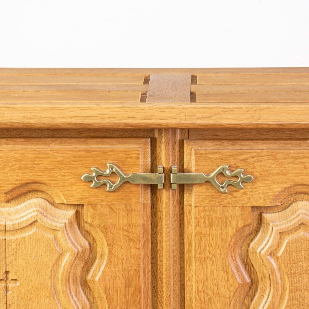 The rectangular top above four cabinet doors opening to reveal shelves lined with green baize