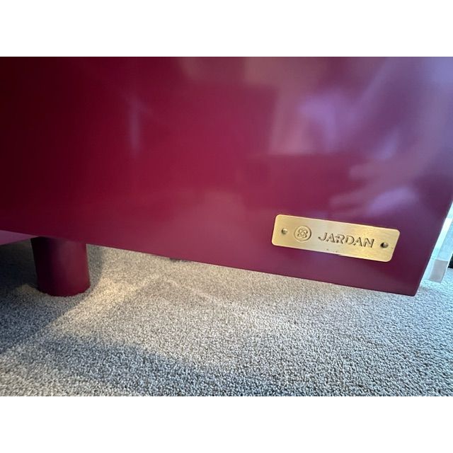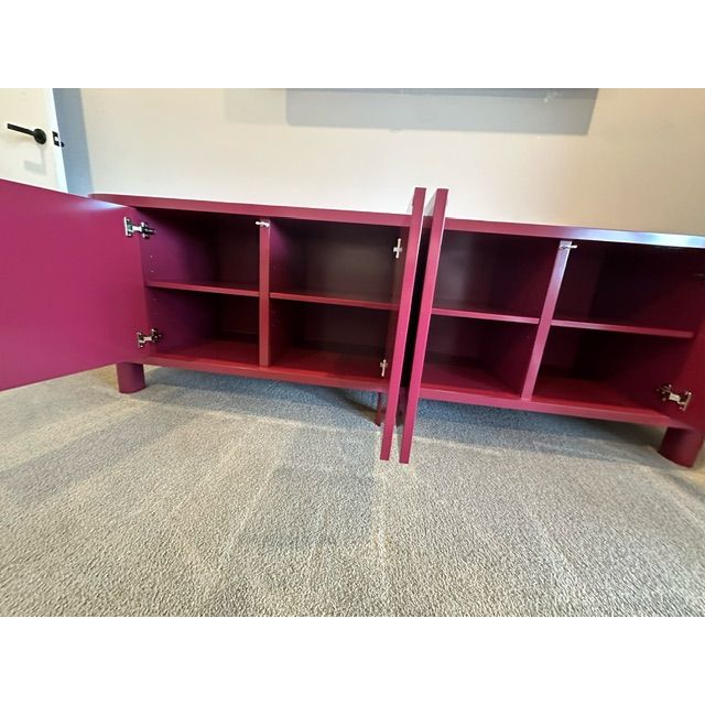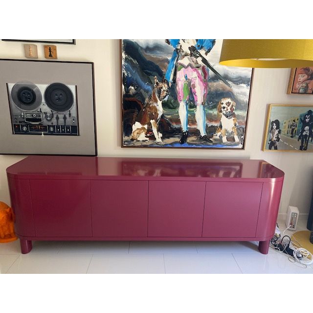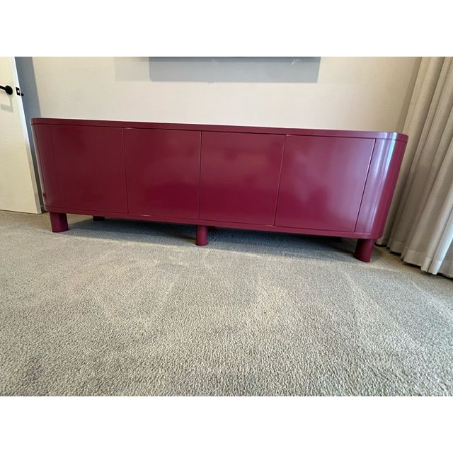 Preston Defined by refined lines and sweeping, elegant curves, the Preston boasts a bold yet elegant form. Made from sustainably managed hardwood and veneer, Preston has a series of complex interlocking joins that allow the shelves to float between the outer framework. Grape coloured painted finish.